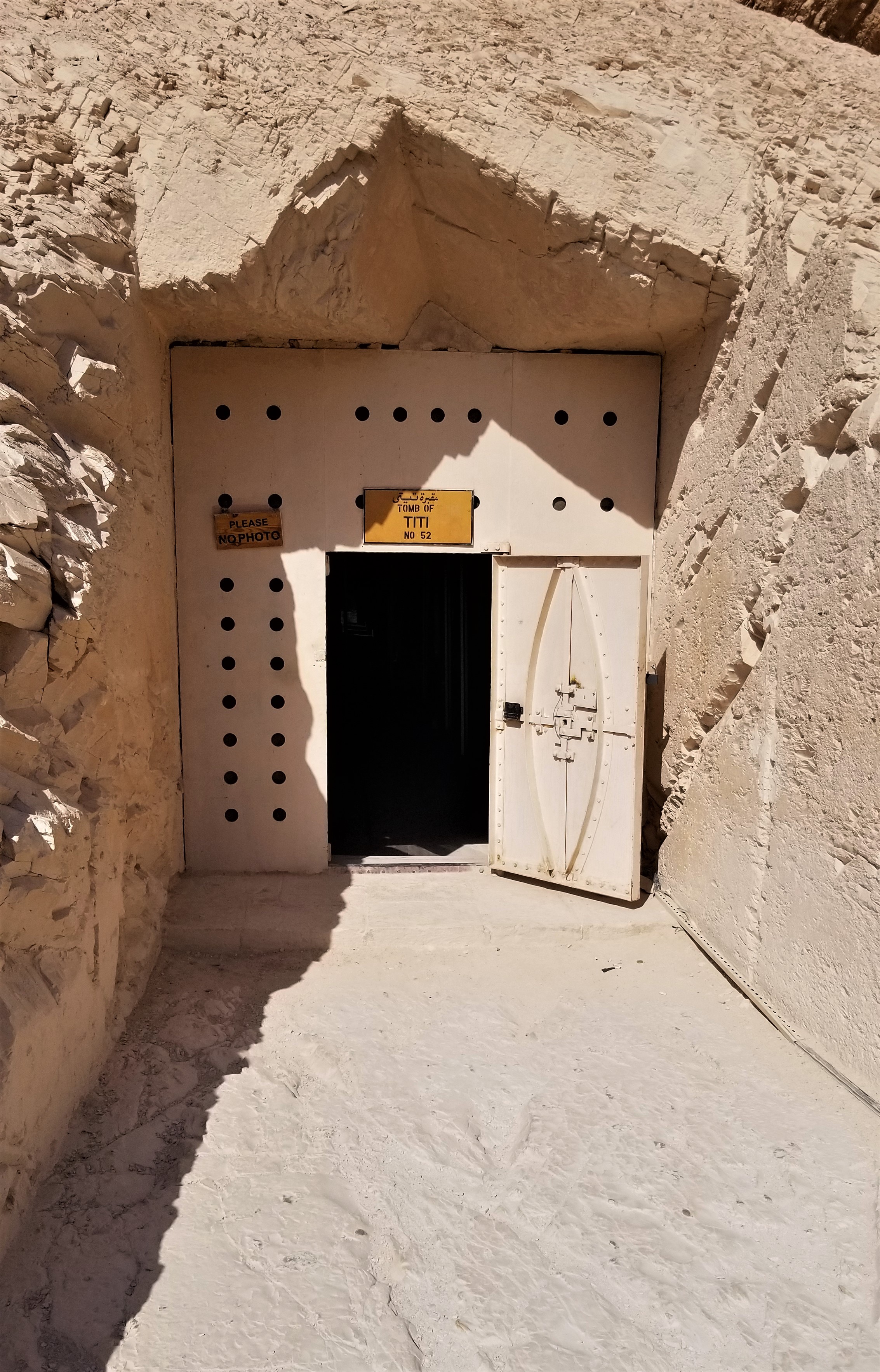 Enough of all that, on with seeing the tombs. Our first stop was Valley of the Queens, 8:00am and the temp is around 92F, gonna be a hot one today! The early Egyptians called this area, “wadi” meaning valley, or Ta-Set-Neferu, “place of beauty”.  QV 52 is our first tomb, Queen TyTi (TiTi). She was queen in the 20th Dynasty but it is unclear if she was married to Ramesses III or his daughter, or as some claim, the daughter-wife of Ramesses III. Whoever she was, she was important enough to be buried in the Valley of Queens.