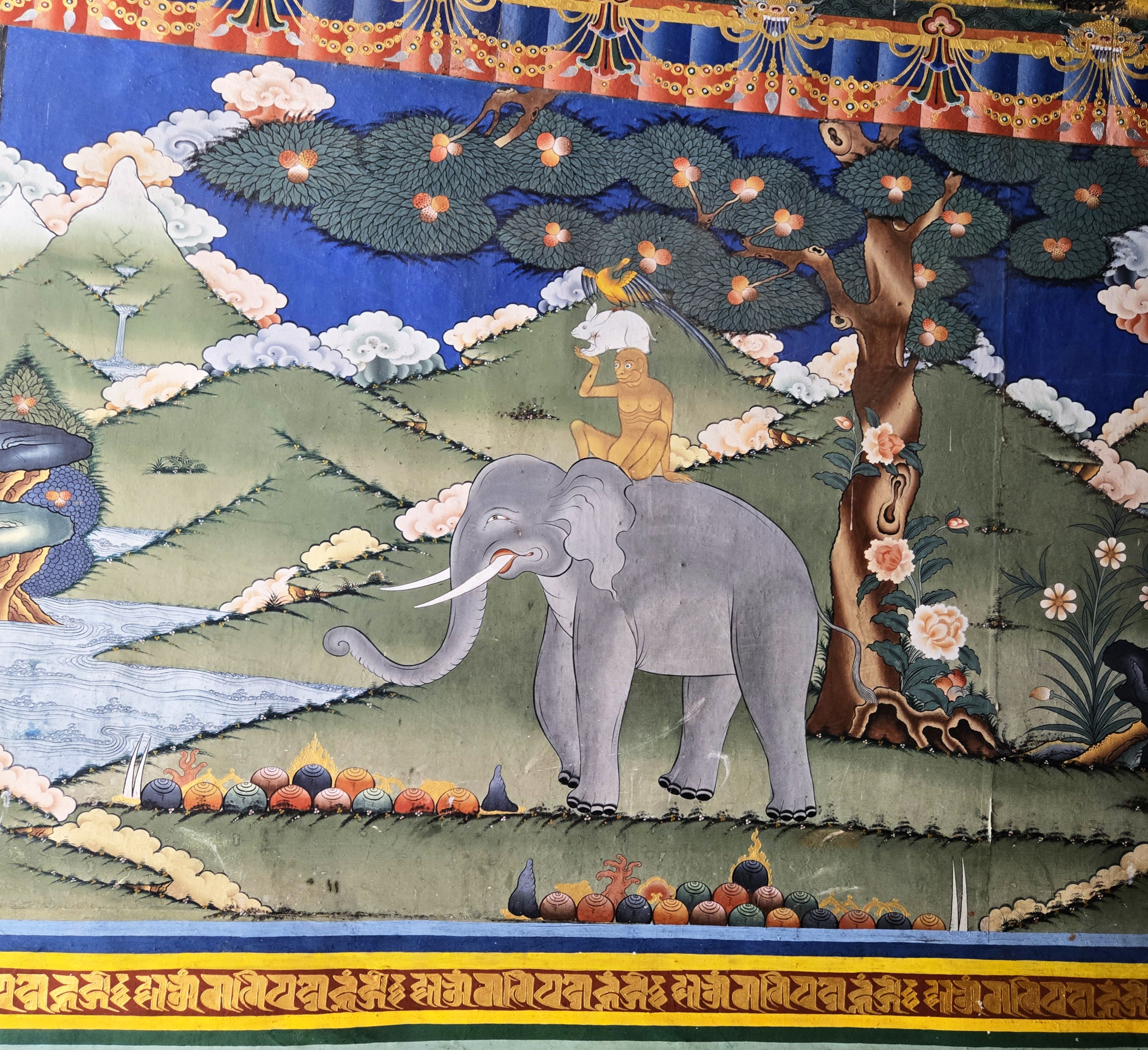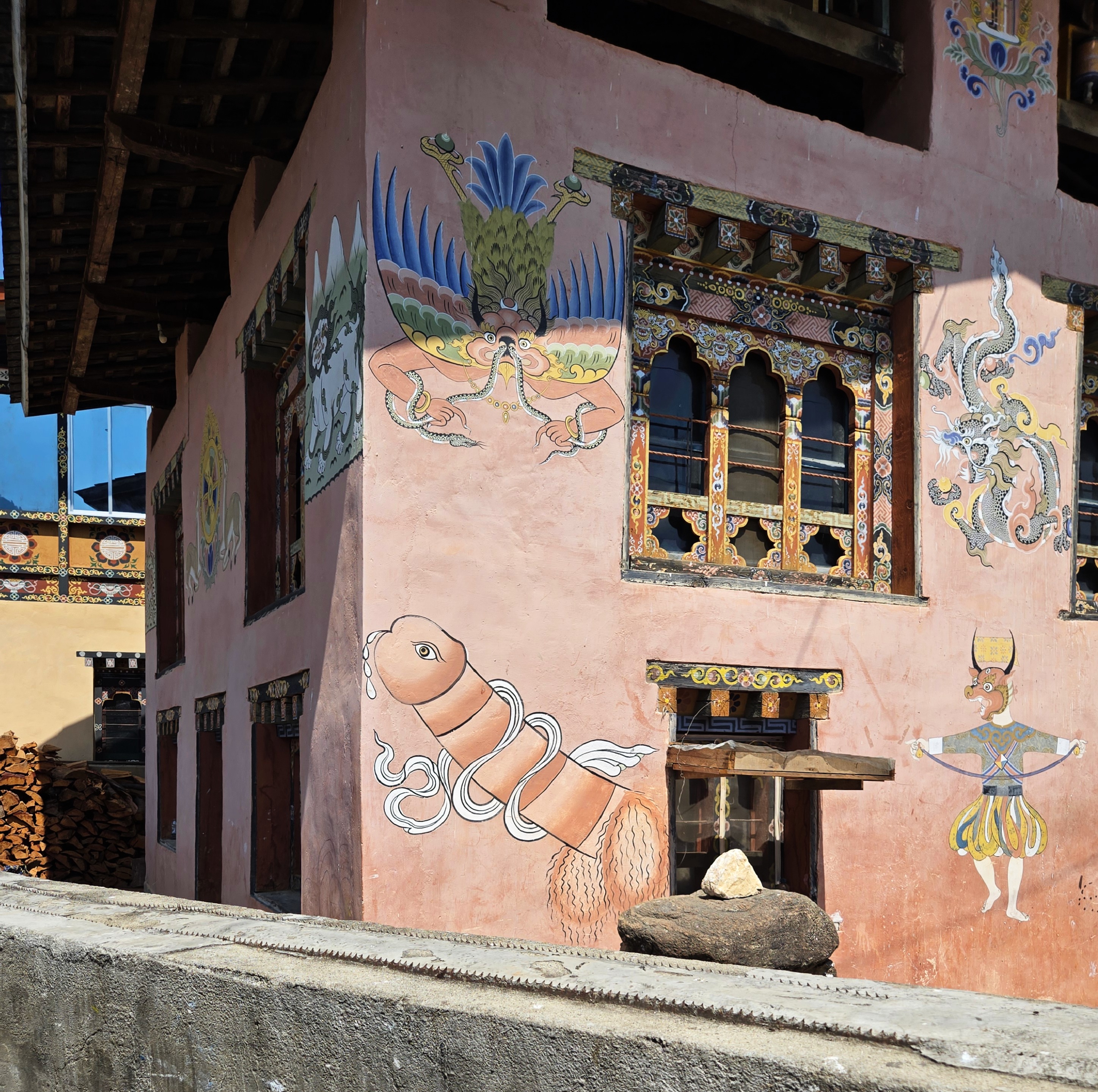 We arrived at an amazing time, just when the local Buddhist monks were finishing a week long chant. For 7 days a set of 14 or so monks had been chanting to Buddha in this small temple. Let’s stop here for a minute to catch up on temples. The temple we are in is about 50’ by 50’ square and was built in 1499AD. Legend has it the Dukpa Kunley in preparing and blessing this site, subdued the demon of Dochu La with his “magic thunderbolt of wisdom” and trapped it in a rock in the chorten. He was known as the “Divine Madman” for his unorthodox teaching methods as mentioned earlier. He also advocated the use of phallus symbols, such as paintings on walls and as flying carved wooden phallus’s on house tops at four corners of the eaves. Indeed, pretty much anywhere you look in this village, there are “penis” everywhere. Kinda like an open air locker room from junior high school.