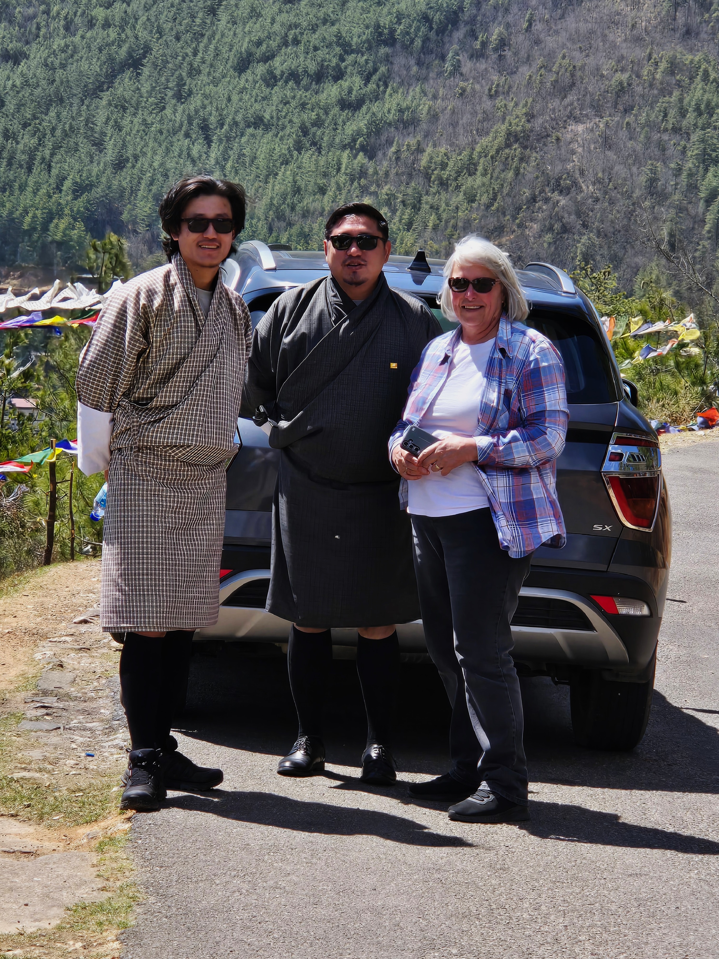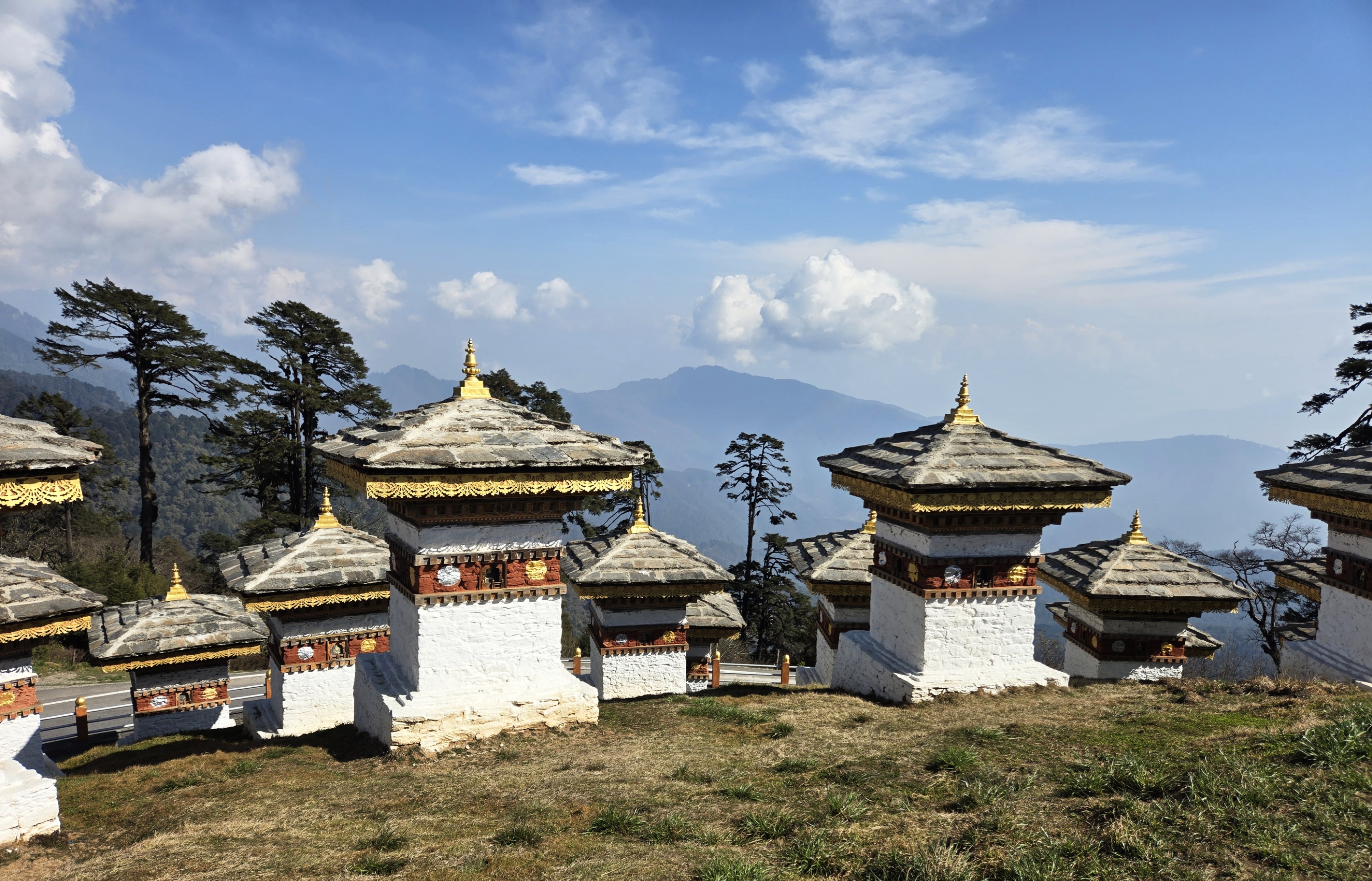 Stuffed ourselves and headed out to meet our guides to start another day of seeing in this beautiful country. Today we head to the mountains and the Dochula Pass. Located at 3100 meters, 10, 170’ (felt like home!) this pass has considerable historical significance to the Bhutanese people.