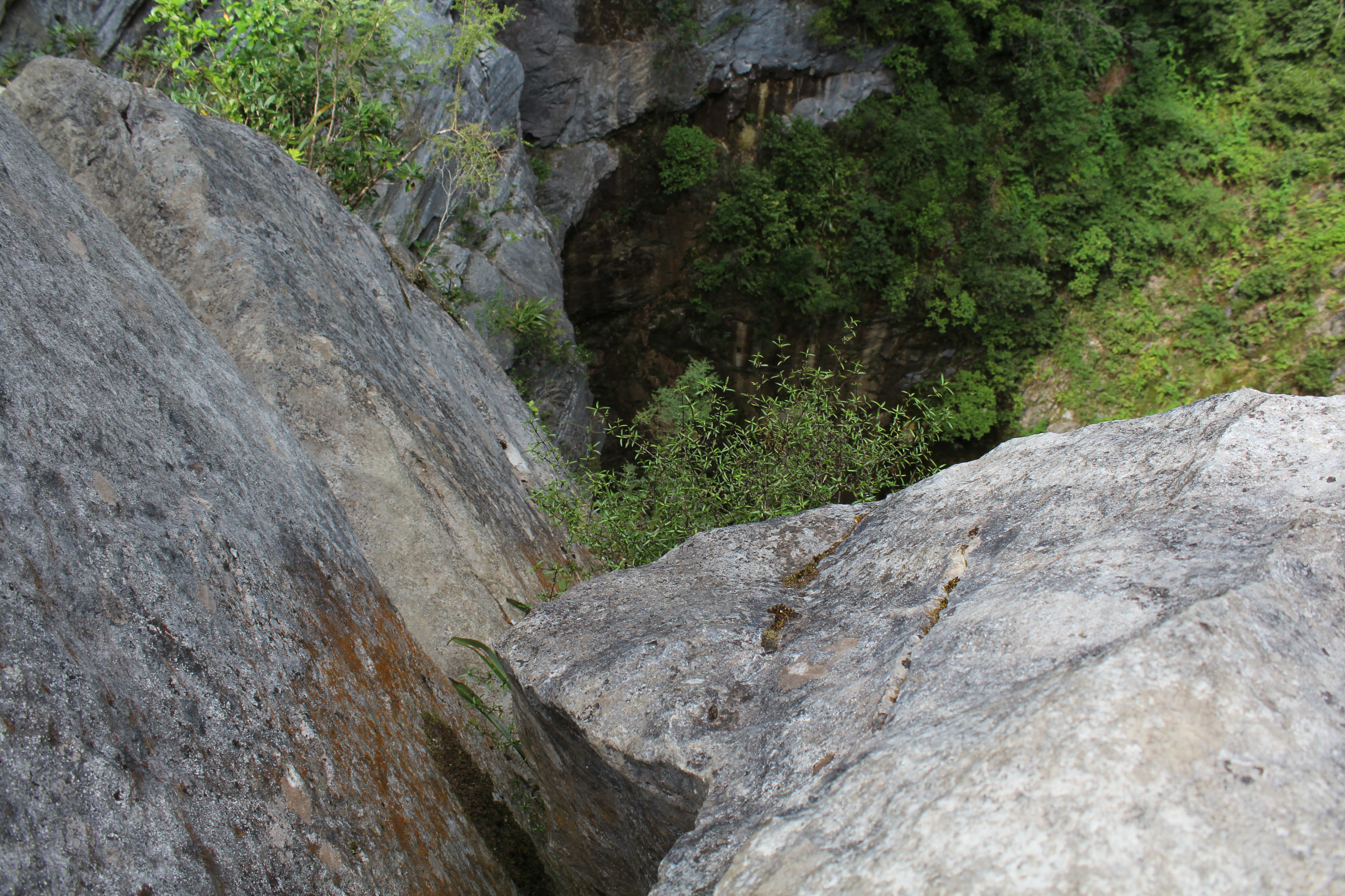 Harwood’s Hole is, well it’s a hole. But a big damn hole! The whole hole is about 1171’ deep and 165’ around. Best part, no fences, gates, railings, or someone stopping you from finding out how fast search and rescue can get to you. But, as my Misses said, “we’re not hiking all this way and you to not get a picture.” Over the rocks, through crevices, cracks, fallen trees, mud holes that could swallow a good sized car, we arrive at what appears to be the edge.