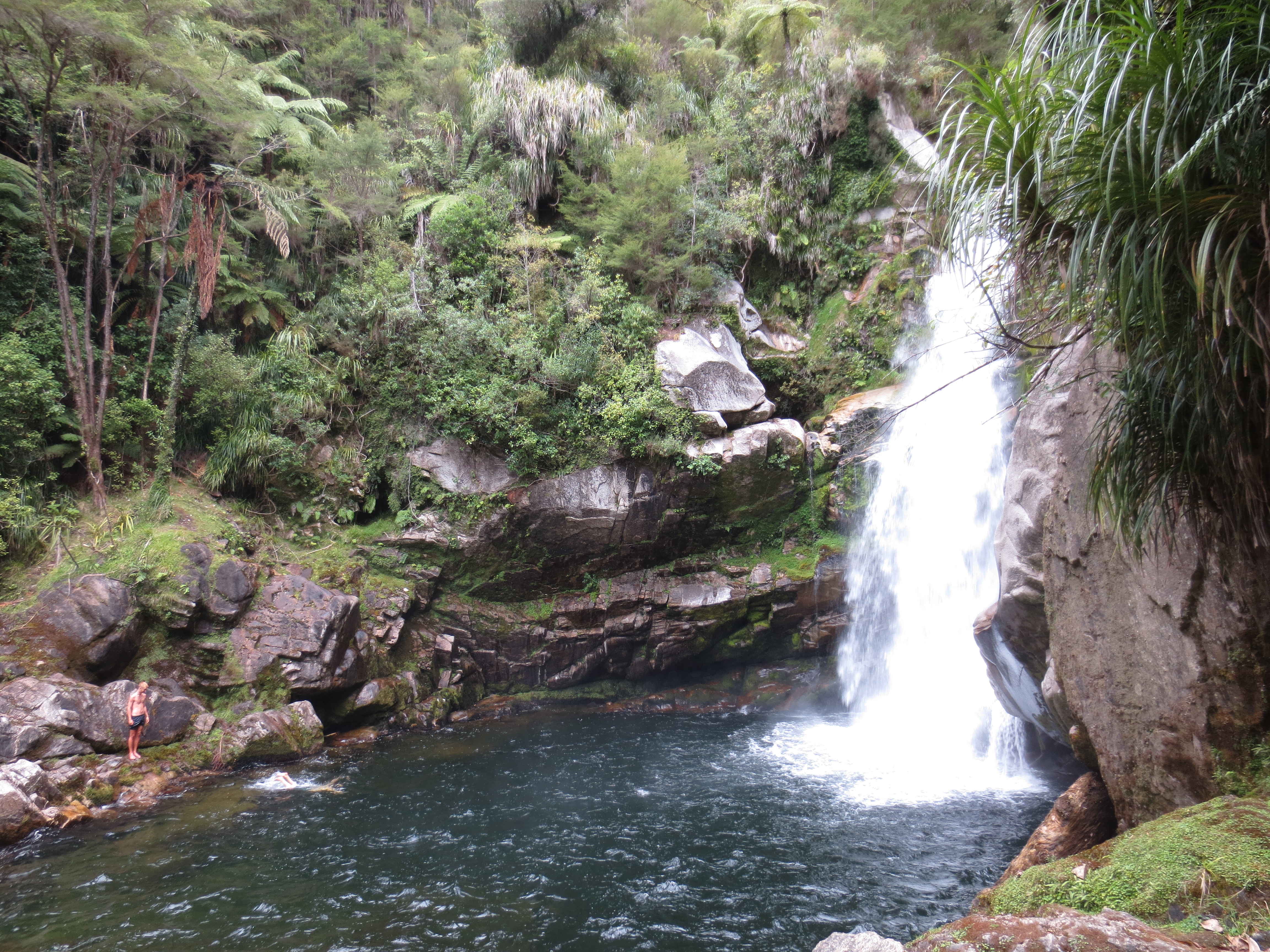 Pictures are done, now a quick 2hr drive to the Wainui waterfall and more hiking tramping. The waterfalls were where we started off to when we first left Nelson. Somewhere around 2pm in the afternoon we finally found them. Only had one turn-around and one missed-the-turn and bingo, found it. Now a short 30 minute tramp (now that does sound like Oakland, huh?) and behold, Wainui Falls. Beautiful!