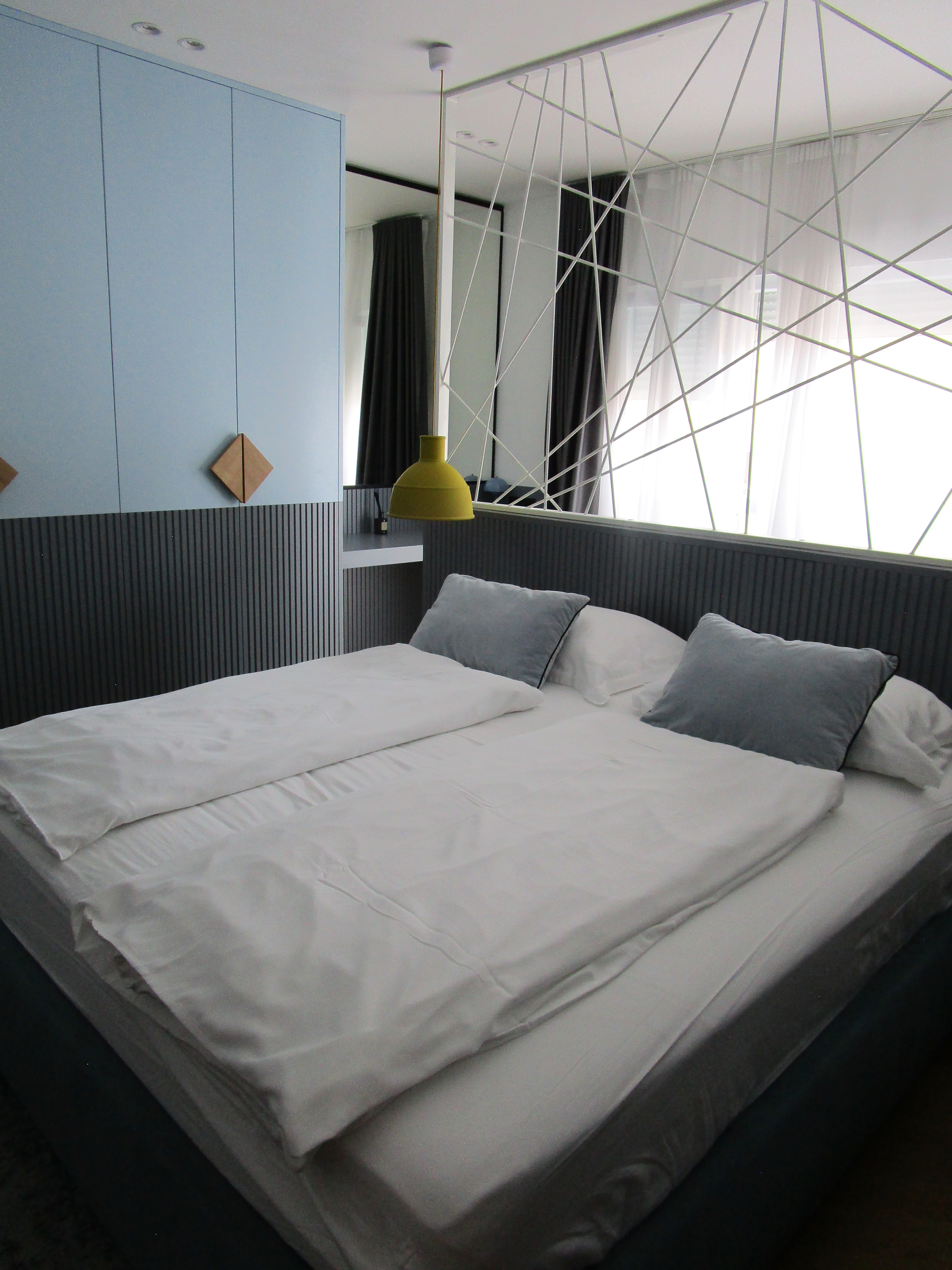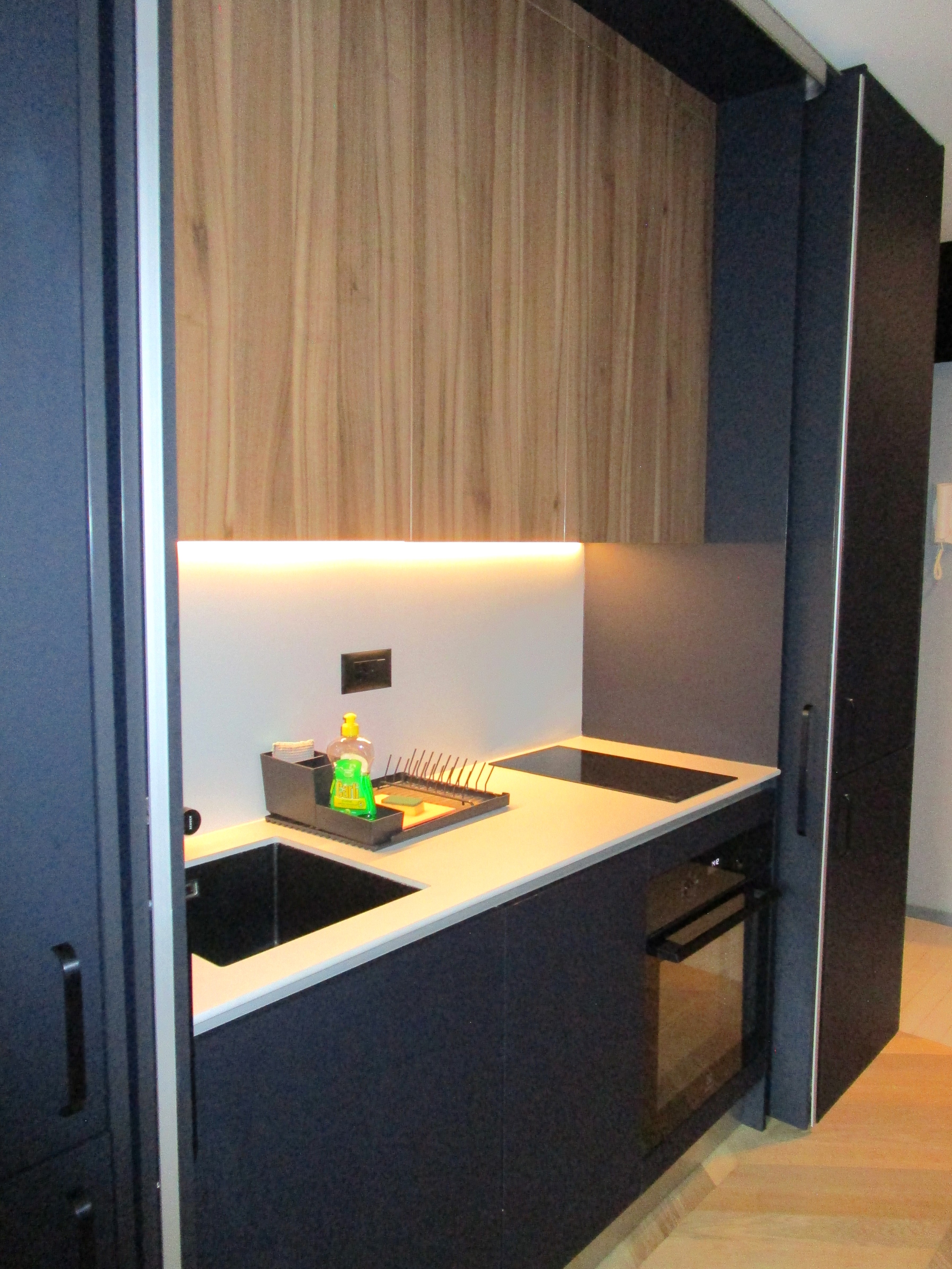 The place is really nice! Looks like it was just renovated and done really well. The real cool thing is the closet kitchen. Sunds small and funky but it is the size of a regular kitchen (in Europe), with doors that close and make it look as thought it’s part of a closet in the hallway. Pretty neat.