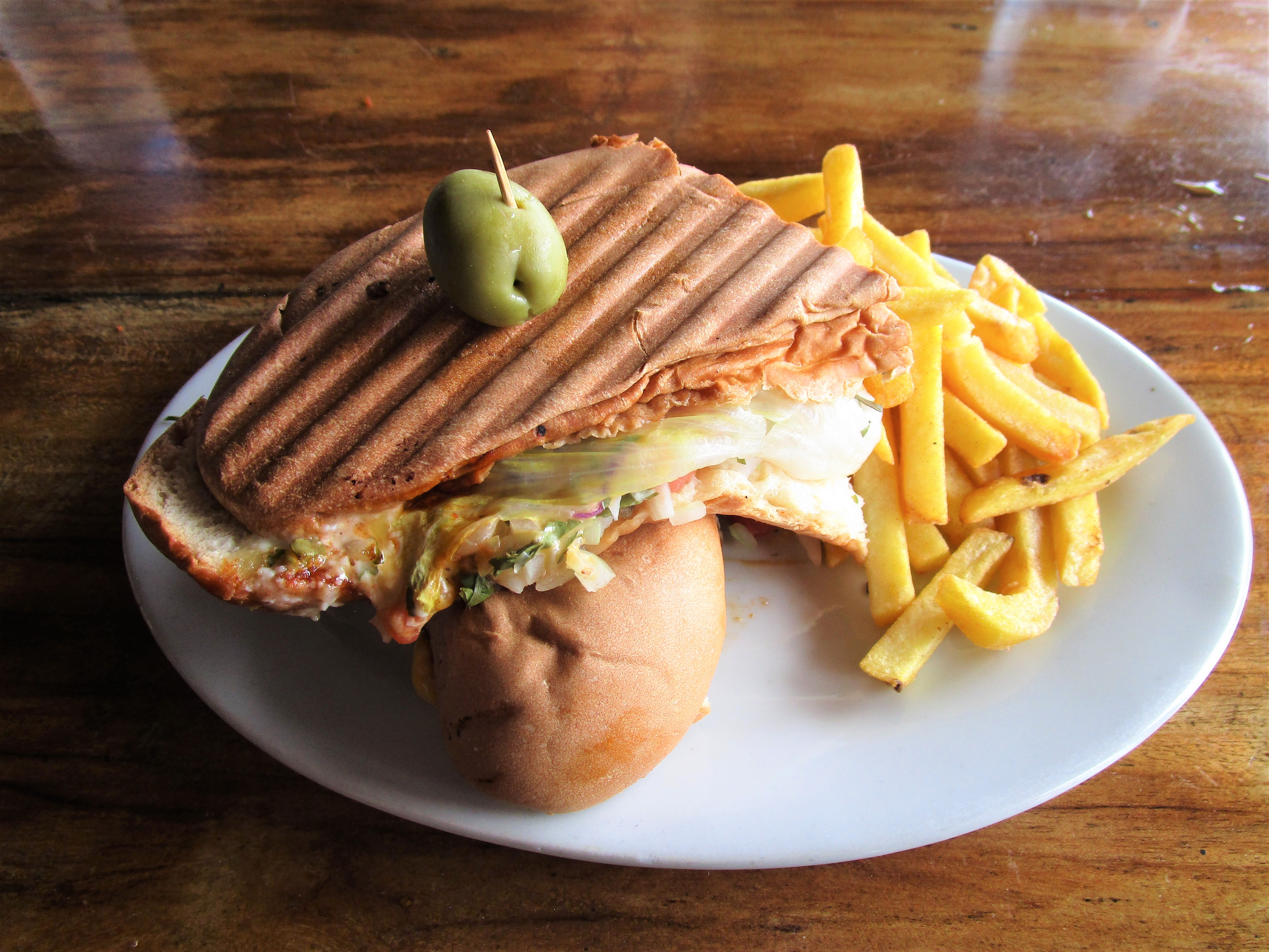 This is another “shotgun shack” styled building that is long and narrow with a nice deck out back to watch the water taxis zoom by. Good views and a little breeze draw locals for lunch as does the buffet with fried chicken, beans, potatoes, rice, cole slaw and cold drinks. You can also order off the menu if you prefer something different, like a sandwich, French fries (papas fritas), curry, or freshly made seafood.