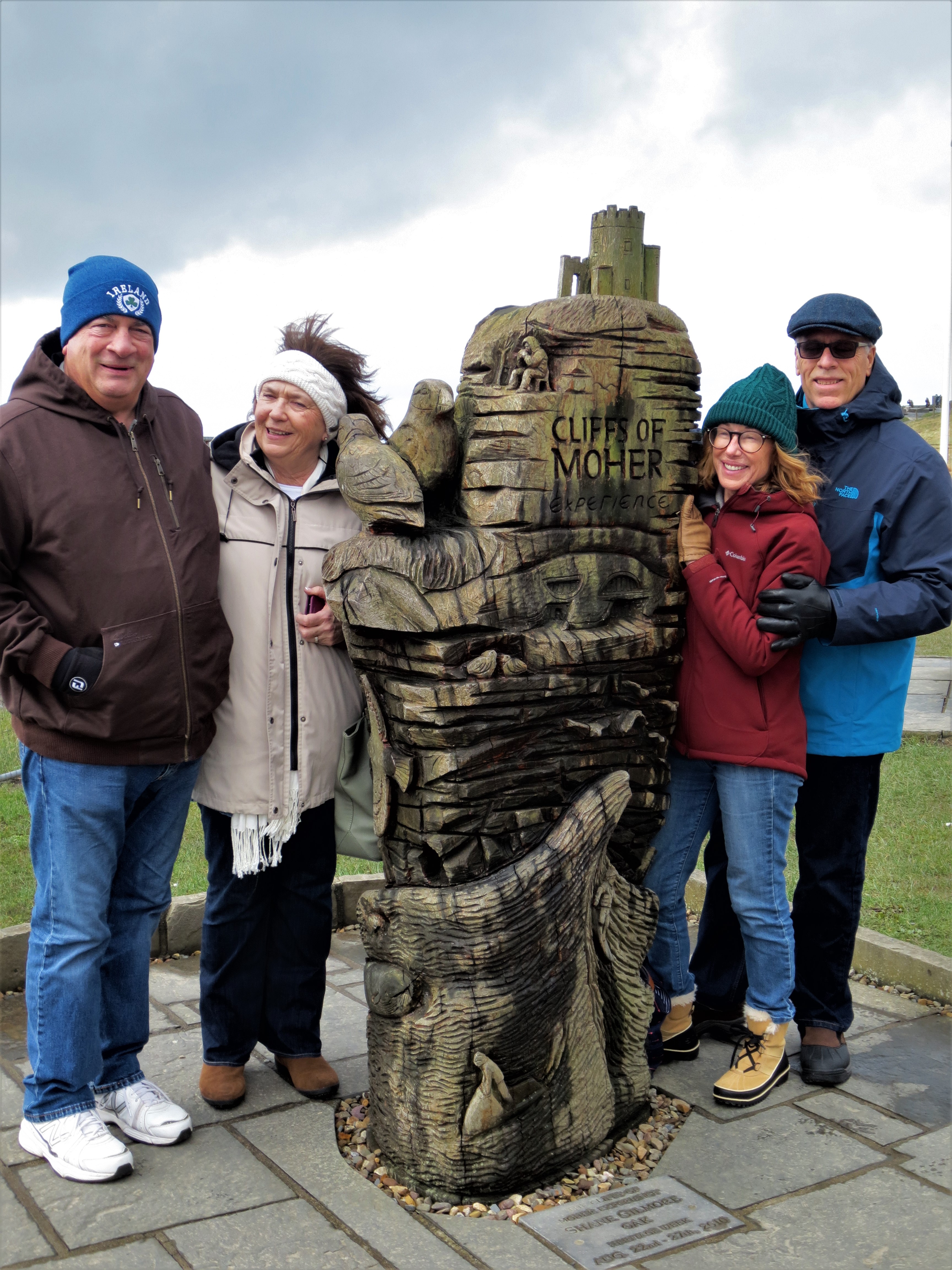About 2 hours away are the Cliffs of Moher. For those who actually read our website (Barb) that’s the cliffs on our homepage. Always a cool picture opportunity and sometimes a wee bit windy. This time would be no exception, awesome views, partially cloudy skies and a wee bit of wind, so “wee” no one wanted to walk along the cliff edge to get a better look!