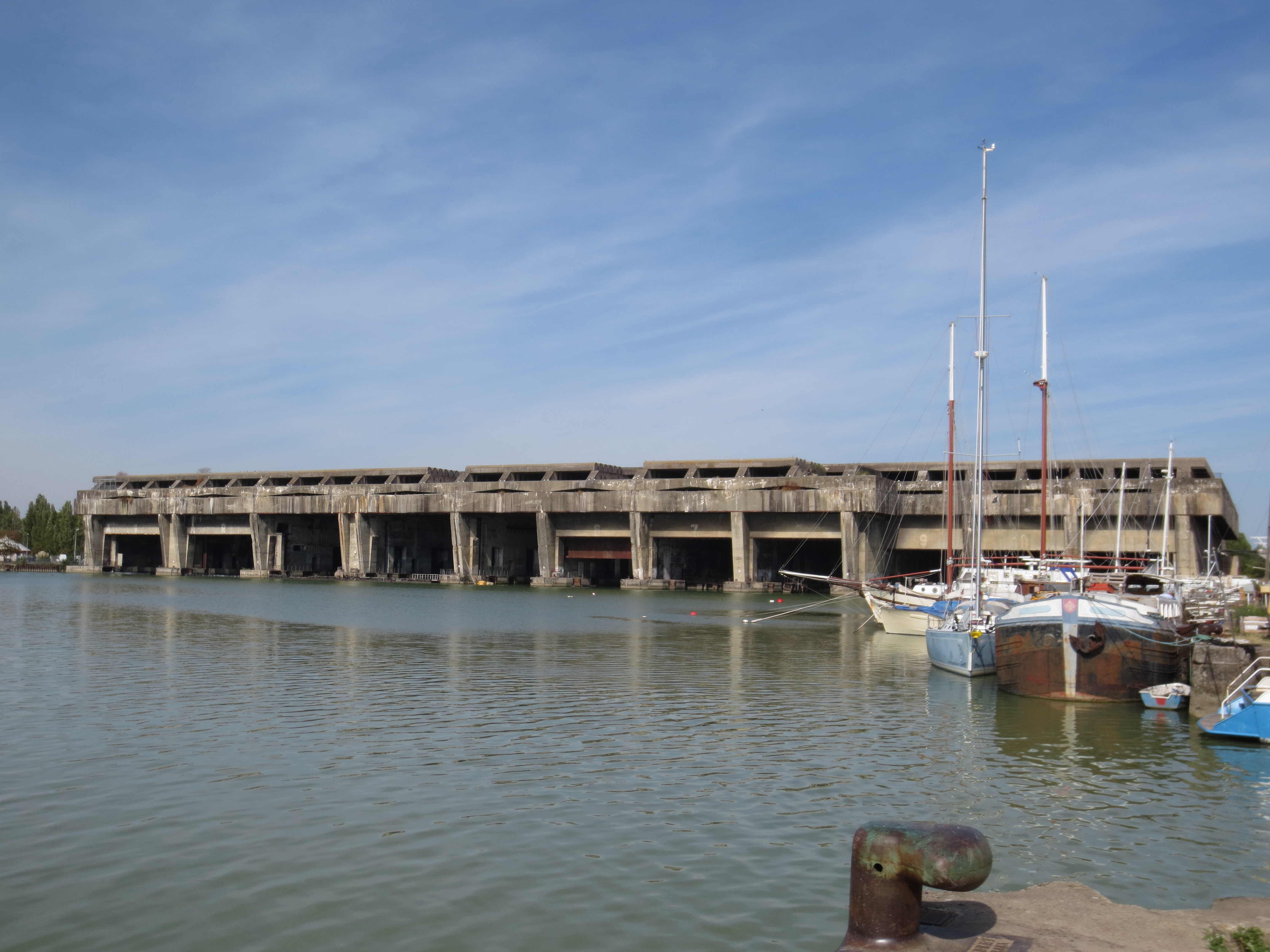 You knew there had to be a WW2 part to this WW,Too city we visited. The submarine base or bunker or pen was erected primarily for use by Italian submarines. These craft were prone to frequent breakdowns and had numerous issues so a base that was close to the Atlantic and under German cover worked great. The German U-boats also used this bunker. Commissioned in 1942, it became home for the 12th German flotilla and U-178, it’s first German customer. The Italian’s named their new base, “Betasom”, Beta for the “B” in Bordeaux, and “Som” meaning submarine in Italian. Pretty clever, huh! Guess if someone heard that on the street they’d never think it was a submarine base in Bordeaux.
