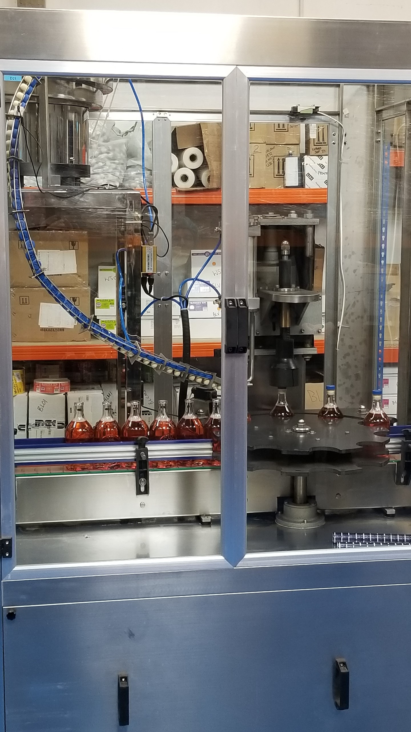 At 2:30pm, we donned our safety vests, walked to the next building, which was an old equipment shed, put on a hair net (very flattering) and began the tour. So, when I said this was a micro-distillery, I meant a one-room distillery that covers the entire process from cleaning the bottles to case packing and palletizing. Guess it’s a short tour!