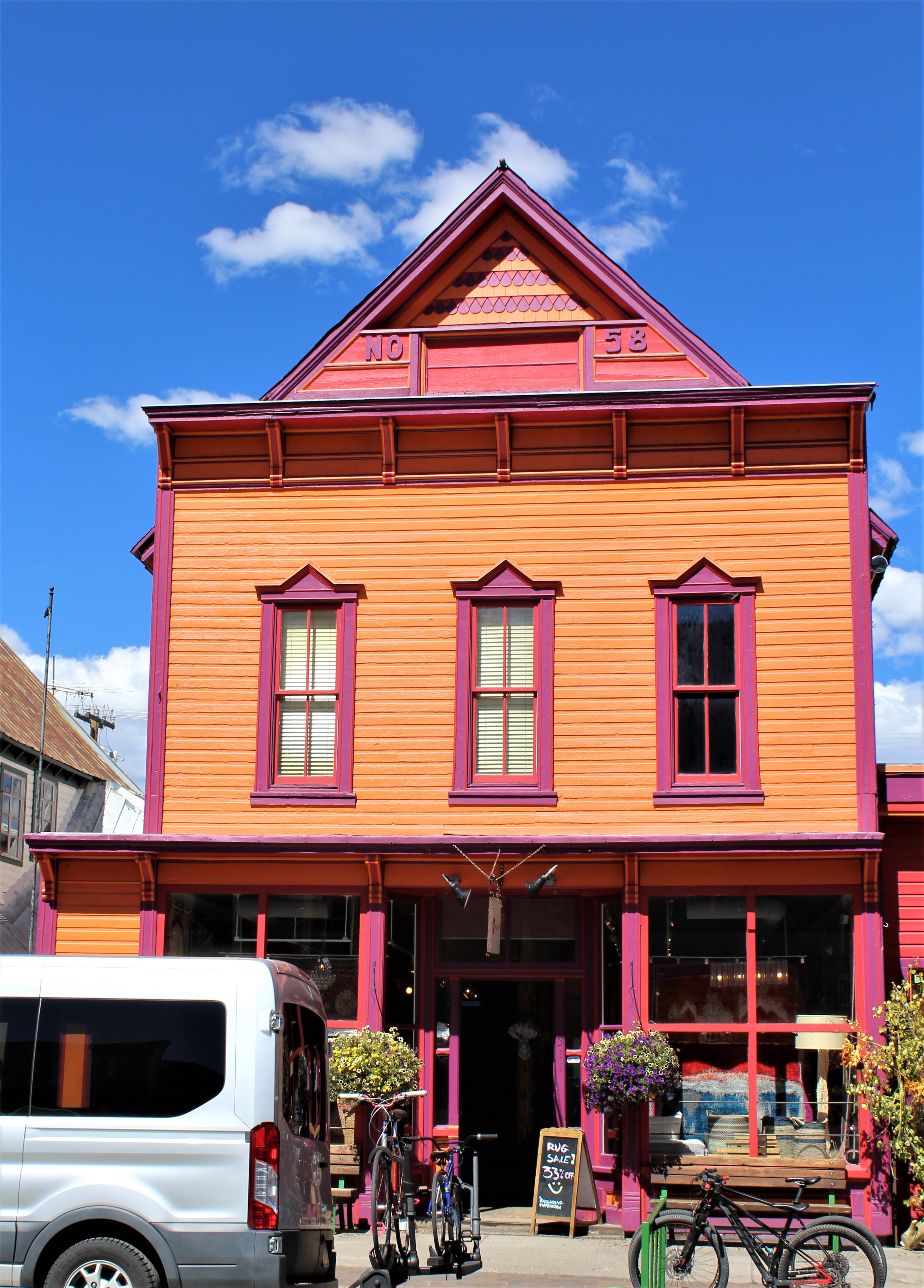 We’re heading for Elk avenue and the historic center of Crested Butte. This street is lined with buildings from the late 1800’s and has some real character, not to mention one of our favorite pizza parlors is there and we’re getting a little hungry. Most of these buildings have had varied lives since 1880, when the town was incorporated. Like the liquor store that was also once a doctor’s office and then became a mortuary before returning back to a liquor store. Or the Wooden Nickel saloon that was known for its owner shooting his revolver into a tree stump late at night to keep nearby residents awake. If the people were awake, he could keep serving drinks, or so the story goes.
