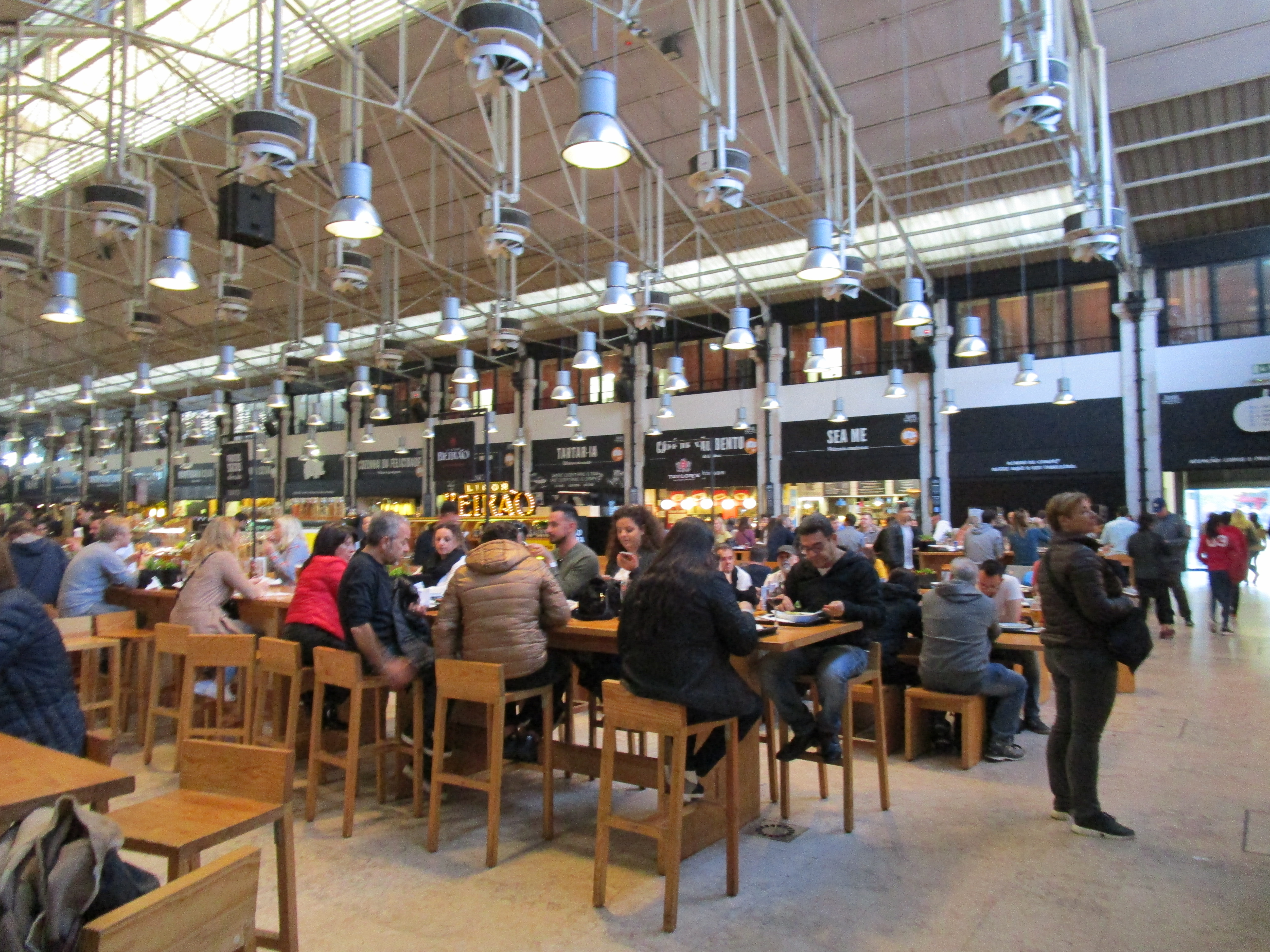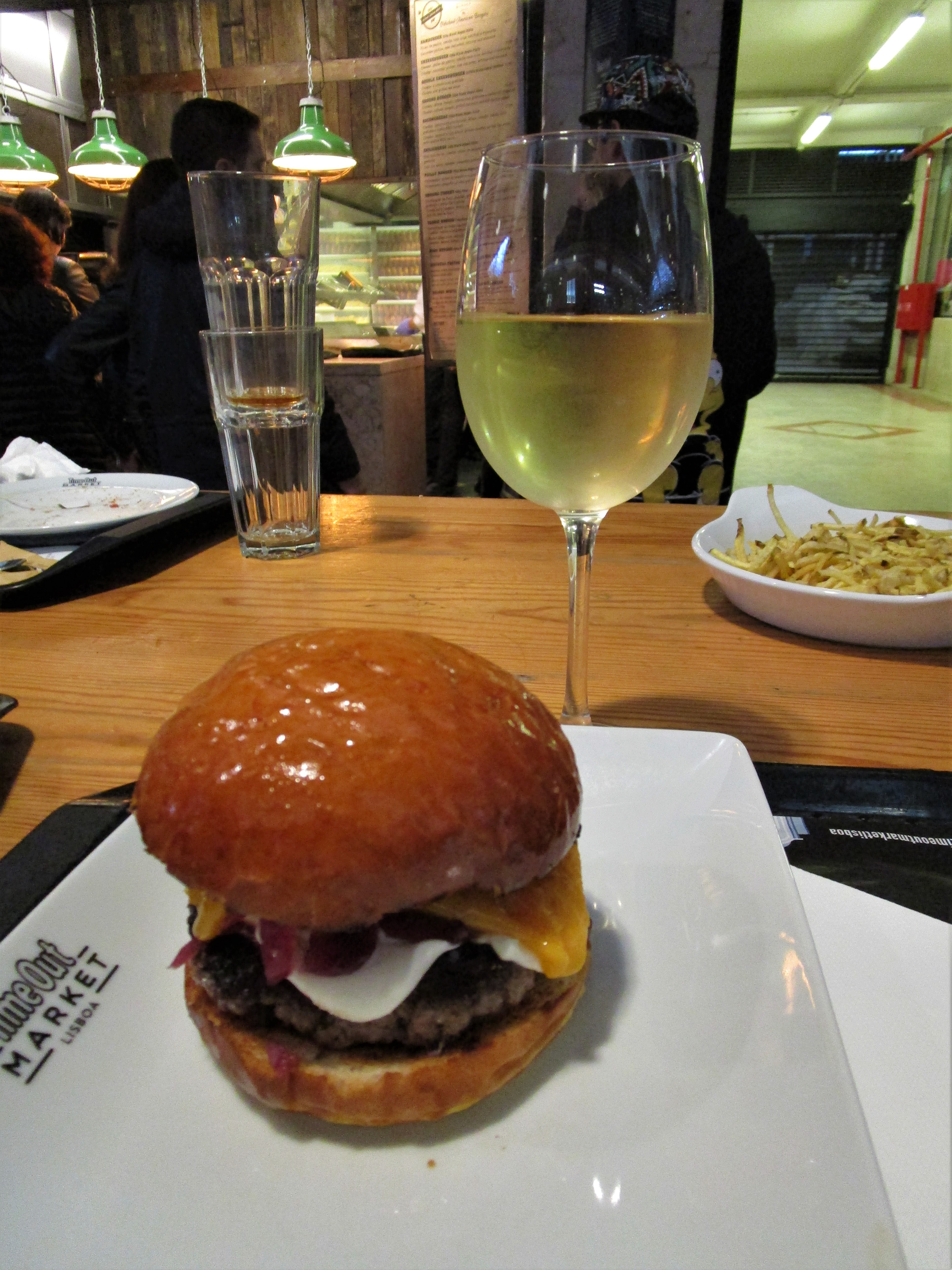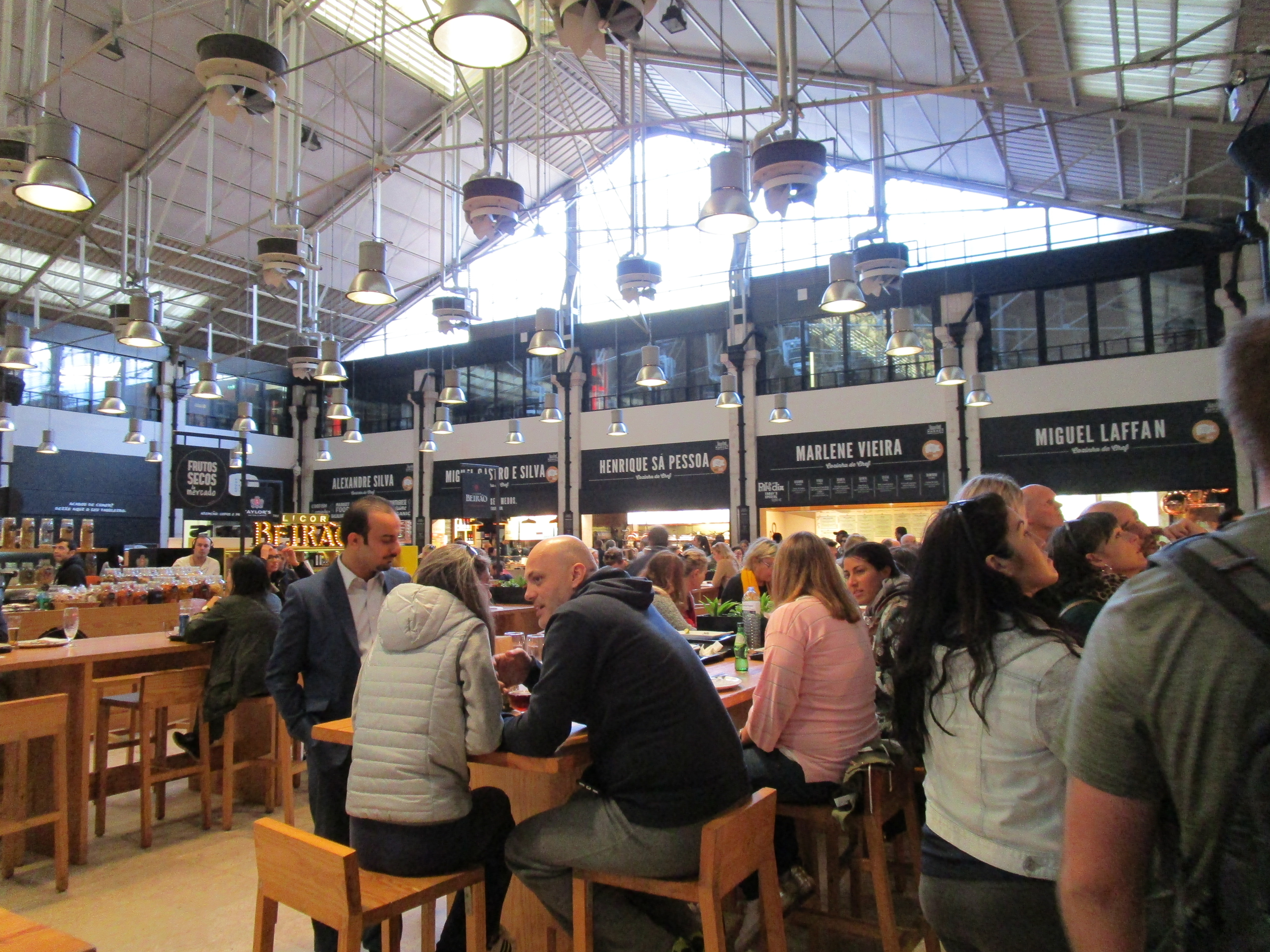 IMG_7504 IMG_7505 (2) IMG_7506 (2) IMG_6094 IMG_6109 IMG_6110 IMG_6111 IMG_6112 IMG_6113 IMG_6126 IMG_7543 IMG_7544 IMG_7545IMG_6088 (2)Food is another frequent find in Portugal. Many of Lisbon’s markets are centered on food vendors with some markets consisting solely of food and drink shops. ‘Time Out’ is one of these markets that specializes in food and drink. Created in 2014 by the Time Out Portugal team, a group dedicated to promoting the finer experiences in Portugal, the market consists of 24 restaurants, 8 bars, 12 shops, a cooking school and a music venue. Inside they can seat 500 people with an additional 250 seats outside. According to Time Out Portugal, if it’s good they write it up in their magazine, if it’s great, they add it to the market. So it’s no wonder when we visited we went for the best traditional food we could find, hamburgers!