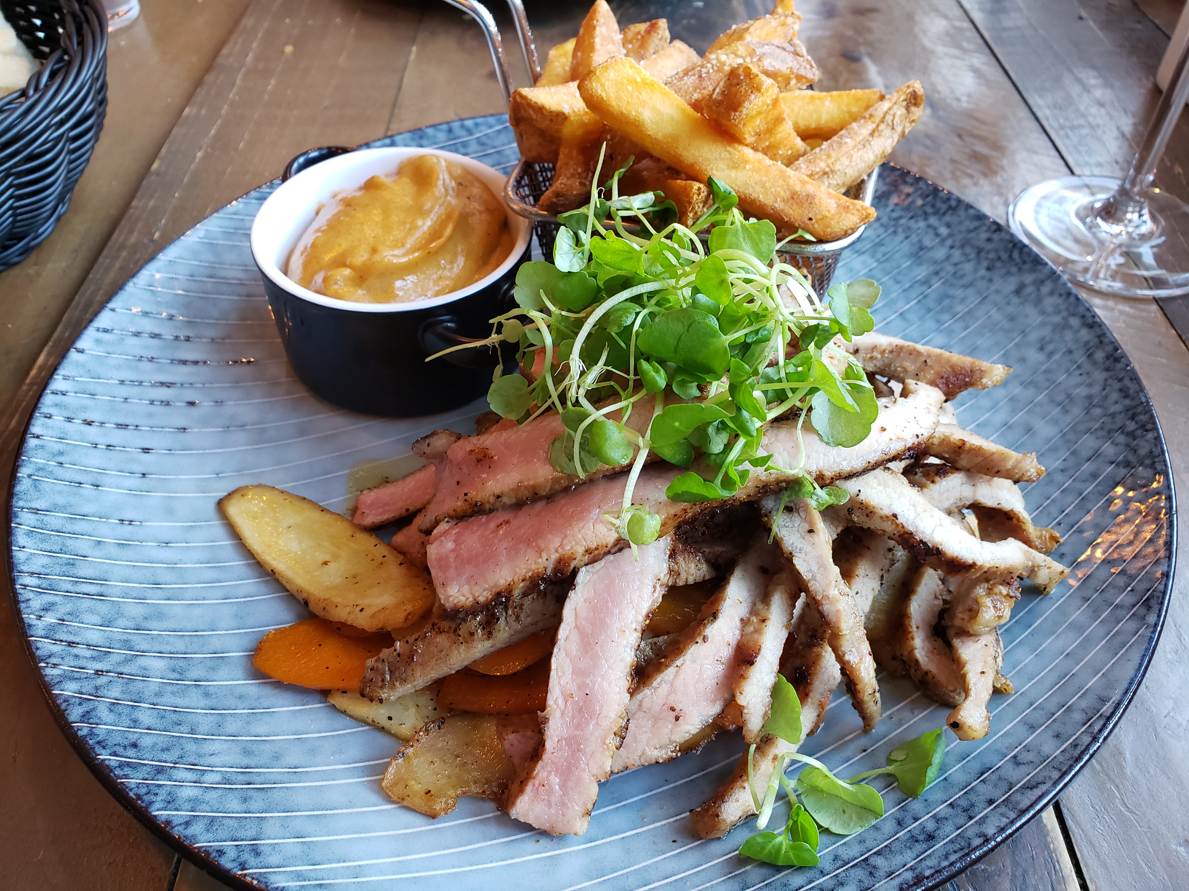 Our meals, fish & chips for me and roasted pork for Collette, were pretty good. Collette’s lunch was absolutely delicious, mine just OK. But hey, what do you expect for a hundred bucks? And that, little Geppetto, is why we don’t eat out all the time.