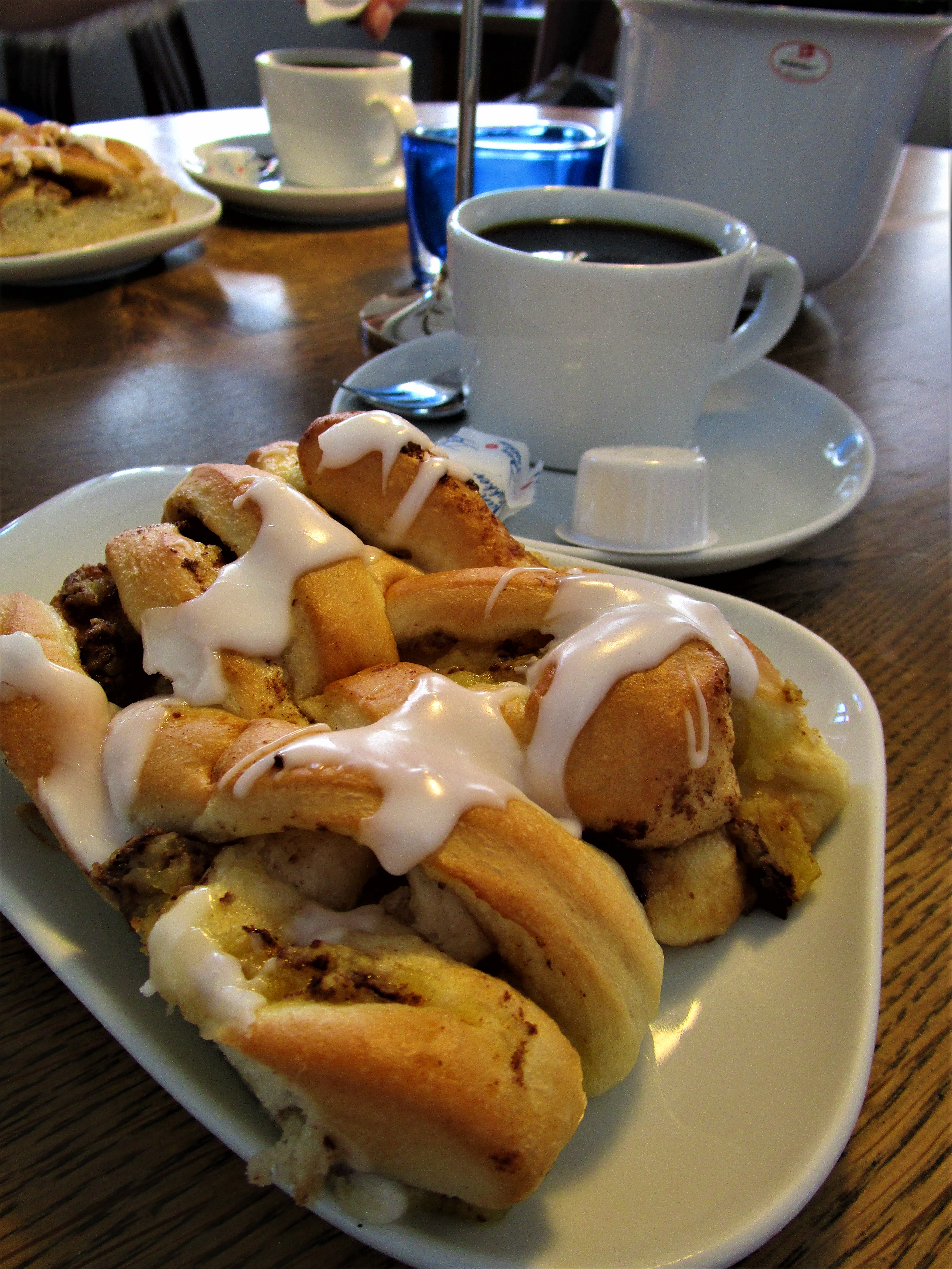 Quaint old town and fun to walk through. Of course, now that we have acclimated to Scandinavian customs, it’s time for our fika and we found the perfect pastry shop. Coffee, Americano with cream, and ½ of a 15-inch pecan / cinnamon roll. (They only sold full or ½ so we went light)
