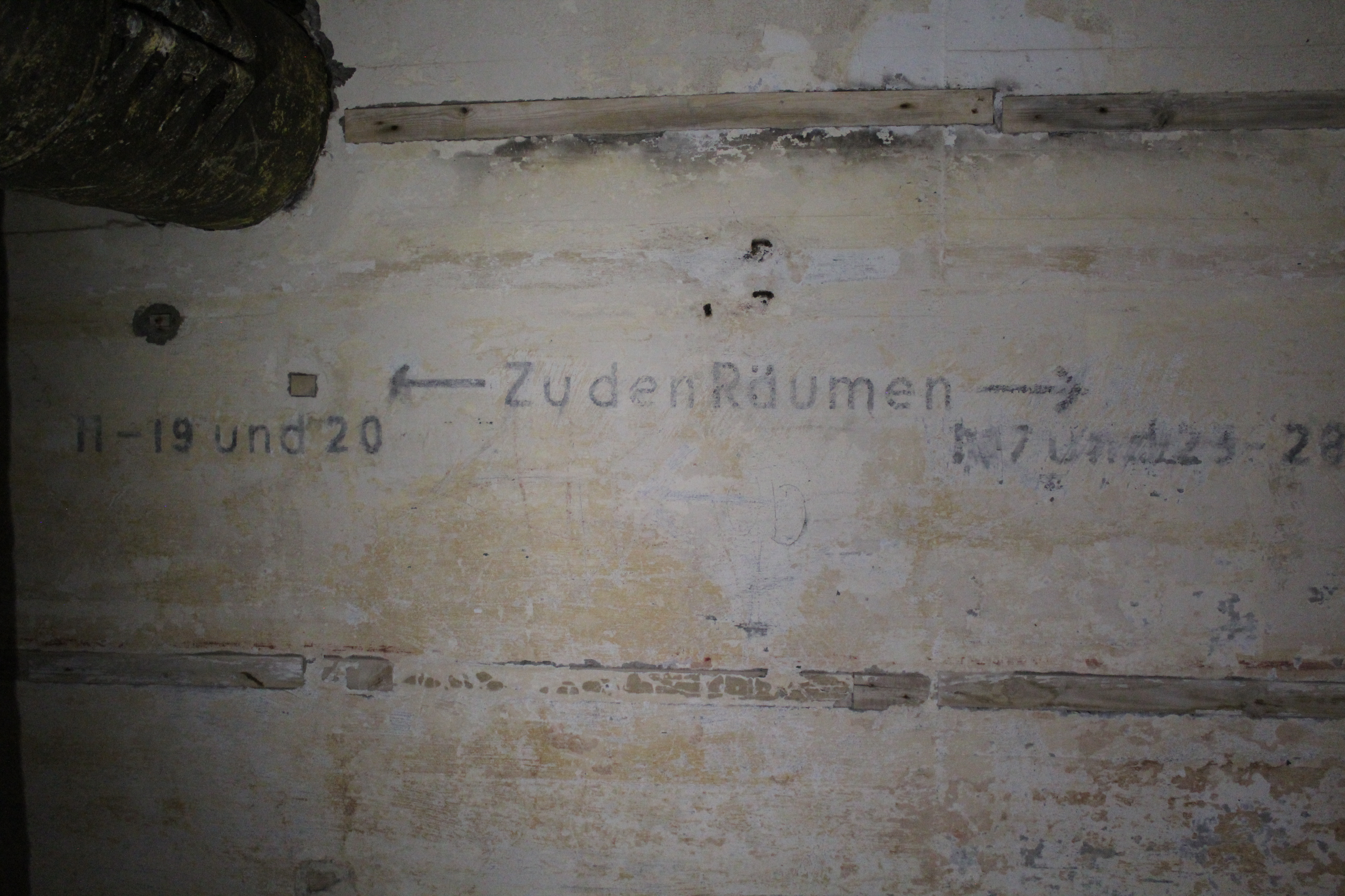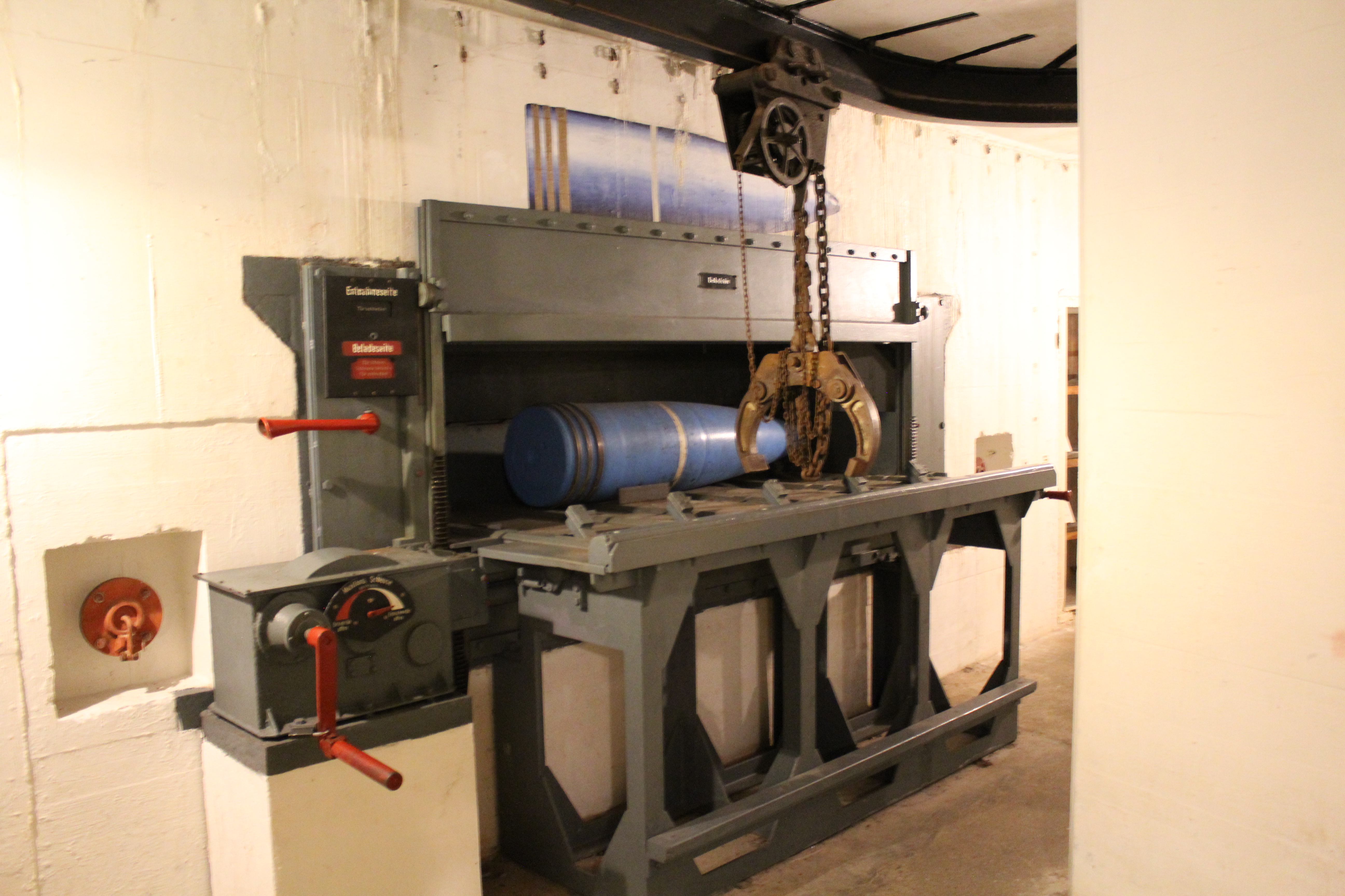 Original directions and paint on wall of 38cm cannon bunker