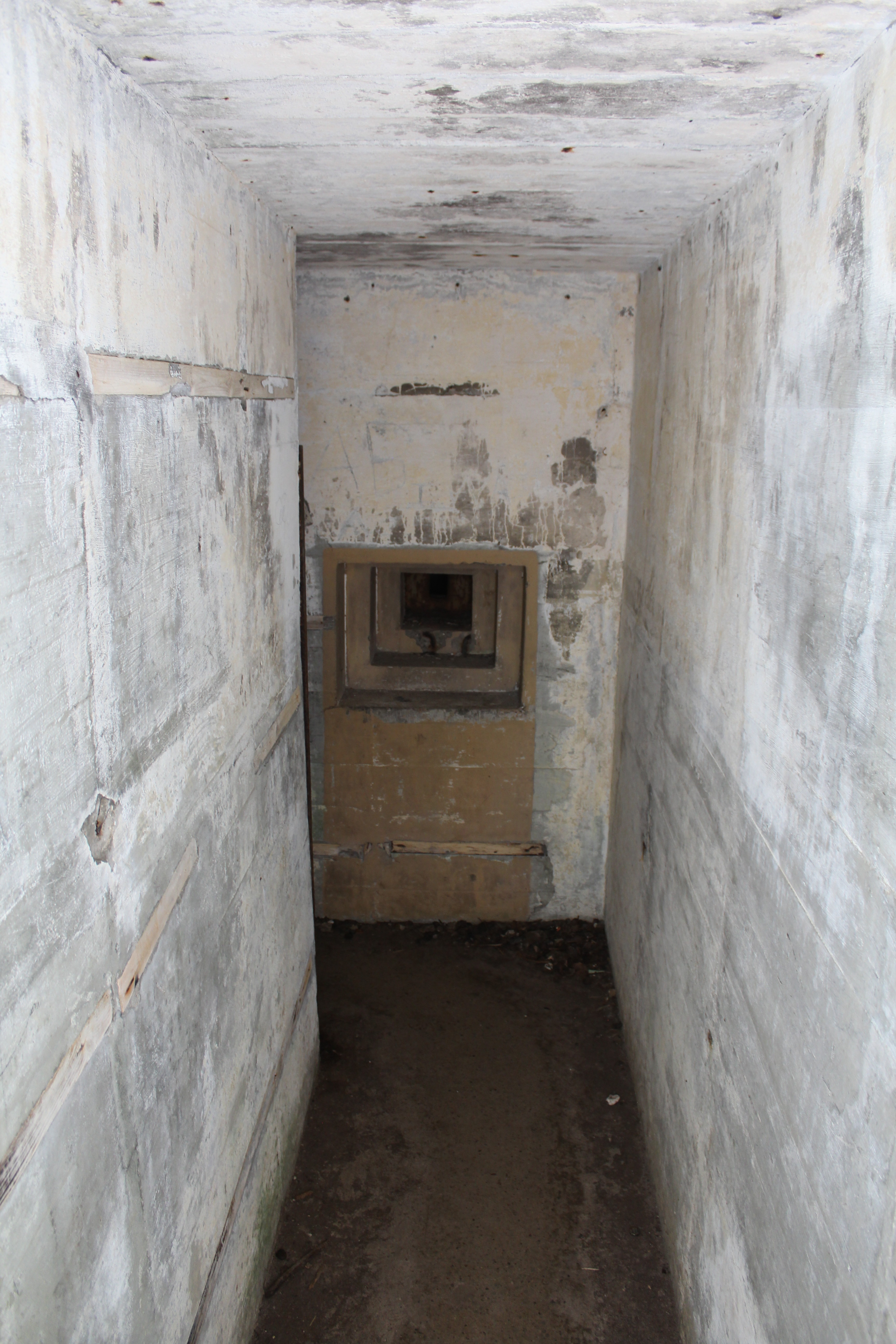 We toured the museum bunker then struck out on our own to discover a few of the outlying bunkers. We found one of the flak-gun bunkers, nothing much inside. Then we found the searchlight bunker, again, nothing much inside. Then we found one of the other 38cm cannon bunkers that still had original paint and directions on the walls. Now that’s cool!