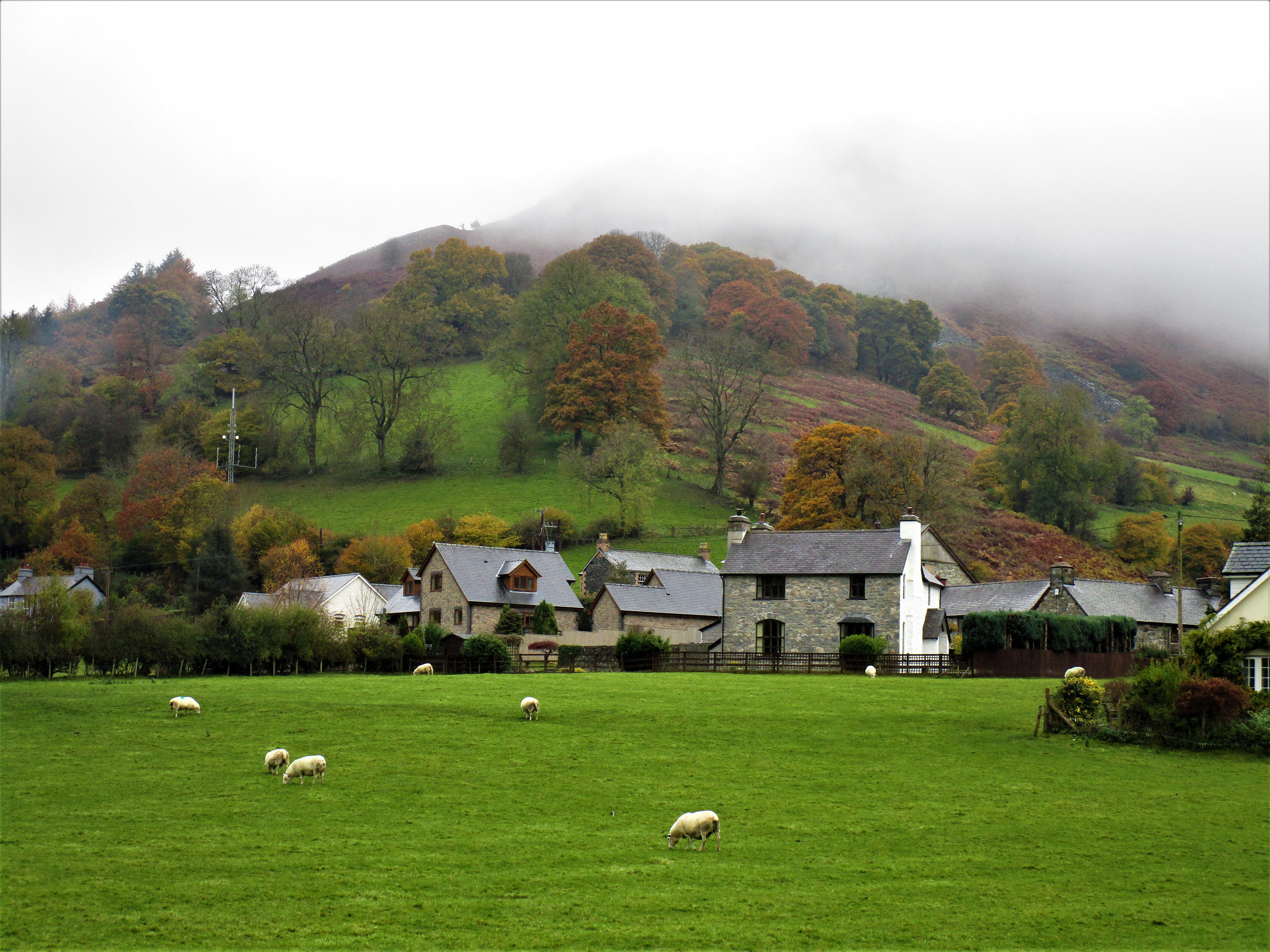 Llangynog sits in a valley surrounded by some low mountains (hills in Colorado) with the Afon Tanat river running through it. In the summer, this place is a popular spot for fishing, hiking, biking, camping and other outdoor activities. In the fall, it’s the colors and cool weather that brings tourists, us.
