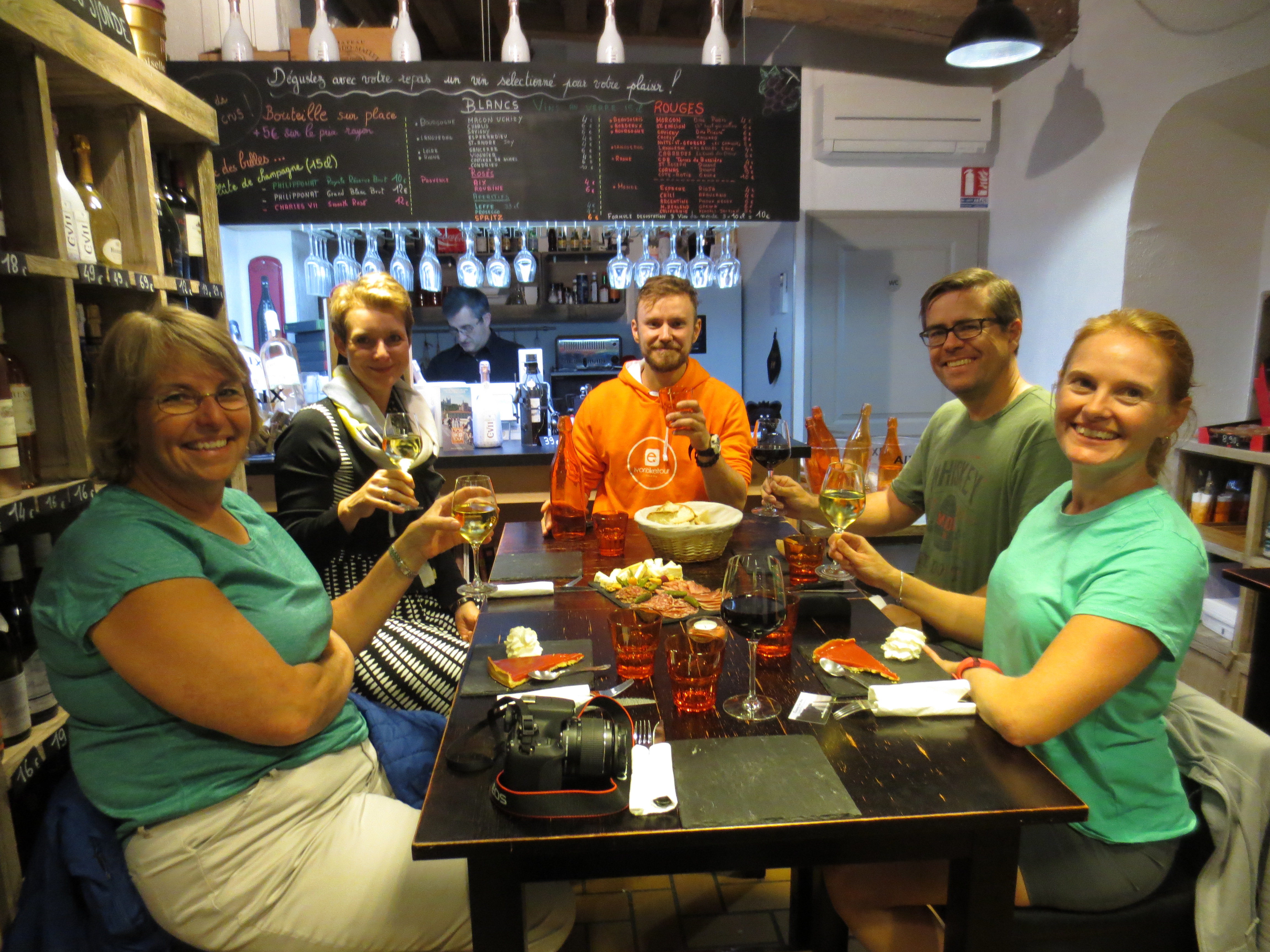 Mid-tour we stopped at a small wine bar for a sampling of cheeses and meats with a glass of red or white wine. The shop was no bigger than an over-sized closet and very intimate which made the experience that much better. Collette enjoyed a dry, white wine, while I had a very nice red. The meat and cheese tray had three types of meats and cheeses, all of which went well with either wine selection.