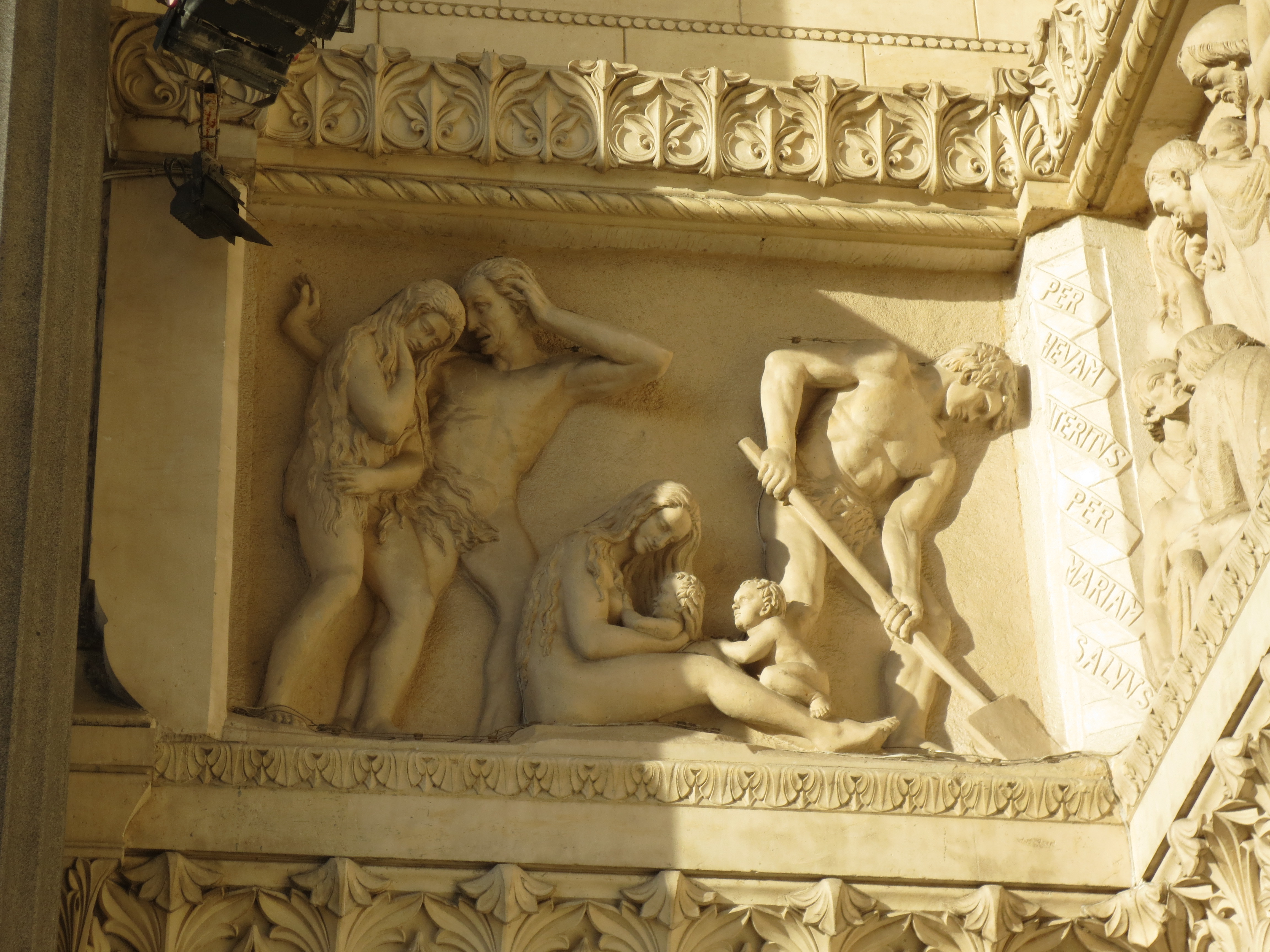 Depiction of Adam and Eve and kids??? From the look on Adams face, it says, “we’ll never be able to retire!