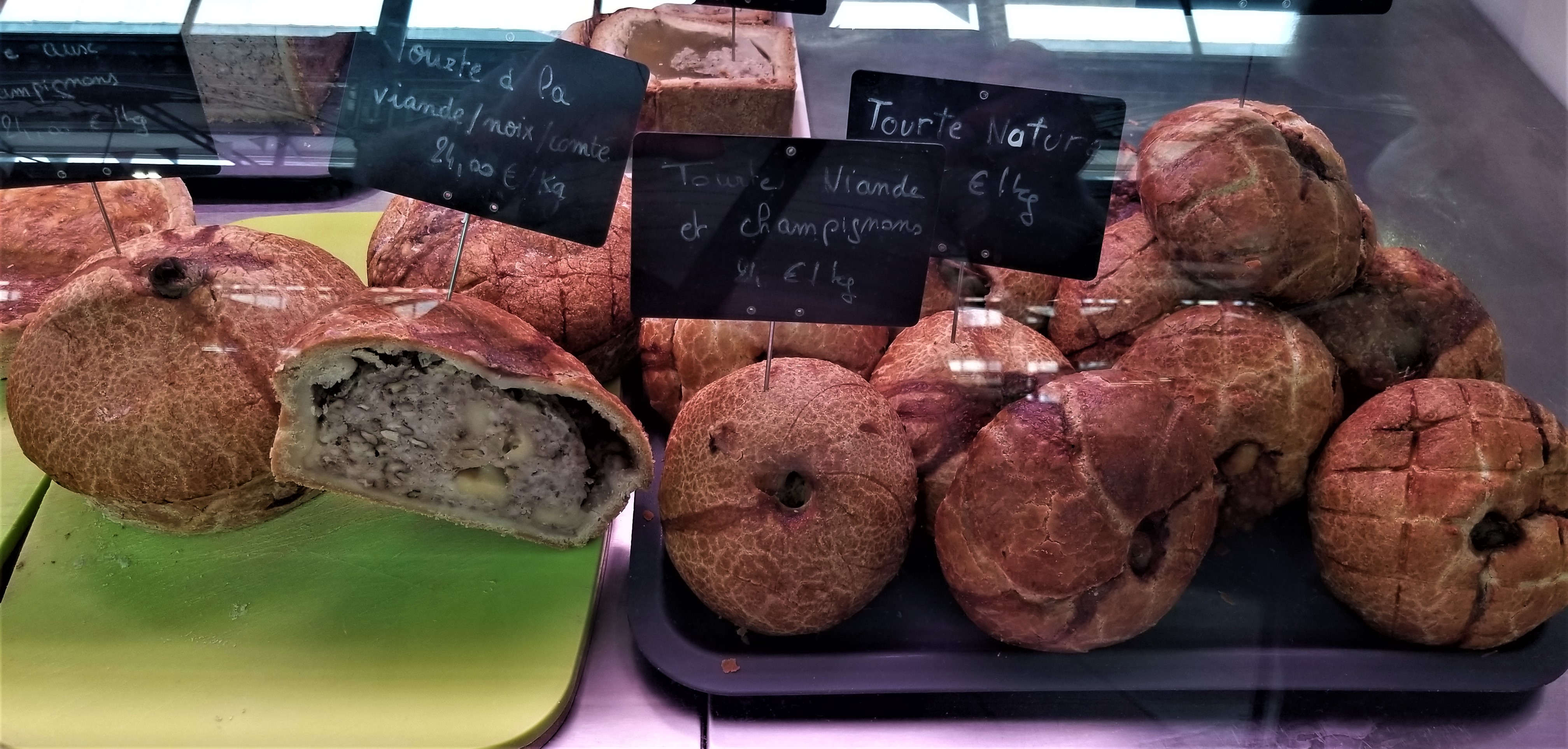 Meat, mushrooms, and nuts stuffed in a thin crust of bread. Why the nuts?