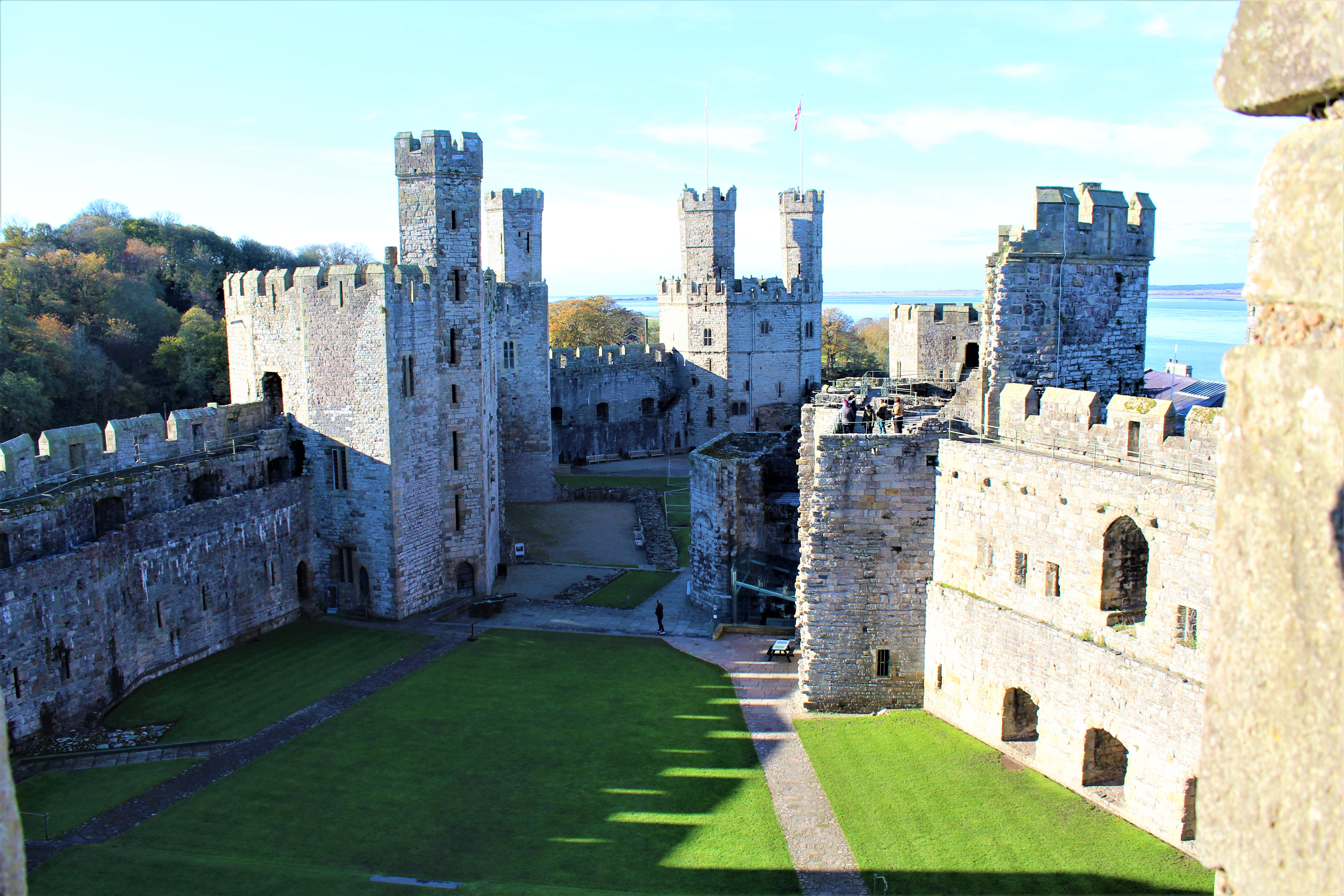 Sure enough, about 2 hours later we arrive at Caernarfon Castle. Caernarfon Castle was built by Edward I in 1283 and looks today pretty much as it did then, with some obvious exceptions like floors, windows and the like. It was built as one of Edward’s “Ring of Iron” castles that encircled Wales and were meant to defeat any attempt by the Welsh people from uprising. Edward I was a busy boy during these times. He built 10 castles from 1277 to 1295AD, spending around 80,000 Pounds or ~33,000,000.00GBP in today’s money.