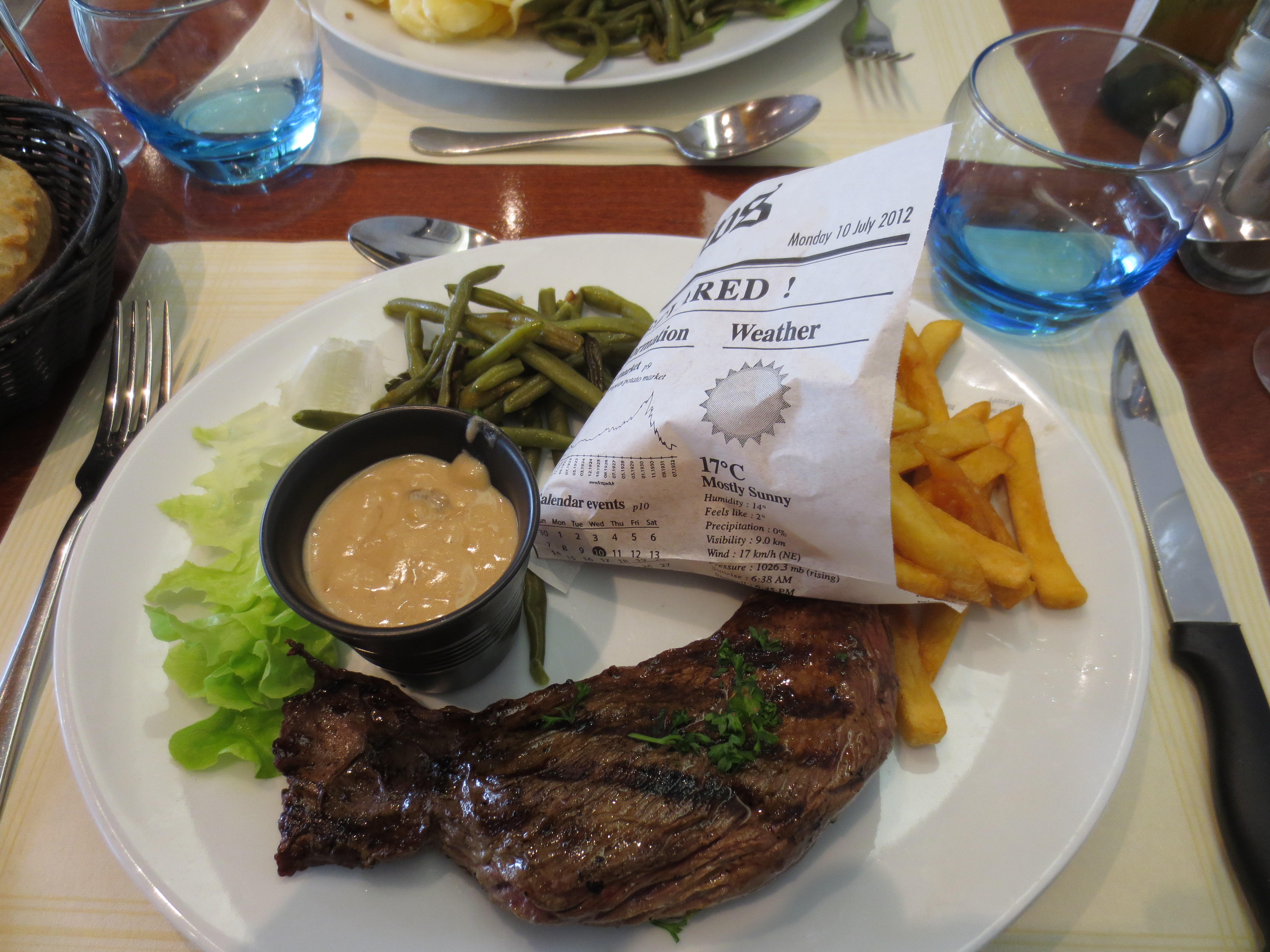 Steak & Fries (don’t ask for medium rare – damn near healed and walked out!)