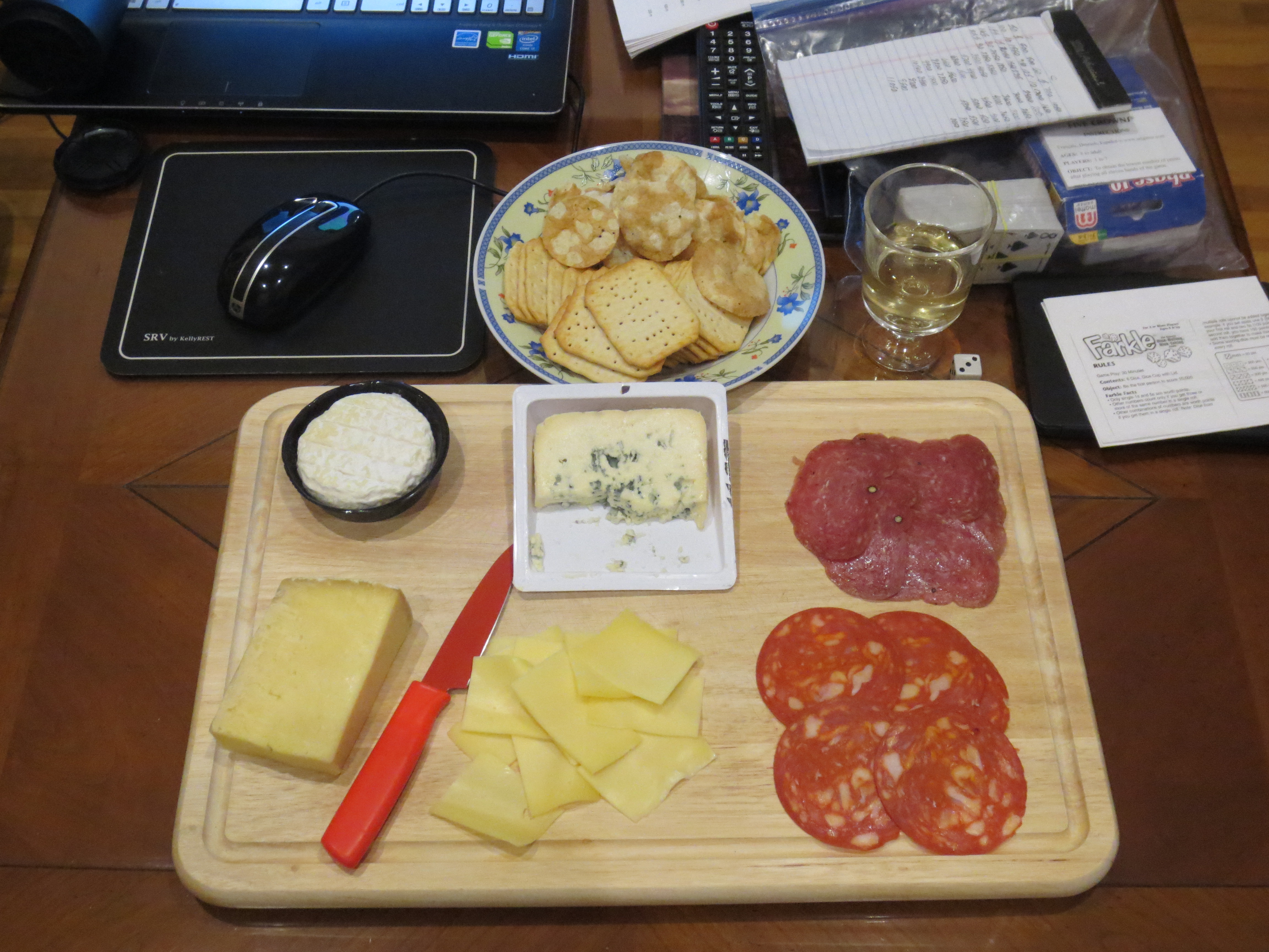 Blog working snack: Cheese, salami, chorizo, crackers & WINE!!!!!
