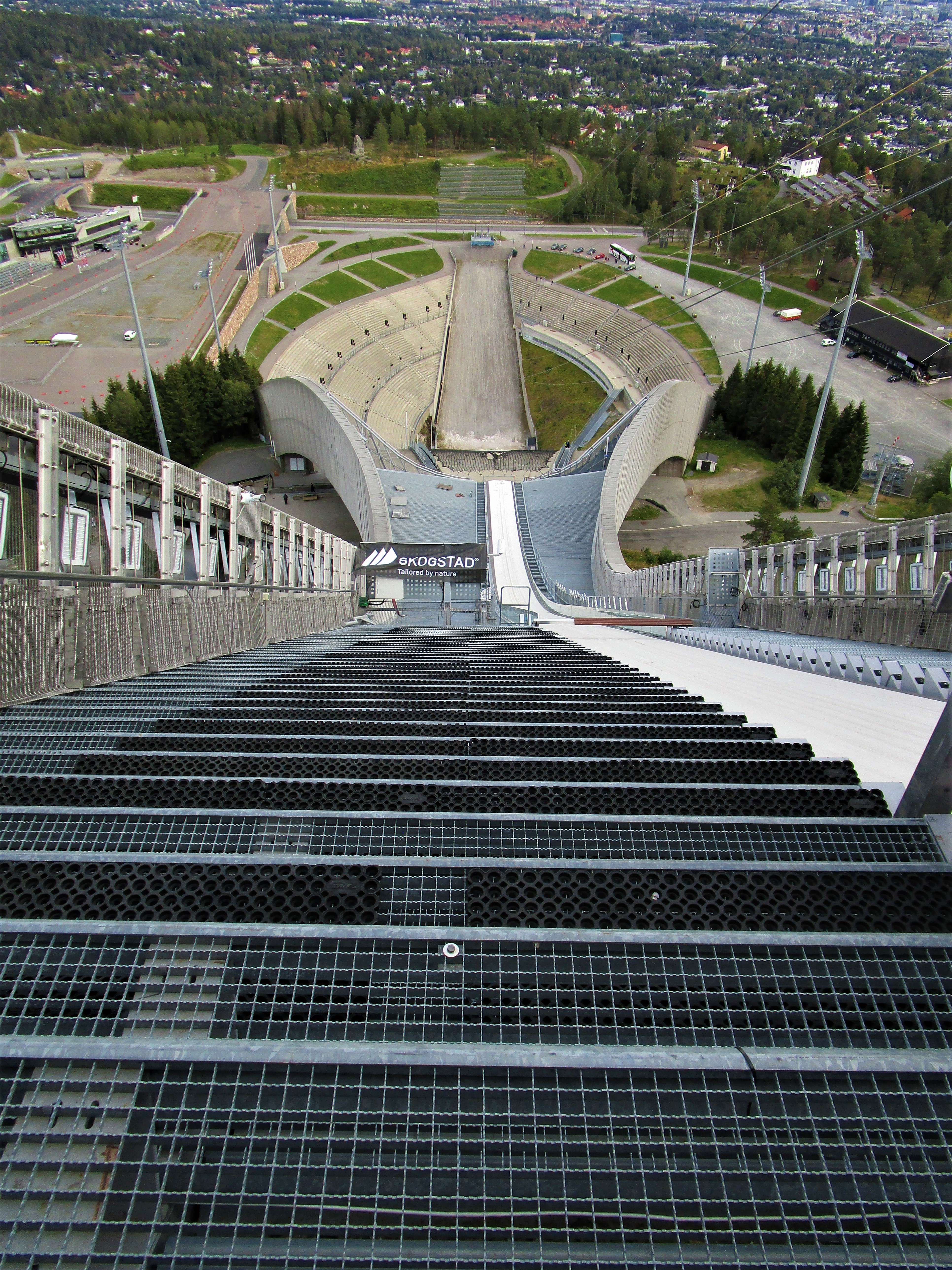 Still one more stop on today’s adventure, the Holmenkollen ski jump and museum. The first ski jump at Holmenkollen occurred in 1892 in front of a crowd of 12,000 people. The jumper, Sven Czechdisout, sailed for a whopping 21.5 meters (64’). After the jump he was reported to say to the crowd, “vat da hell was dat”?