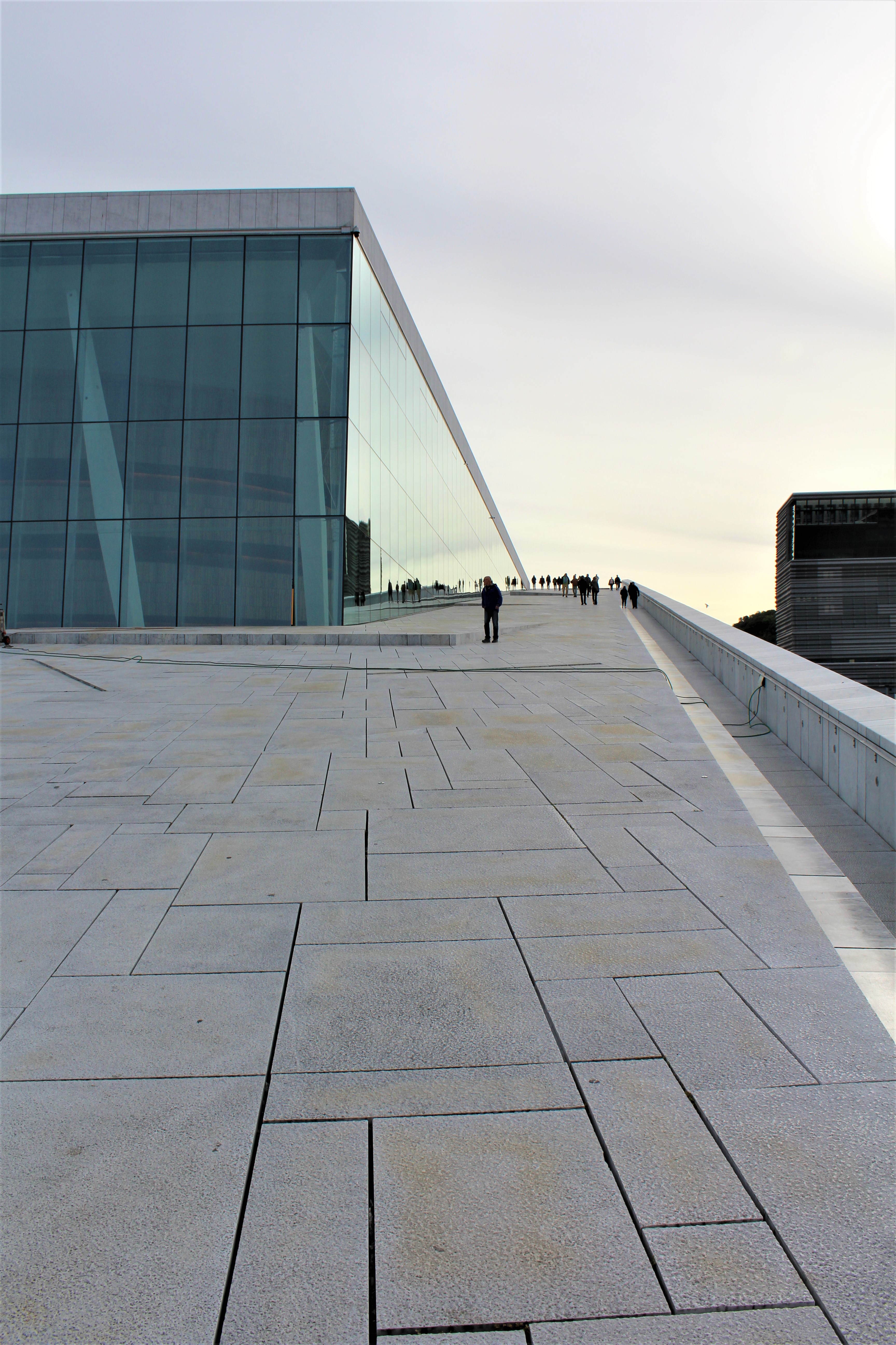 Once downtown, we shuffled off to the Opera House. Opened in 2008, the building has 1,100 rooms and has a total area of 414,000sqft. What’s unique about the design of this building? For starters, you can walk on the roof. Through a series of ramps incorporated into the building’s architecture, one can walk all the way to the roof to get a great view of the harbor. Today, it’s not crowded and it’s not raining so the walk is pretty easy, but I bet in the summer it’s packed. And in the rain, woo hoo, look out below. Pretty good views and the weather is cooperating, no rain, just a few clouds but a little cooler today with a high of 540.