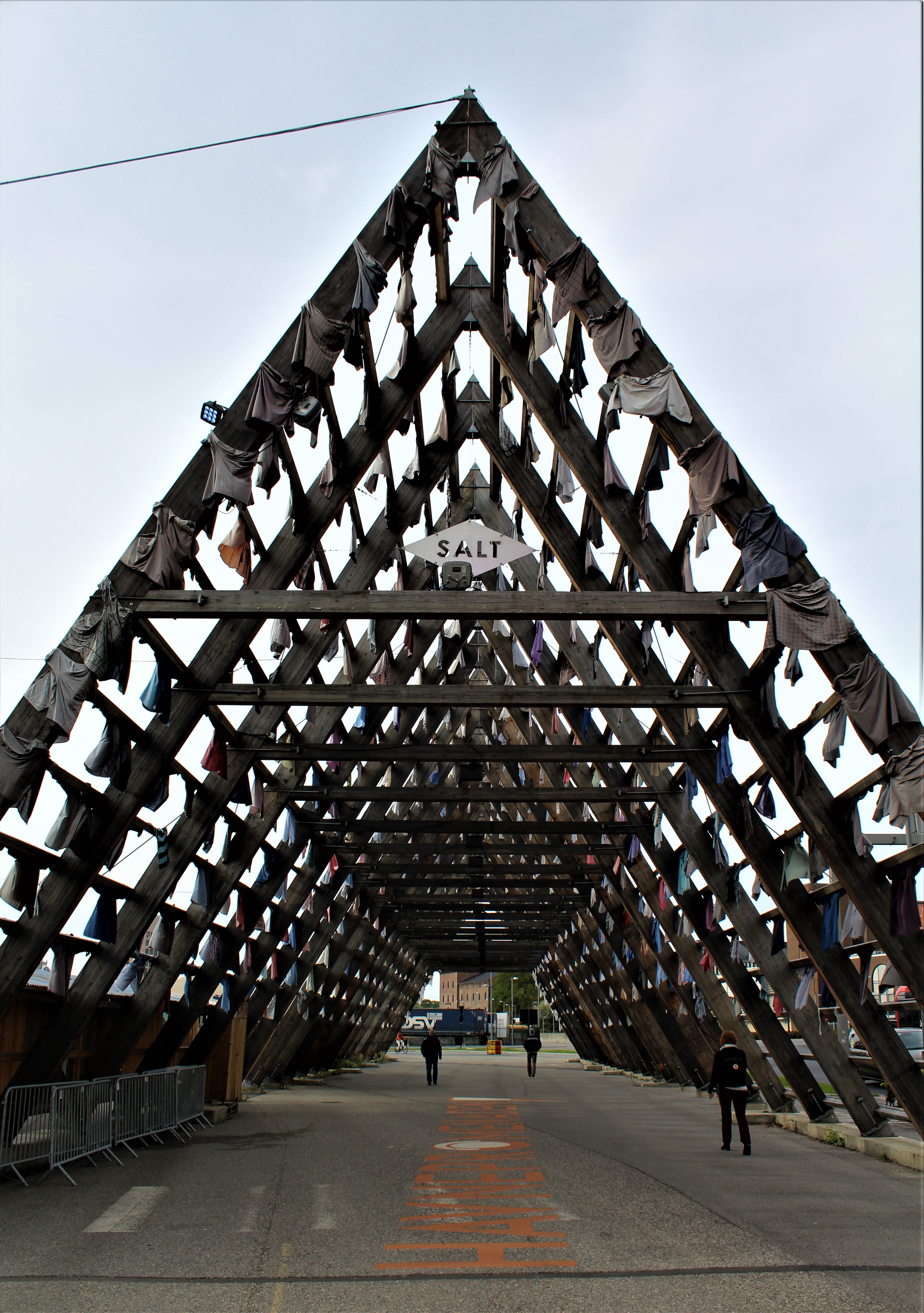 After all this sightseeing, it’s time for a pastry and coffee so we head over to the far side of the harbor where it looks promising to find a coffee shop. Nope, everything is closed but it was still pretty interesting. Who in the world builds a bridge and covers it with shirts? Apparently, this is an art installation by Kaarina Kaikkonen who thinks because we all wear shirts, we are all “one”. In her words, “All kind of people are together here, but we are still the same, we are no wiser than fish.” Well, there you have it, a few words of wisdom to live by. Funny where people get their inspiration.