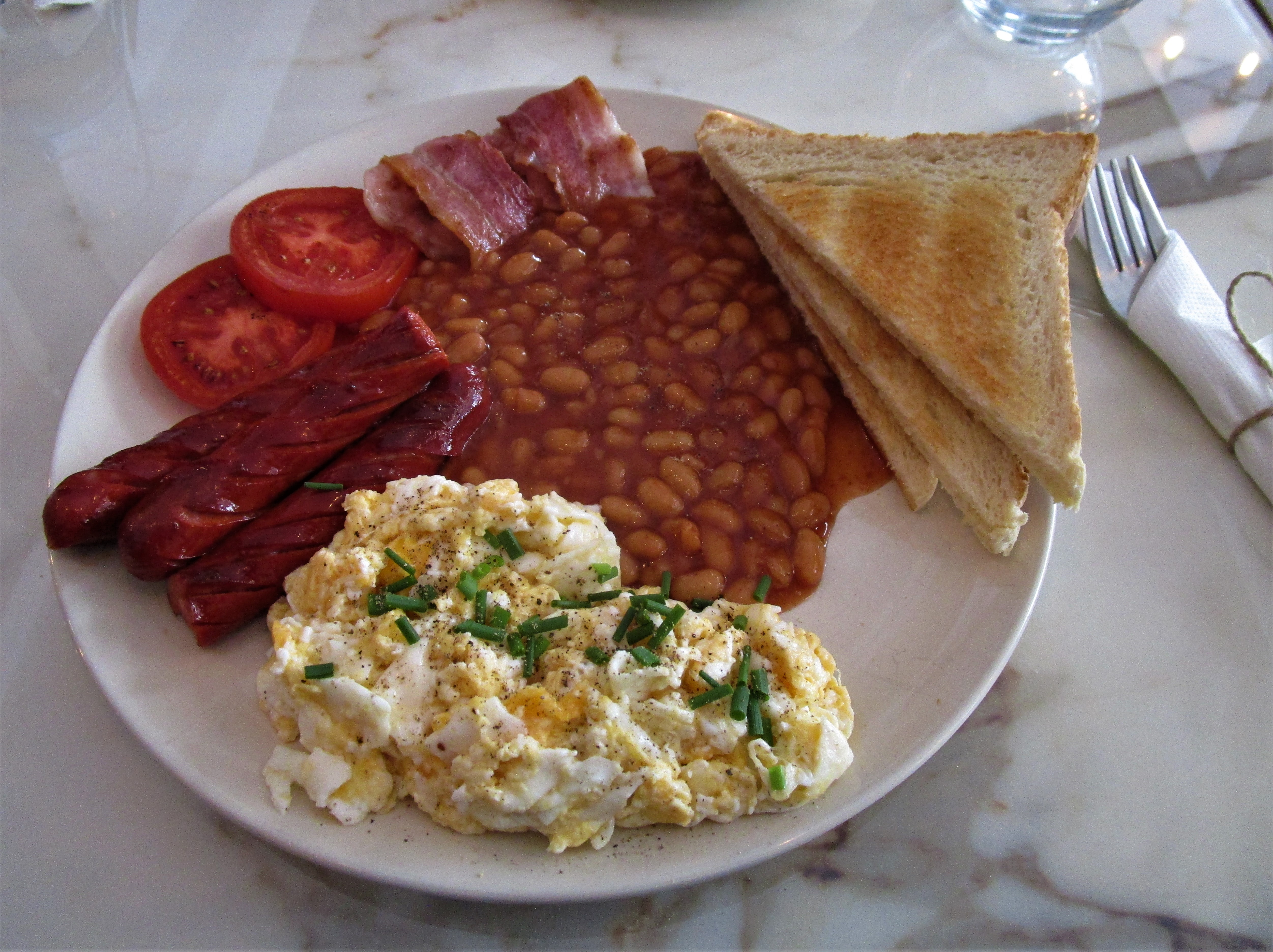 Meanwhile, back at the apartment, Dan and Collette are preparing for the mornings journey. Since we spent last night chasing down my phone, we didn’t have time to do any grocery shopping so first order of business is to find a restaurant for breakfast. Wouldn’t you know it, just around the corner is a great spot that serves full English breakfast.