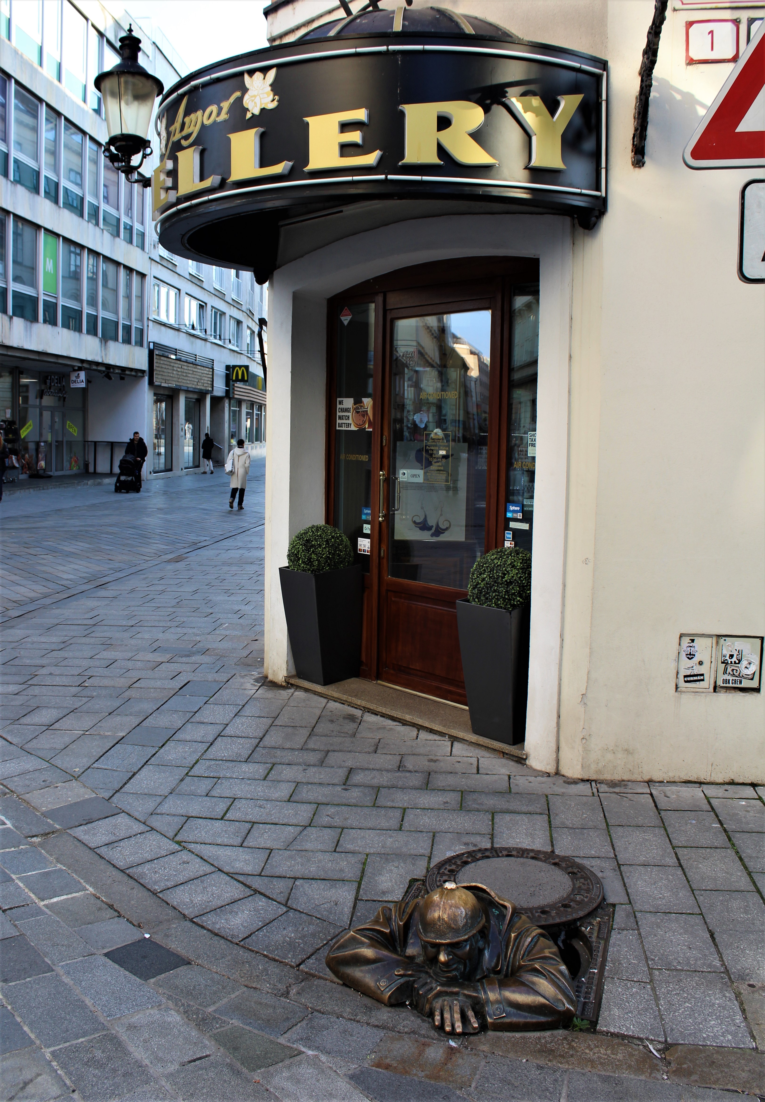 Got our cards, time to do some grocery shopping then find a pub for an afternoon cocktail. On the way we came across one of Bratislava’s famous sculptures, “Cumil”, the sewer worker. Created in 1997 by artist Viktor Hulik, this unique sculpture is the most photographed object in Bratislava!
