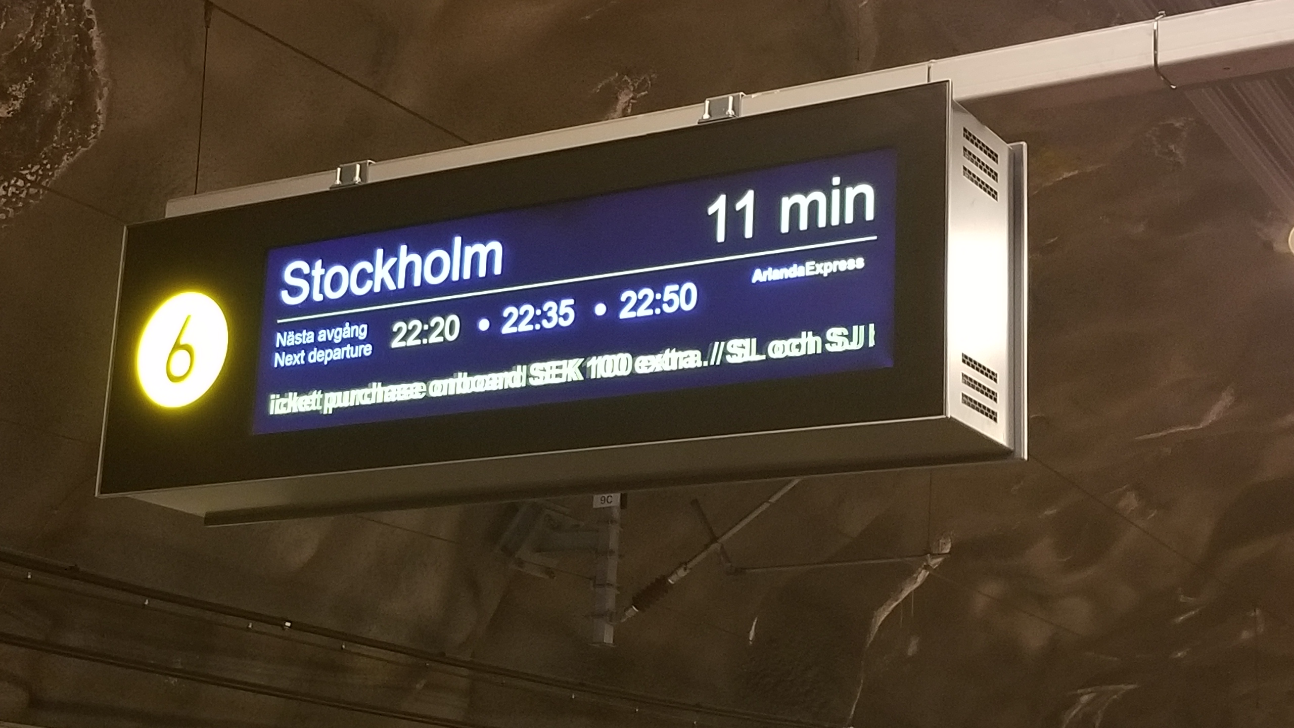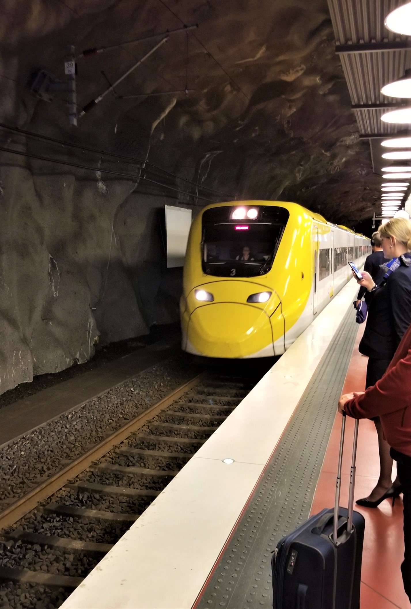 Once we landed the flight attendant announced that we would need to clear customs with our luggage. Usually, if you’re arriving from another EU country, you don’t clear customs again but maybe Sweden is different. Nope, grabbed our bags and out of there in 15 minutes! Now all we had to do was find Sky City and board our train to the City Center. We purchased our tickets ahead of arrival so head ’em up – move ’em out for the Arlanda Express!