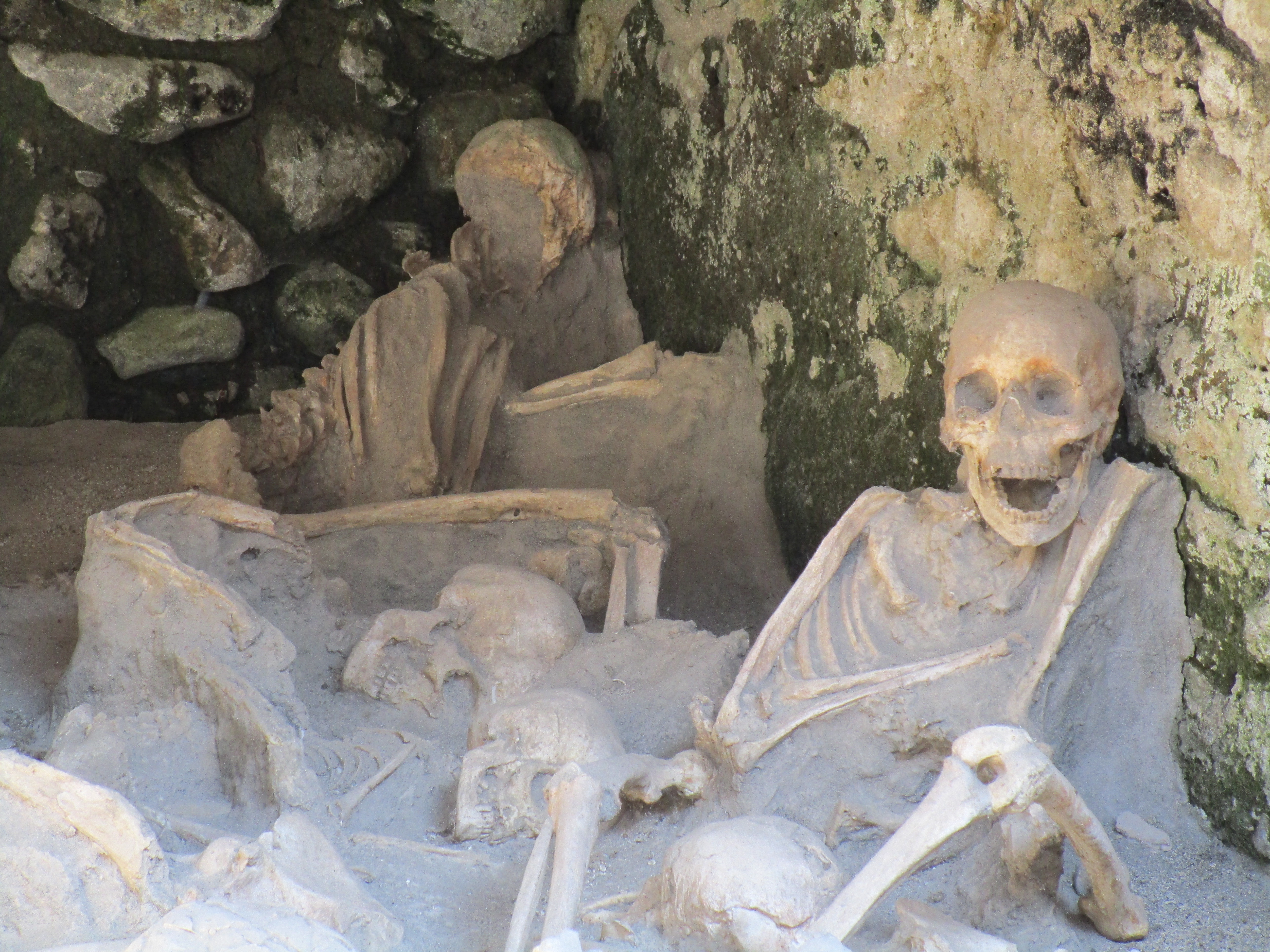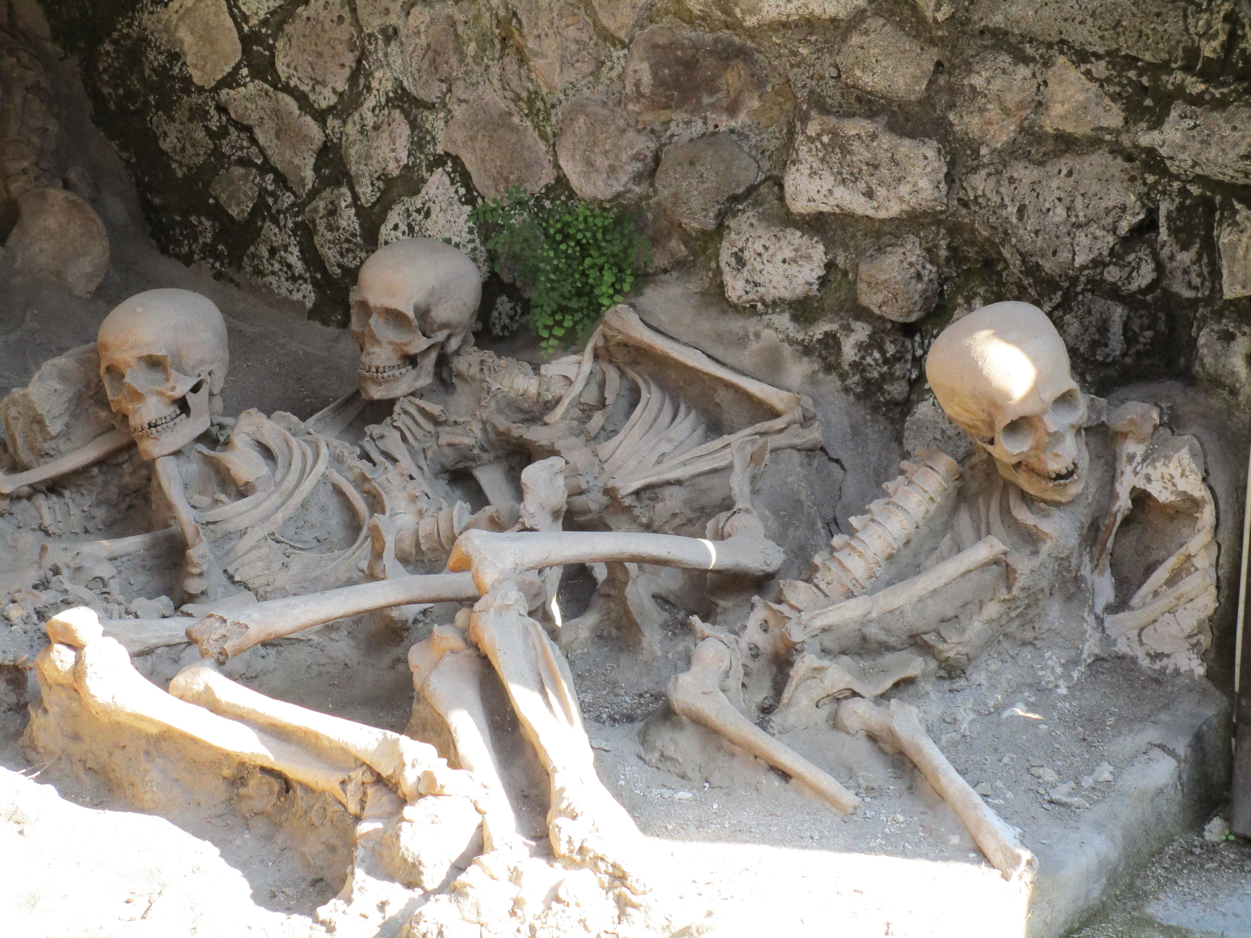 Herculaneum is located south of Vesuvius and was a port town of about 4-5,000 people. Because there were fairly regular earthquakes, those that occurred for 4 days prior to the eruption didn’t raise any concerns. As a result, many people stayed in their homes when the eruption began probably assuming that it would stop soon and life would return to normal. It didn’t.