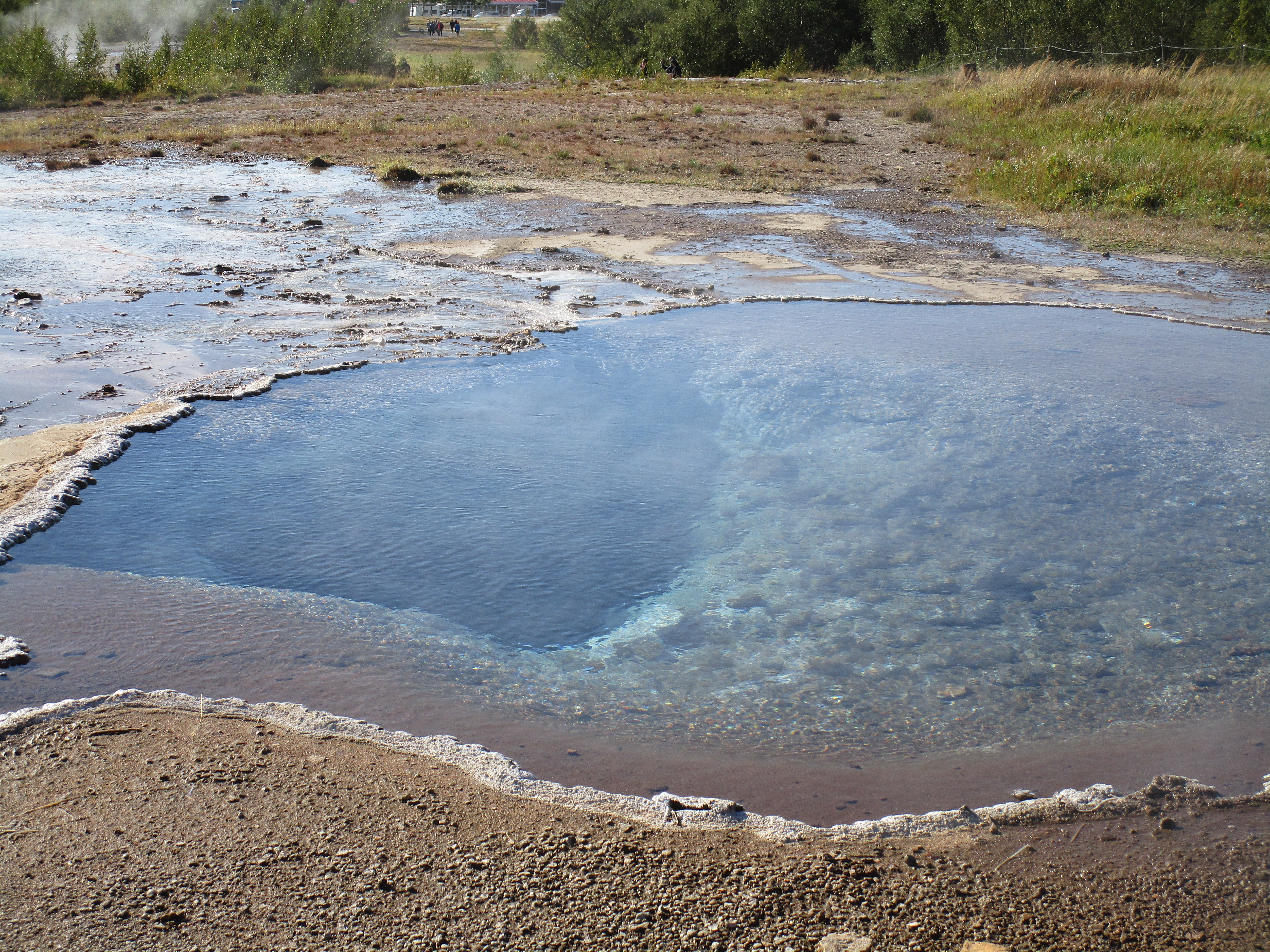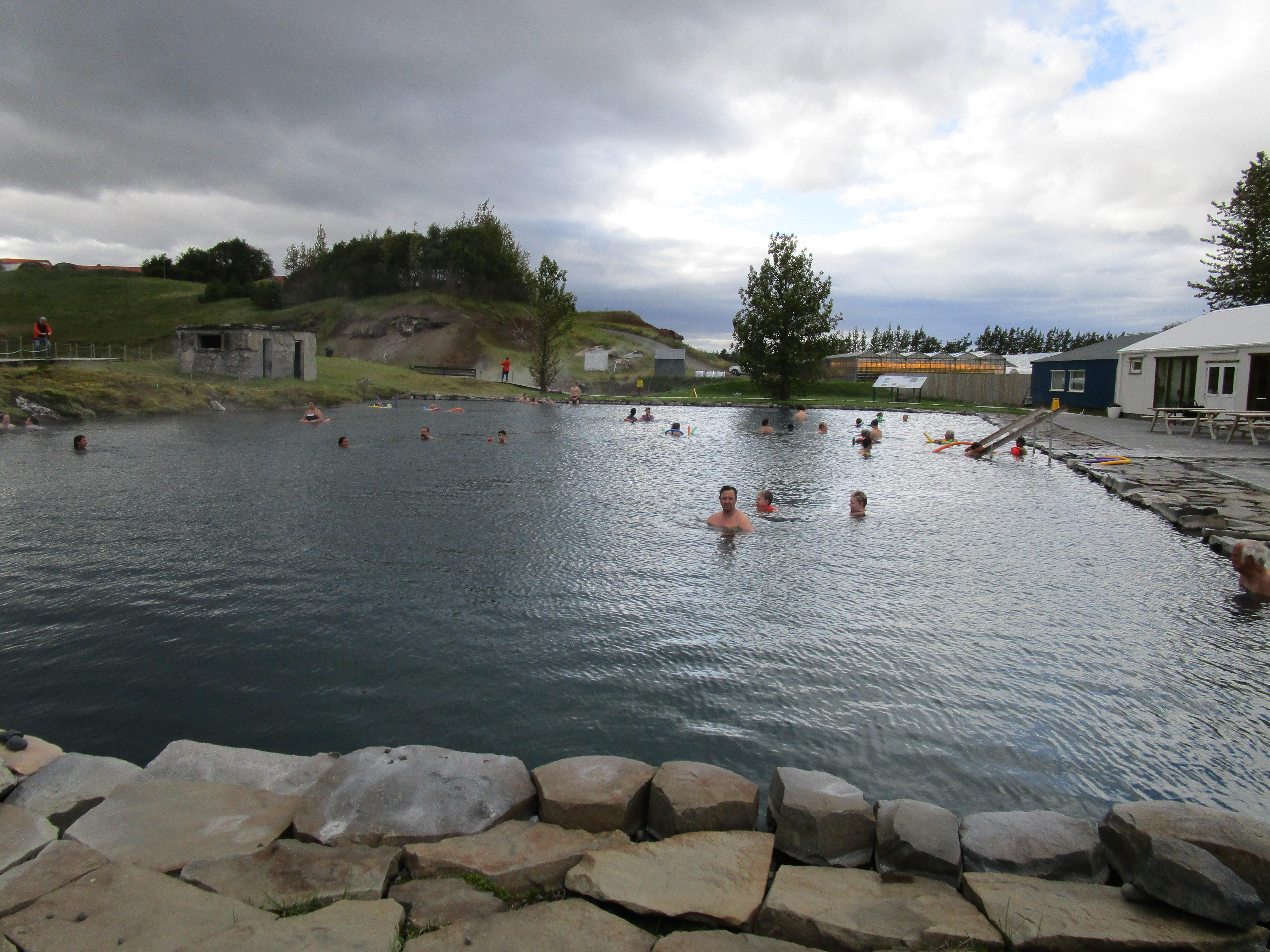 A little more driving and we come across a very special place. Only through many months of research, asking questions and corresponding with exiled Icelandic nobles did I hear about this place. Saying the name in public can actually get you arrested. It is one of Iceland’s best guarded secrets. As a matter of fact, that’s its name, the “Secret Lagoon”! The directions to this enchanted Shangri-La are sketchy but we managed to find the side road, put the Aygo-slow in Ninja mode and blew past the guards. Once inside the private compound, we found a place to hide the car and slipped inside to pay our “membership” fee, no questions asked. After a quick shower, open the door and walk out to the Garden of Eden! Never before had I imagined how wonderful a natural pool of thermal Sulfur water could feel, especially with 80 other people milling around. What I don’t understand is they made me take a “proper” shower but let an Indian family (not the Custer’s last stand type) wear their laundry into the pool, completely dressed! Go figure.
