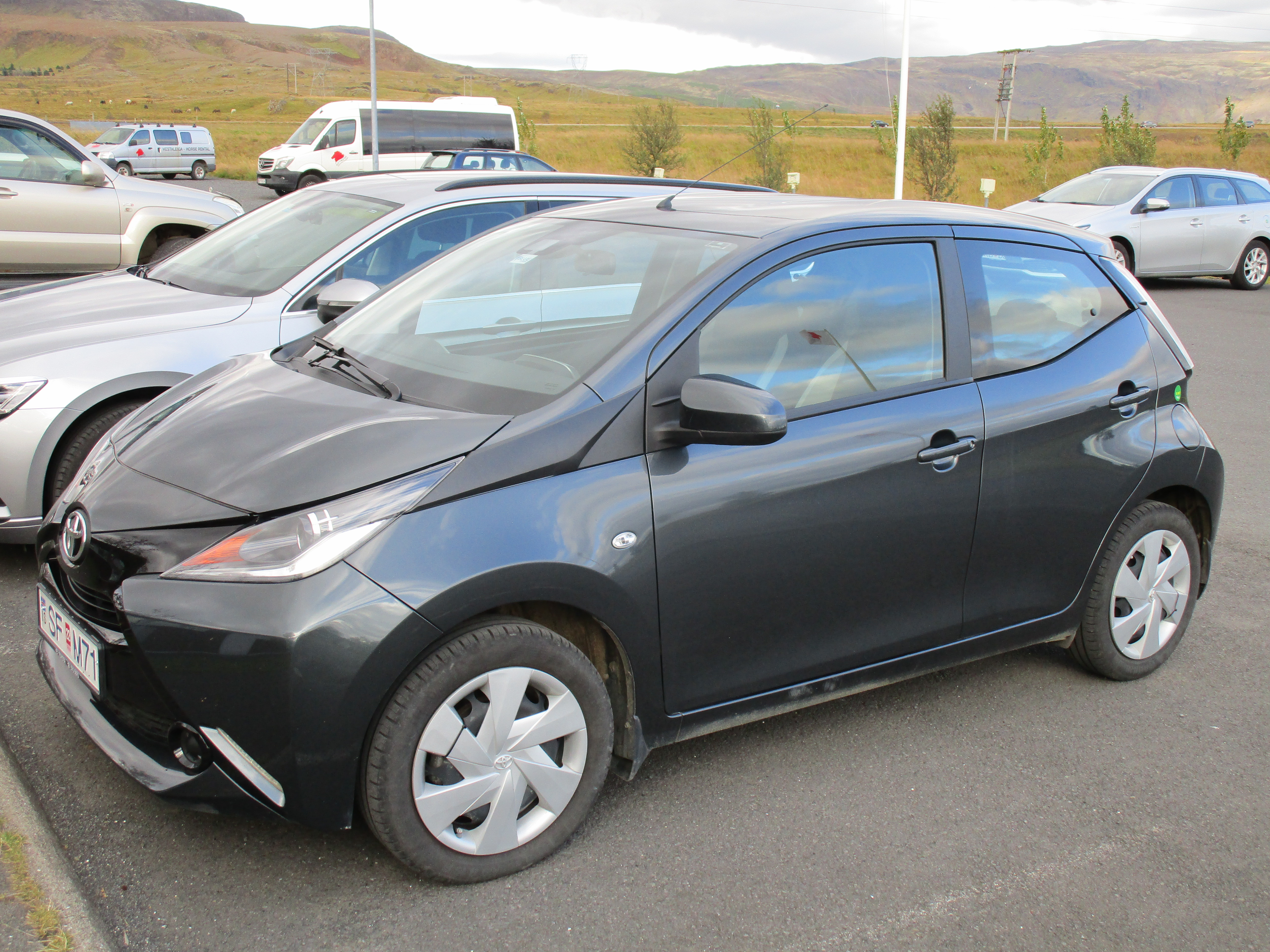 Icelandic roads are excellent, clean, clearly marked, and just enough asphalt so Aygo and the trucks can maneuver safely. The speed limit is 90kph or around 55mph so not slow but not overly fast either. Doesn’t matter, top speed in Aygo-slow is about 15mph if we keep the windows closed and my foot in it.