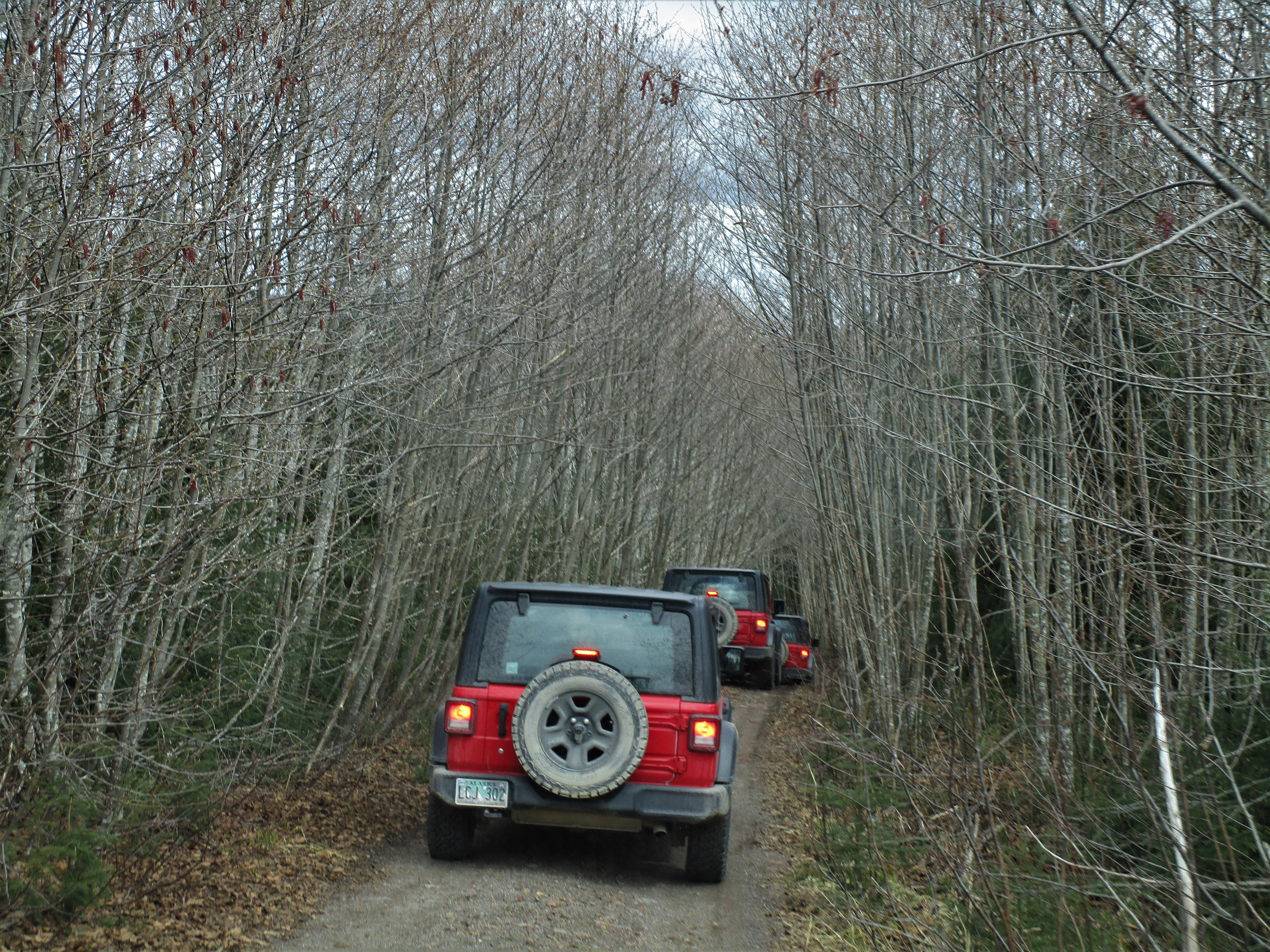 The trip is on old logging roads that were used to haul out every stick of lumber as far as you can see. Clear cutting was the norm up here and there isn’t a single indigenous tree left. They did replant after raping the area but these are fast growing pines that just can’t replace the original hardwoods that once stood here. Still, the mountains and ocean create a beautiful vista for our Jeepsters.