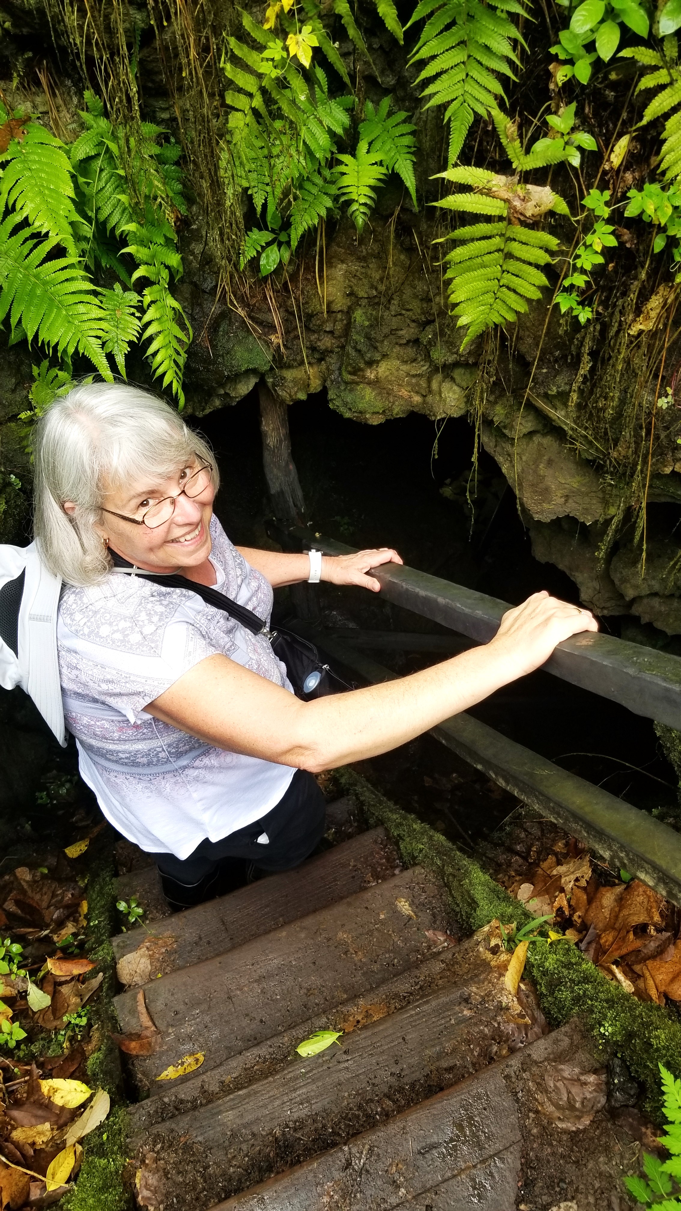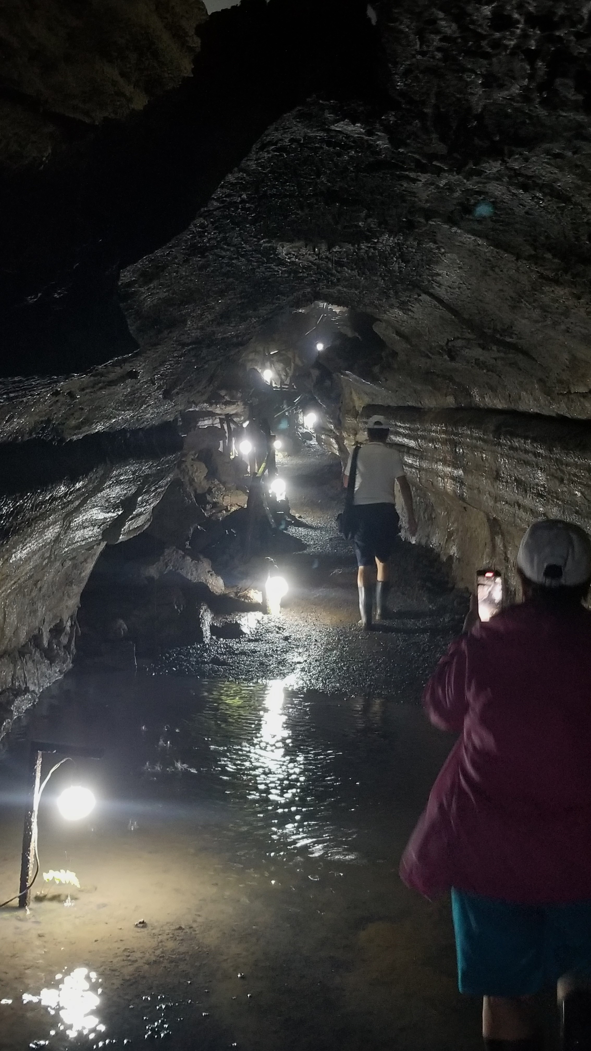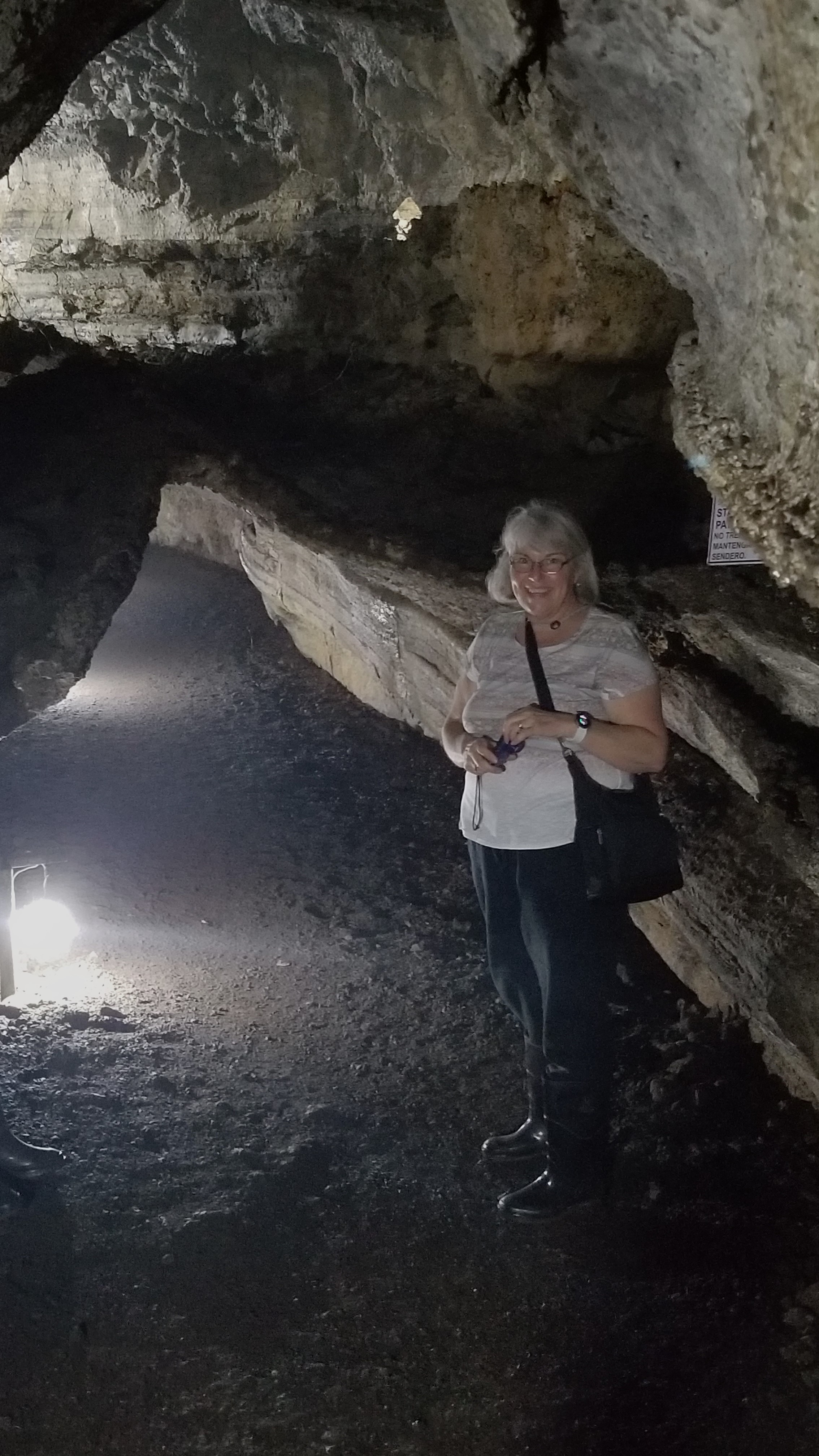 Next on the agenda was exploring lava tubes. The lava tubes on this property are remnants from volcanic activity over a million years ago. Pretty cool walking inside one of these tubes knowing that at one time, there was molten rock flowing through. The interior of the tube is porous, rough volcanic rock that allows a bit of water to drip inside. The path was well lit and not a lot of puddles but enough that we were glad to have waterproof boots on.