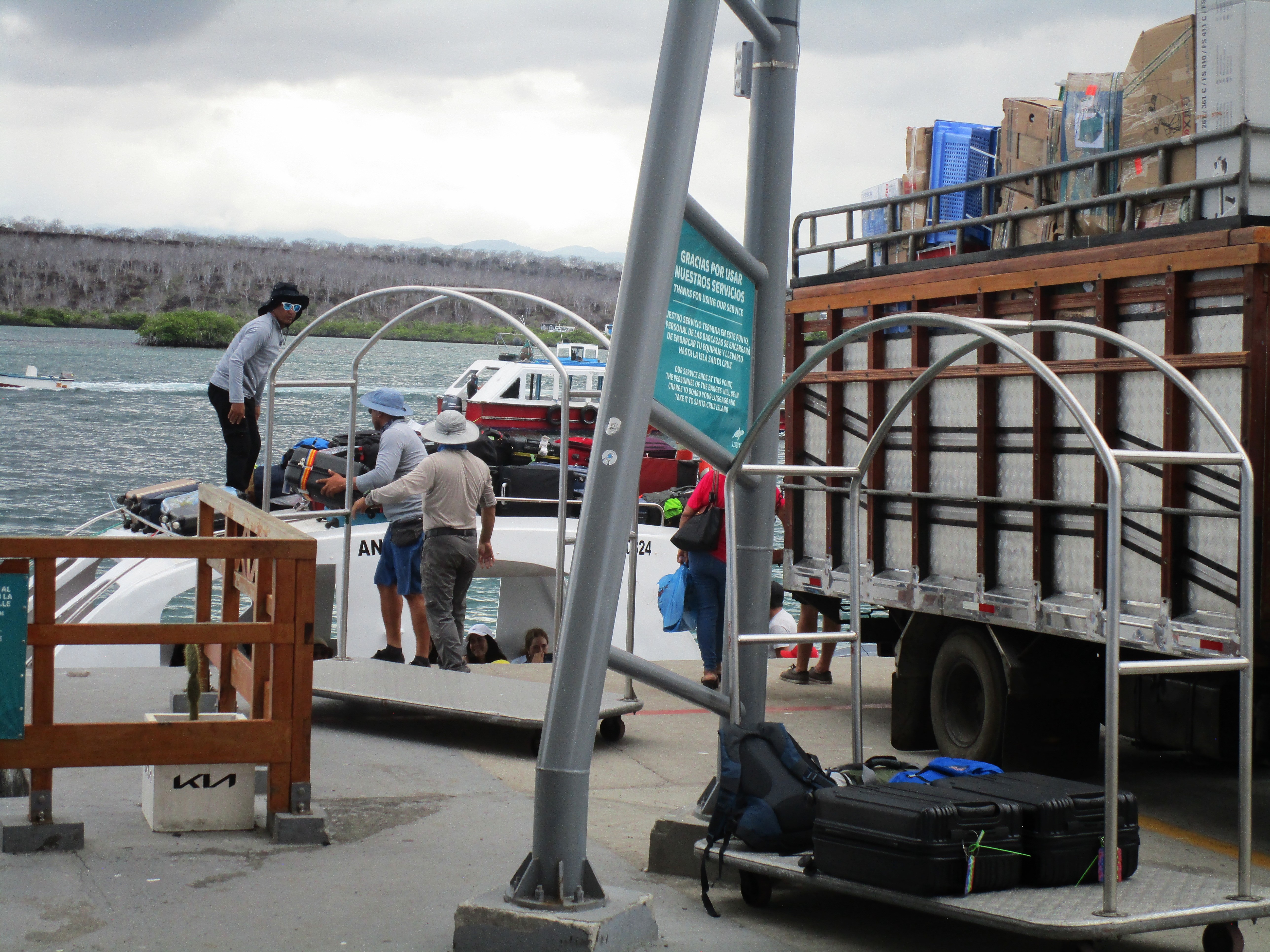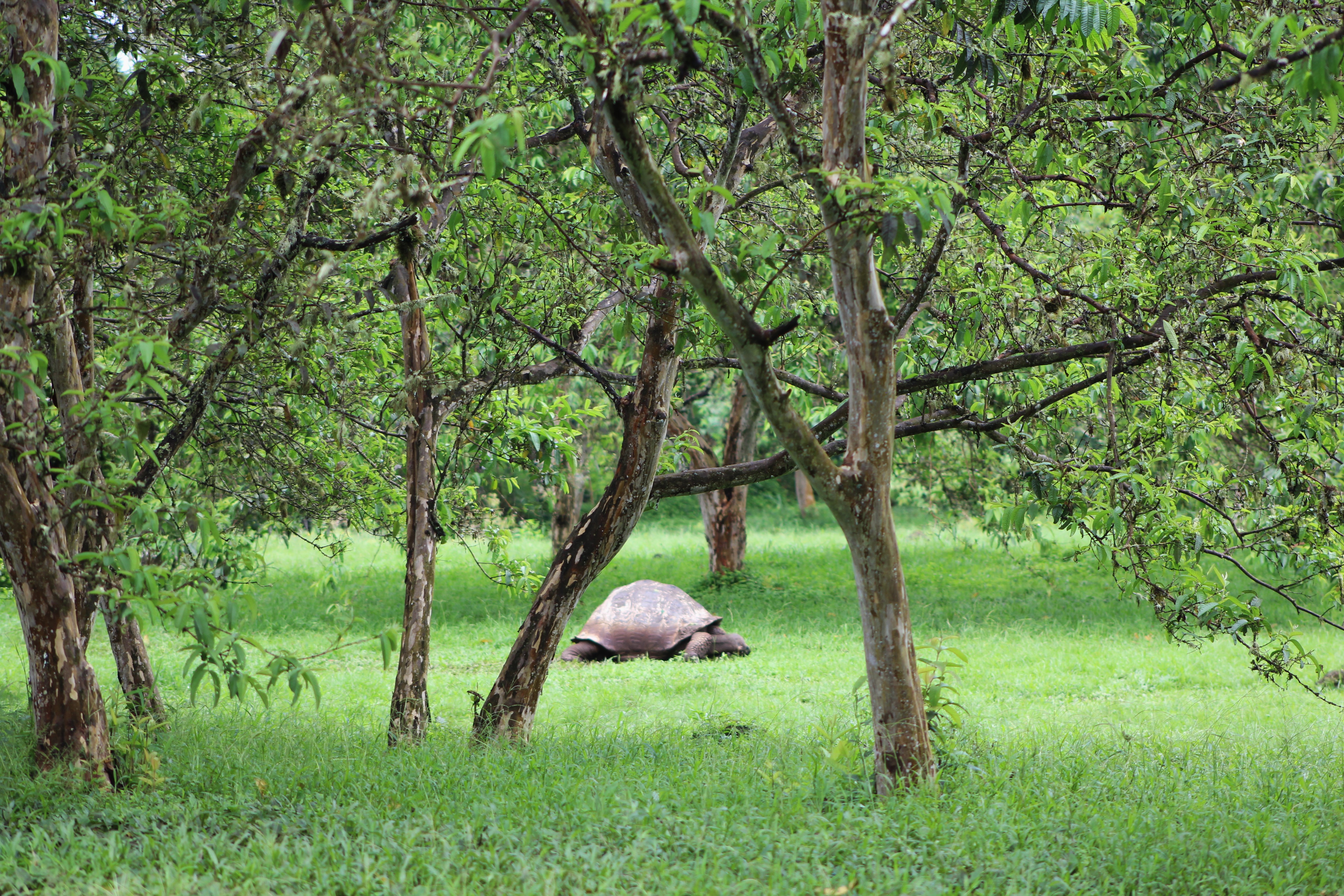 We landed on Baltra Island and took a short bus ride to the ferry, then an even shorter ferry ride to cross the channel between Baltra and Santa Cruz island, then a taxi to our hotel (about 40 minutes). The environment is heavy forest with some fields of very tall grass. We’re in the “wet” season so everything is very green and lush.