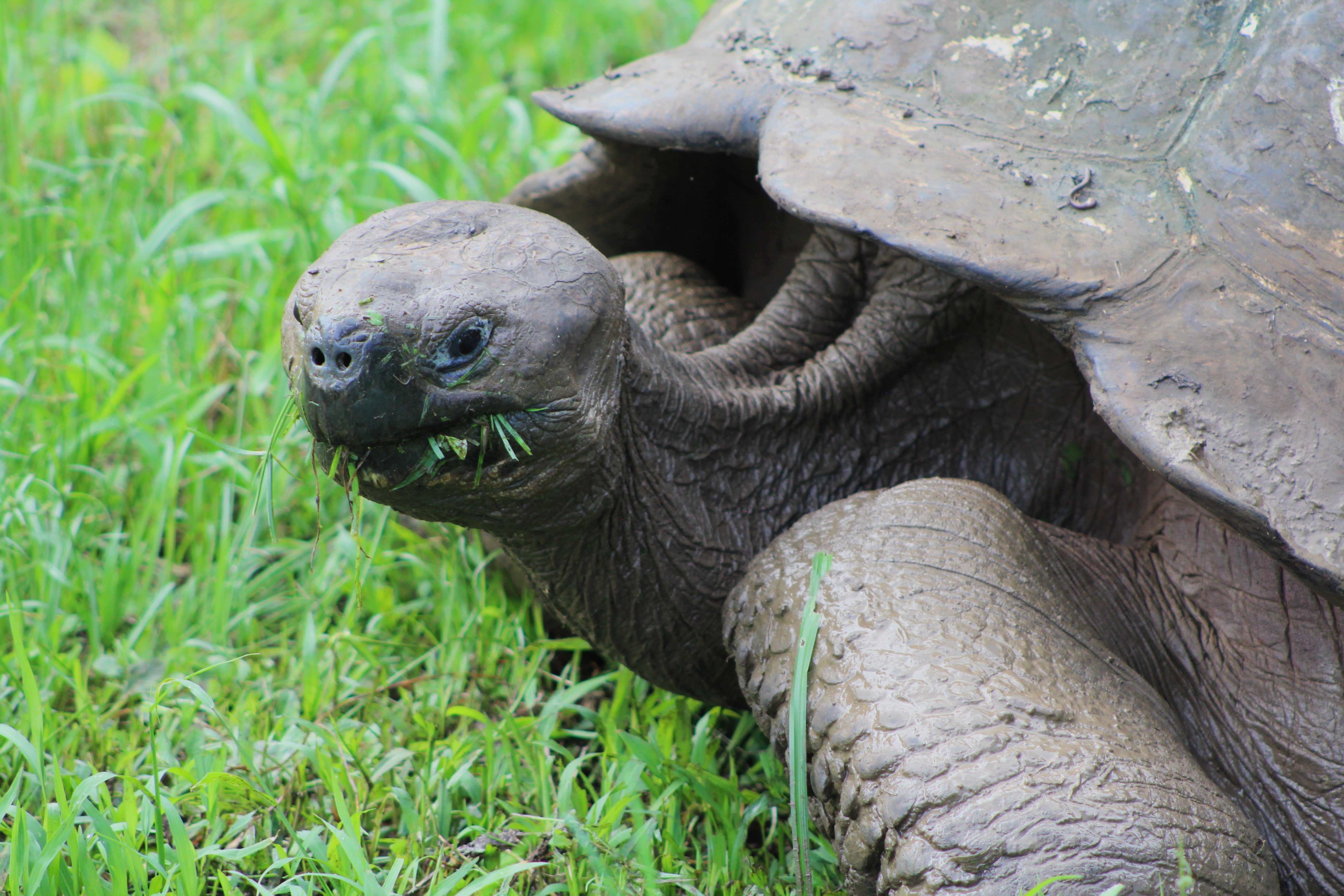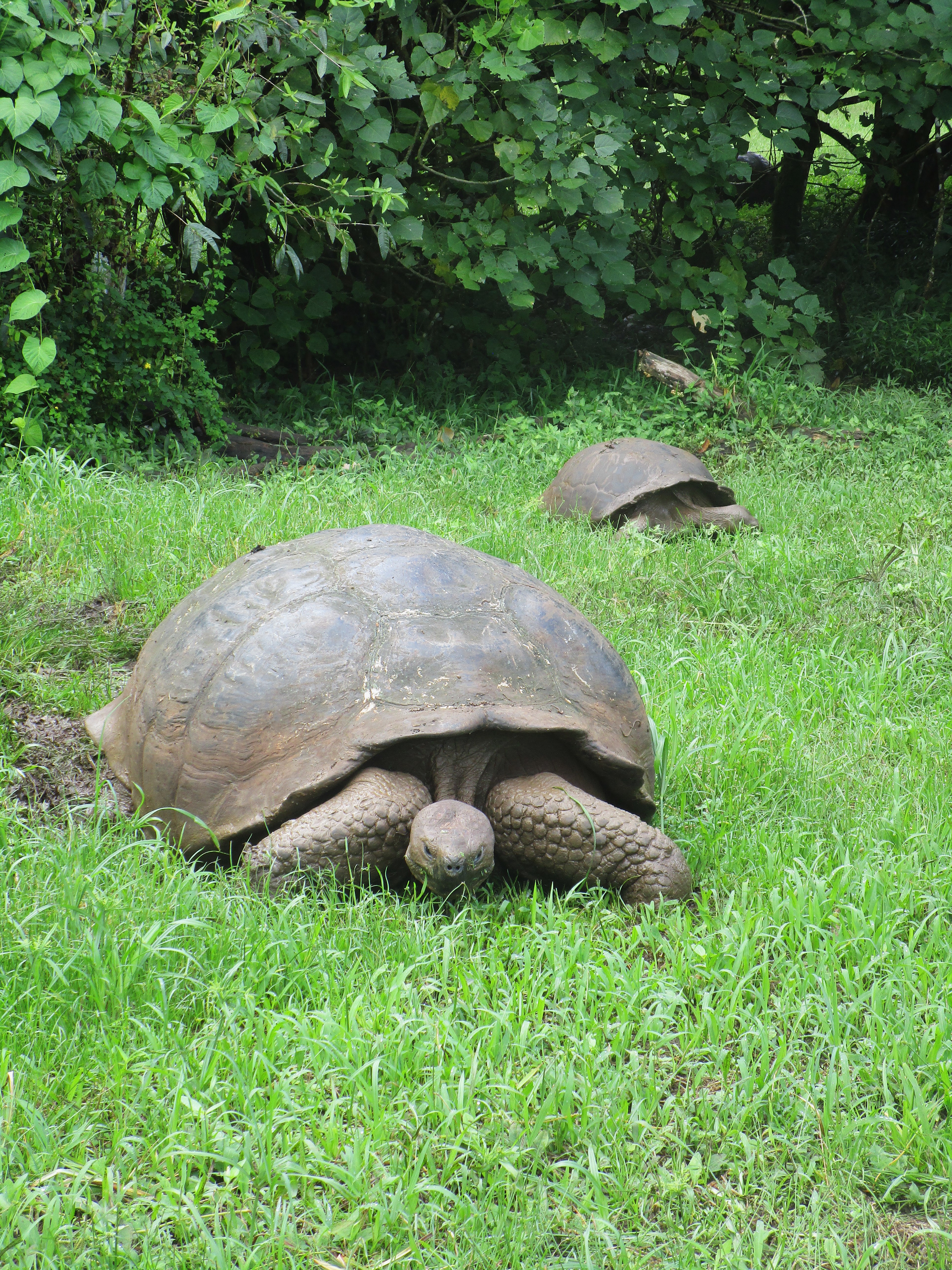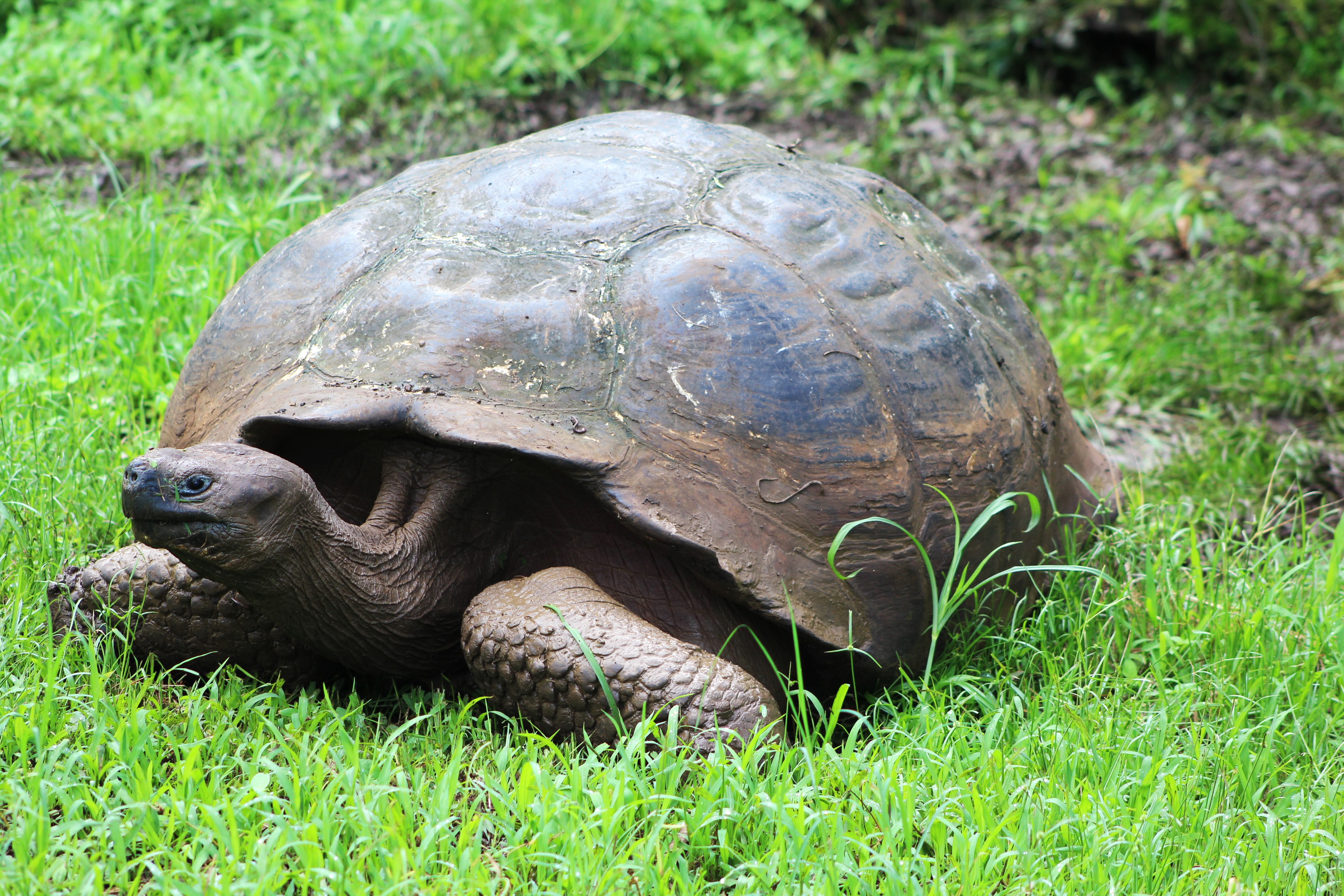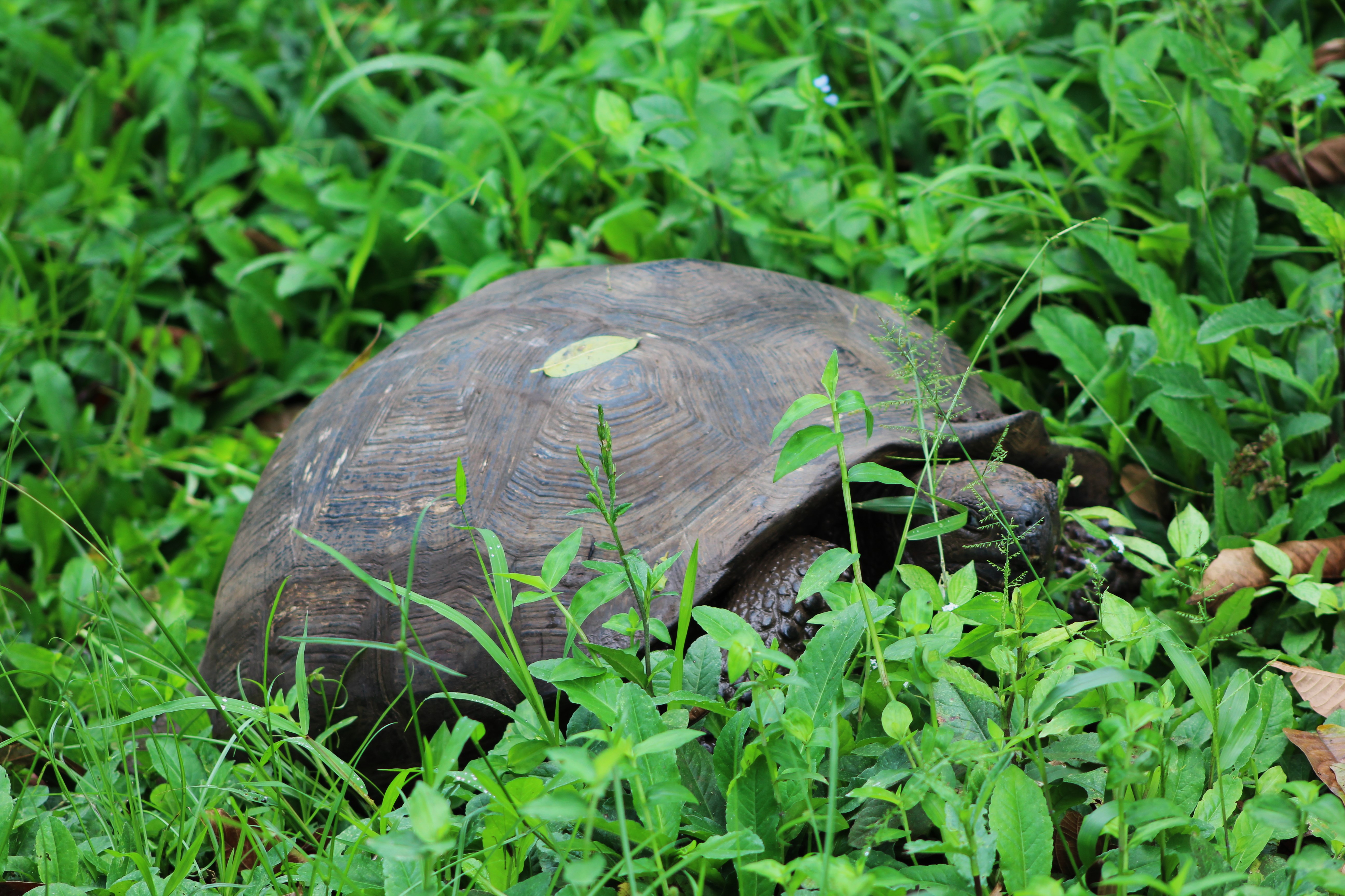 IMG_0432 IMG_3774 IMG_3779 On average giant land tortoise eat around 15# of grass and flowers every day. They generally walk a few steps, lay down and eat all the grass that’s within reach with their head. Then they get up, walk a bit, lay down and repeat the process. That’s about the extent of their physical activity until mating season. We won’t get into those activities here.