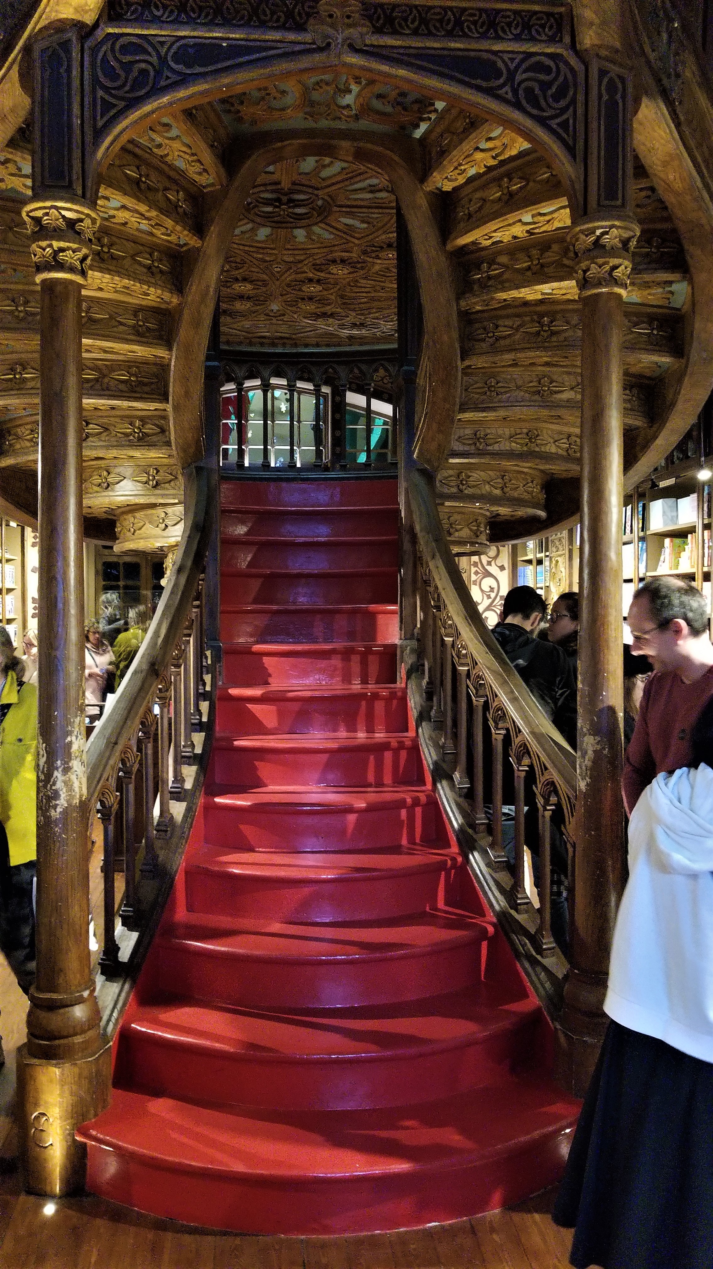 And why would the media and others be interested in this bookstore? Just take a look. The exterior is Neo-Gothic and the interior is stunning. Designed by Xavier Esteves the detailed wood carvings from floor to ceiling, and the elaborate staircase are certainly very impressive, earning this store the title of, “third most beautiful bookstore in the world.”