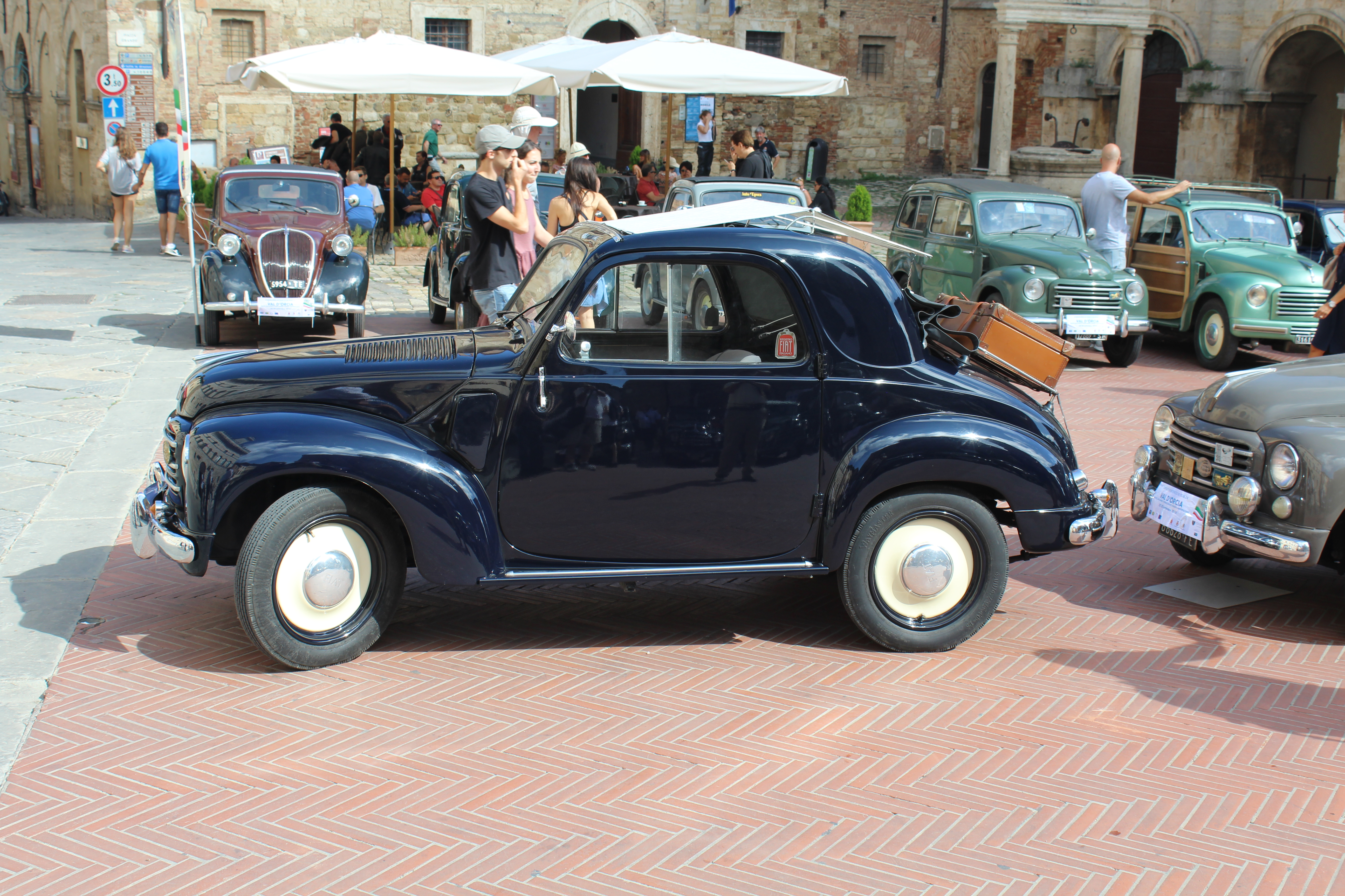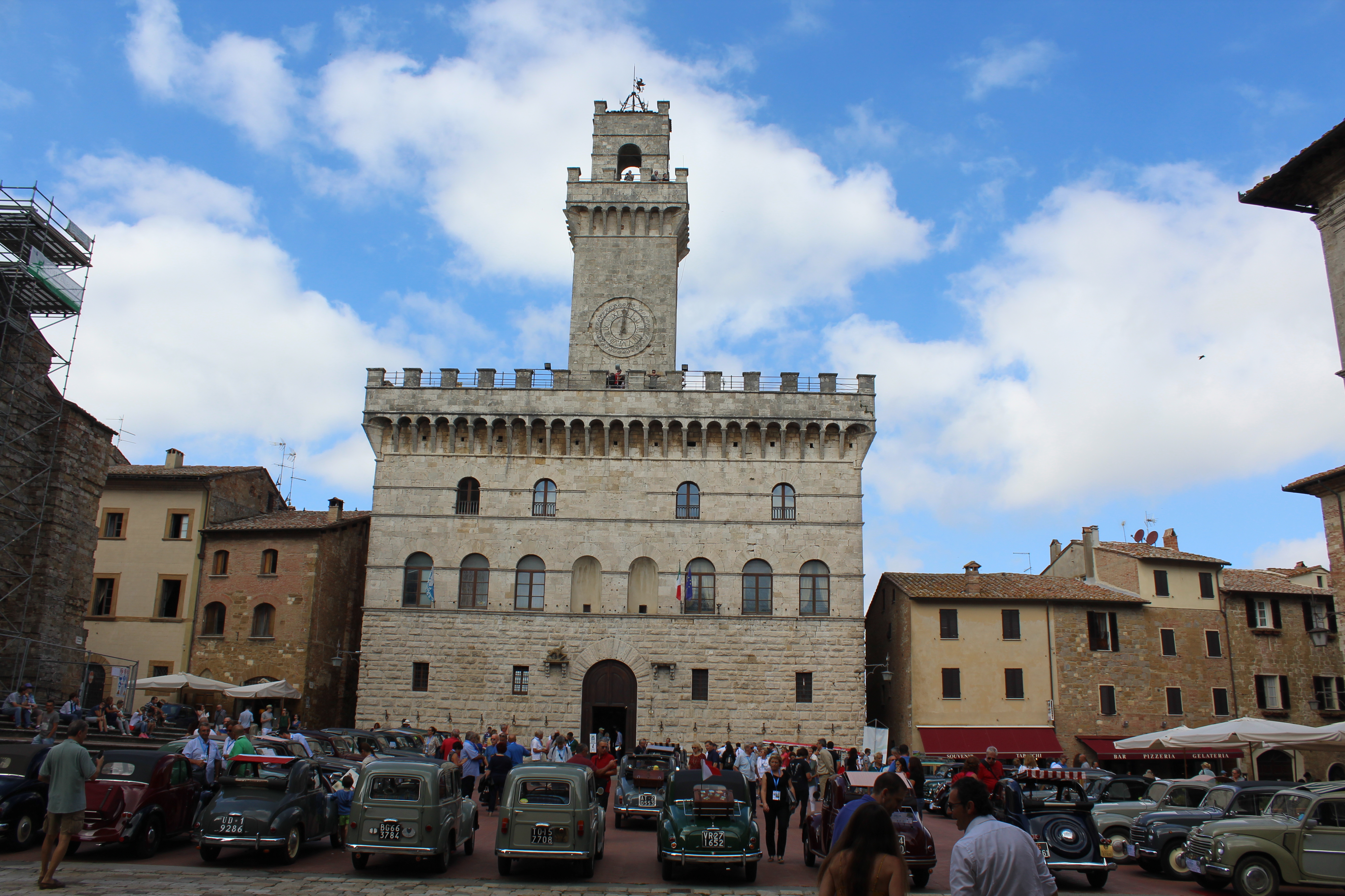 Driving on, we headed for Montepulciano. Yep, another medieval Renaissance town with about 14,000 inhabitants, a few churches and a couple of piazzas. As luck would have it, today is the antique Fiat Car Club show, we fit right in with our 500! All along the Palazzo Comunale there are oil-dripping Fiats everywhere. Our favorite was the early version of the Fiat 500L, complete with a suitcase strapped to the trunk. Just goes to show that good craftsmanship never goes out of style. Love the slogan, “If you fit, it’s not a Fiat!”