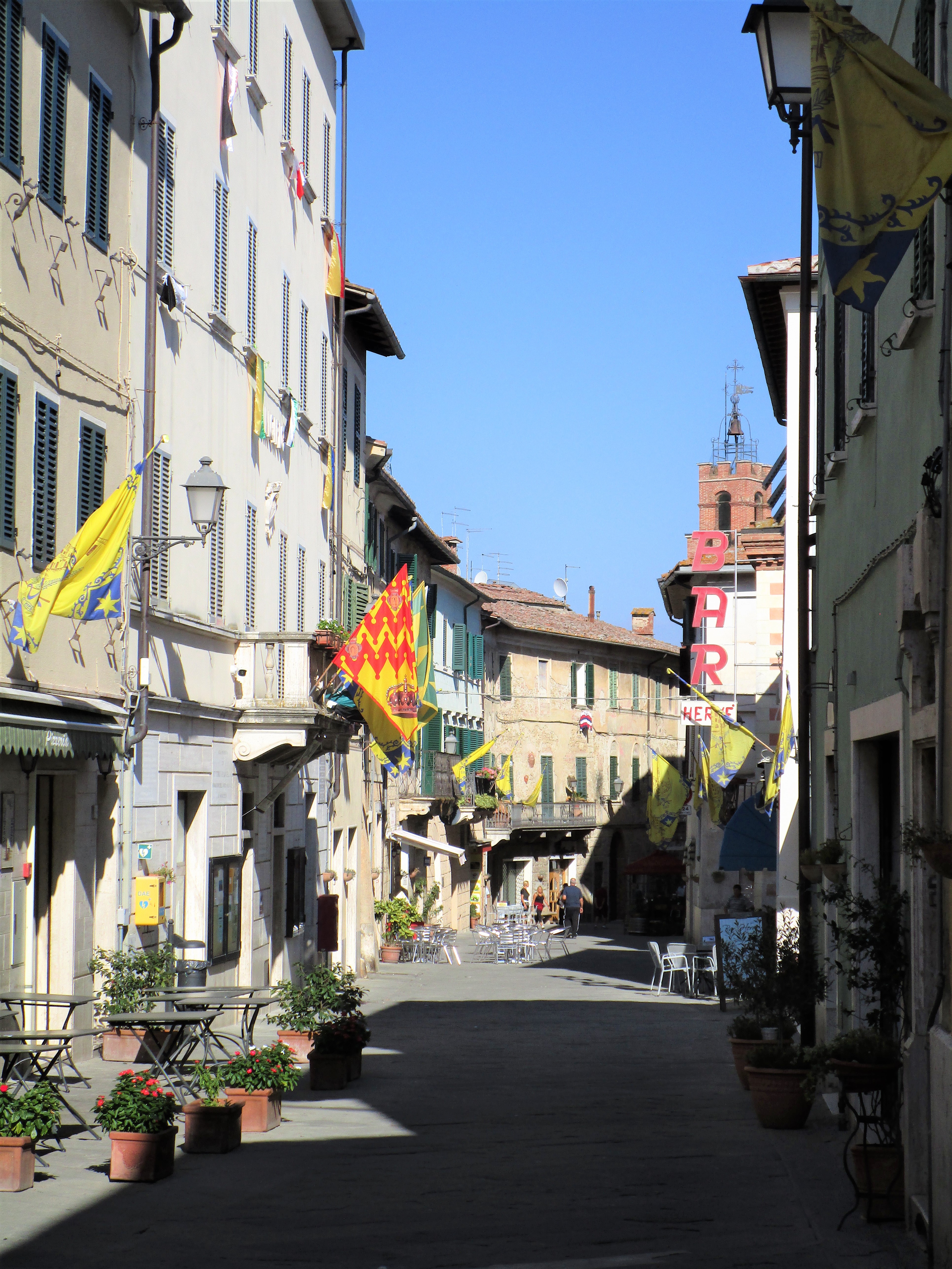 Yesterday was a touring day through the highlands of Tuscany. No real destination, just a few small towns and of course, cathedrals and castles. First town was Radda in Chianti, another beautiful medieval town, that at the time of our arrival, was just waking up. Couple bistros open with a few men enjoying their morning with coffee and conversation. Familiar scene here in these small towns, groups of men sitting at a table chatting, women at another table doing the same. Age doesn’t seem to be a factor, good mix of young and old just starting their day slowly.
