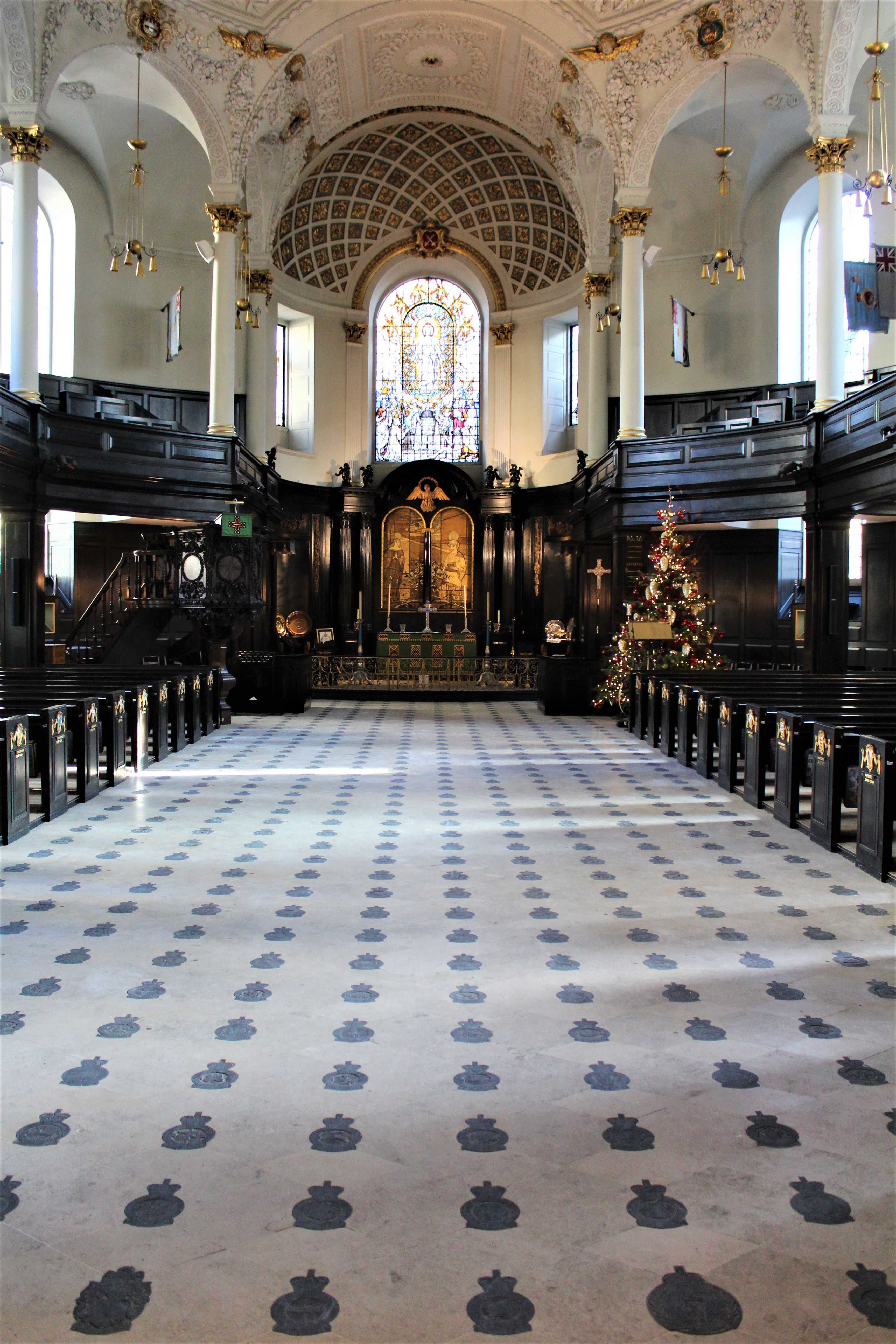 IMG_0793 (2)Inside, inset into the floor, are over 800 badges for squadrons, wings, groups, stations, etc. as a memorial to those airmen who lost their lives in WW1 & WW2, including some 16,000 US airmen stationed in England.