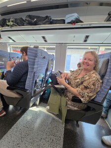 Betsy enjoying the bullet train