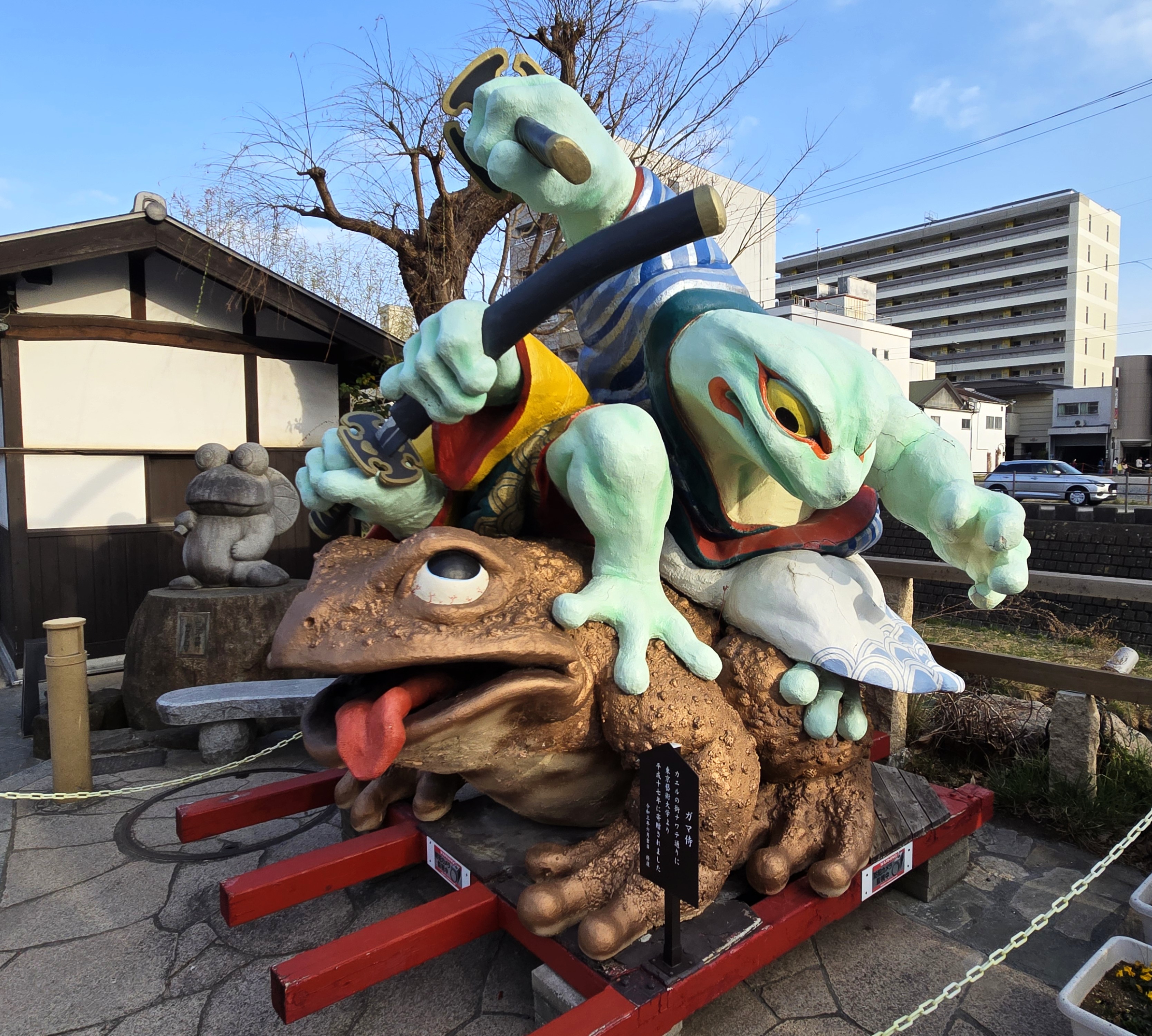 Anyway, after watching our guide doing a bit of studying for our next adventure, we decided to join her. Besides, it was dinner time and we were all going to a huge food court where you can try loads of different dishes. Can’t wait. But first, Raya had to show us this special statue. Frogs. Yep, a frog statue. Seems there were these frogs of a special type that used to live here. Then came the flood. No more frogs. So the town capitalized on the fact these frogs are gone and turned it into a tourist attraction. Genius! Nothing like good capitalism to bring the frogs back.