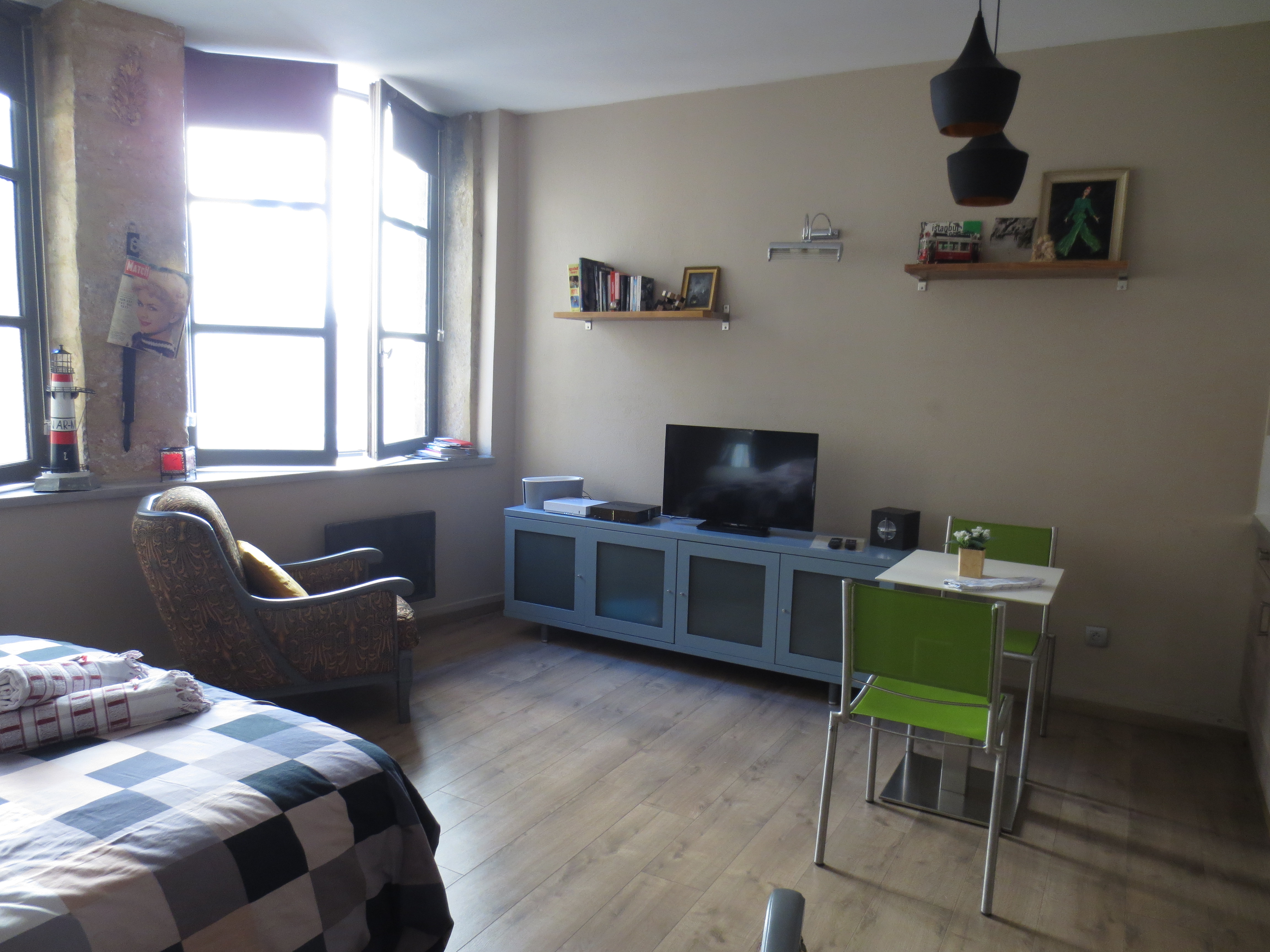 Our quaint flat is located in a 17th century building, on the 3rd floor, with a small courtyard outside the large windows. There’s a playground just around the corner that has 1 slide, that’s it, 1 slide, yet kids love it. From 5 to about 7;30pm in the evening, we can hear the children having the time of their life playing. Remember when it was simple??? When you didn’t need a lot to be happy??? Yeah, me neither.