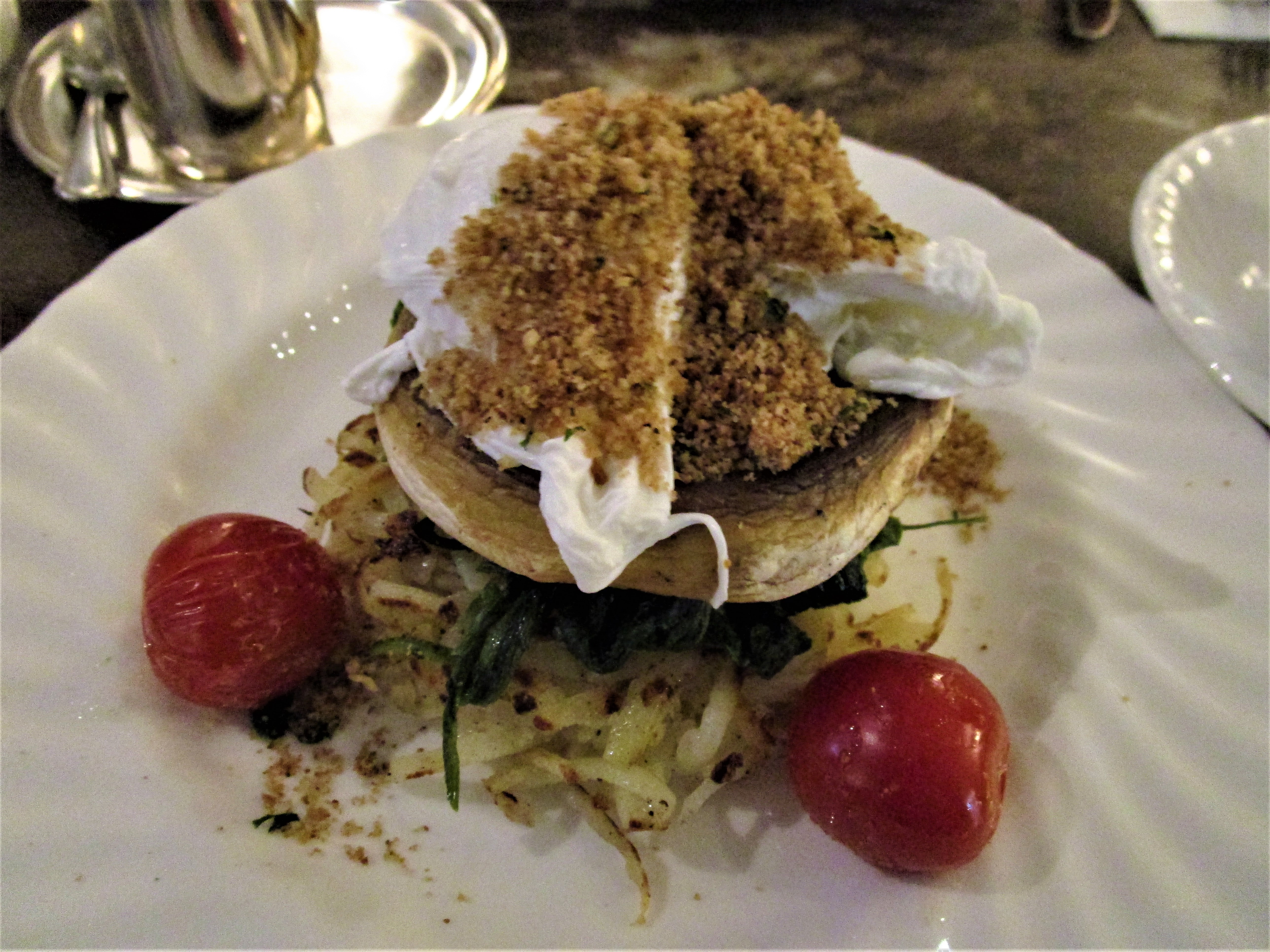 Poached eggs with mushroom and hash browns