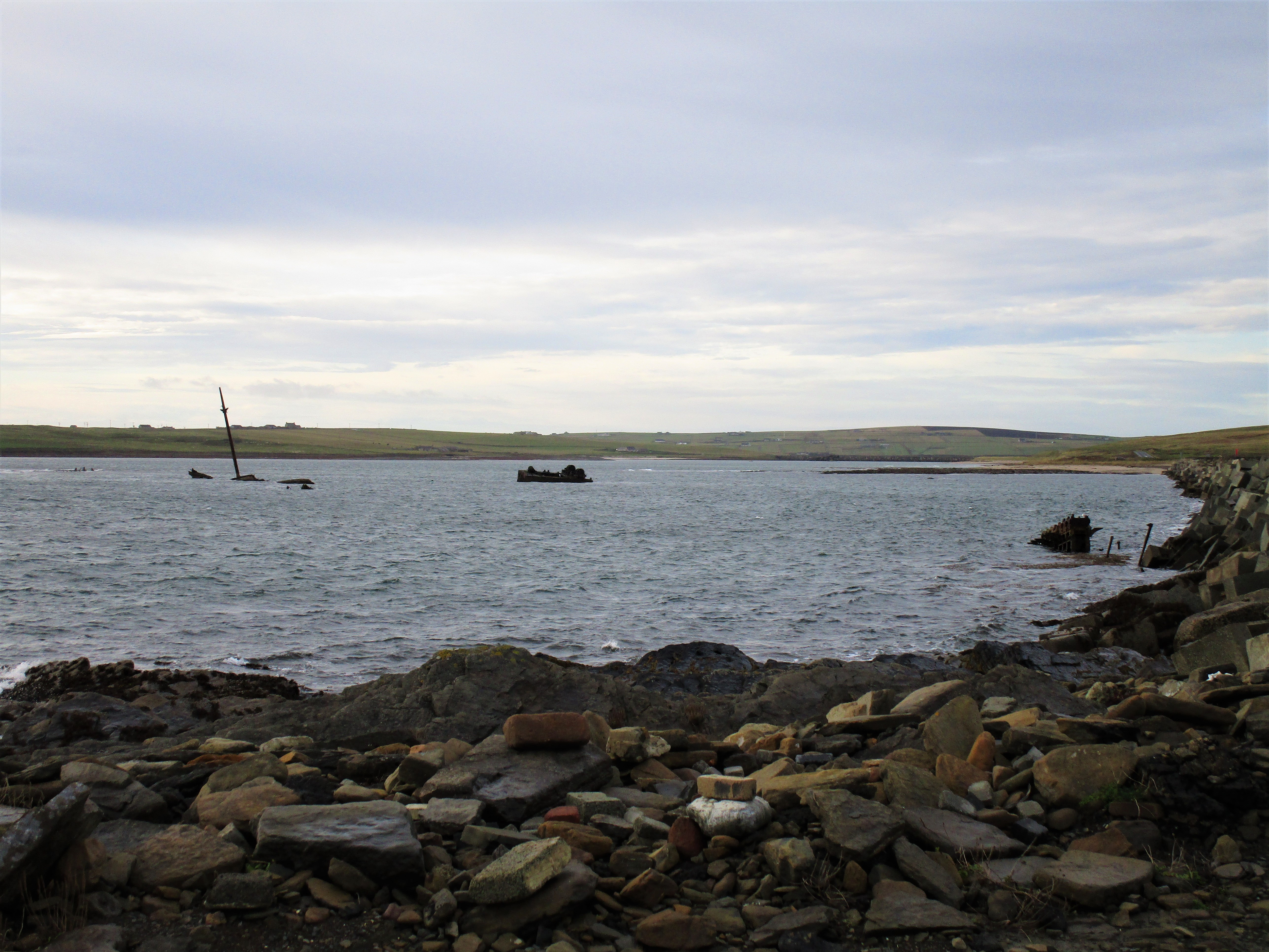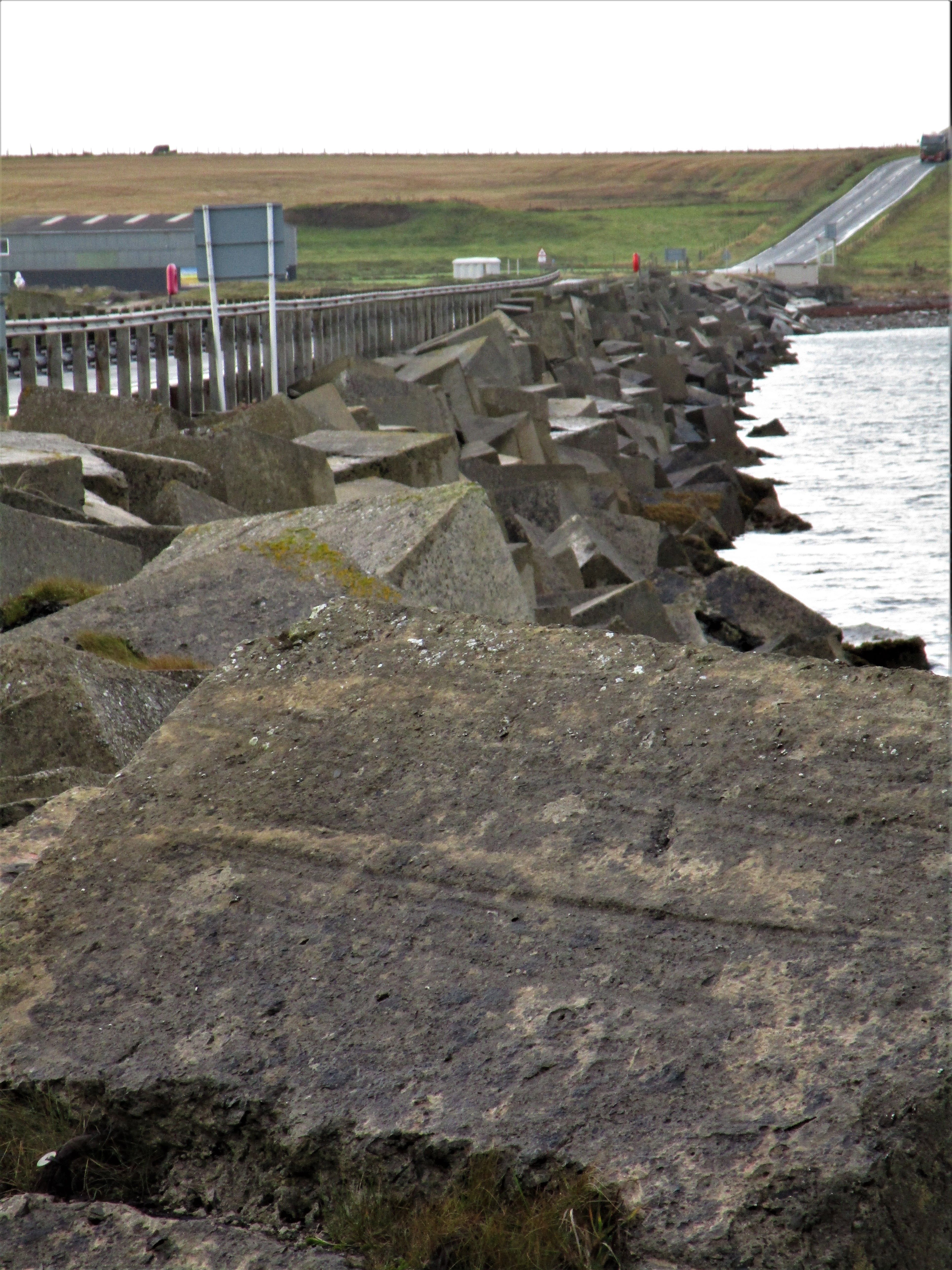 Fueled up so off to St. Margaret’s Hope and the Tomb of Eagles. Beautiful day for a drive, clear skies, warm temps around 550. St. Margaret’s Hope is a small town of about 500 people that live on an island connected to the Mainland via the Churchill Barriers. The Churchill Barriers were created as a result of the sinking of the ship, HMS Royal Oak, while moored in Scapa Flow. On October 14, 1939, the German U-boat, U-47, navigated her way into the Flow by dodging sunken ships blocking the channel, and set off a volley of 7 torpedoes that hit and sunk the Royal. U-47 then turned and proceeded back out to sea without being caught. 835 British seamen lost their lives in the sinking.