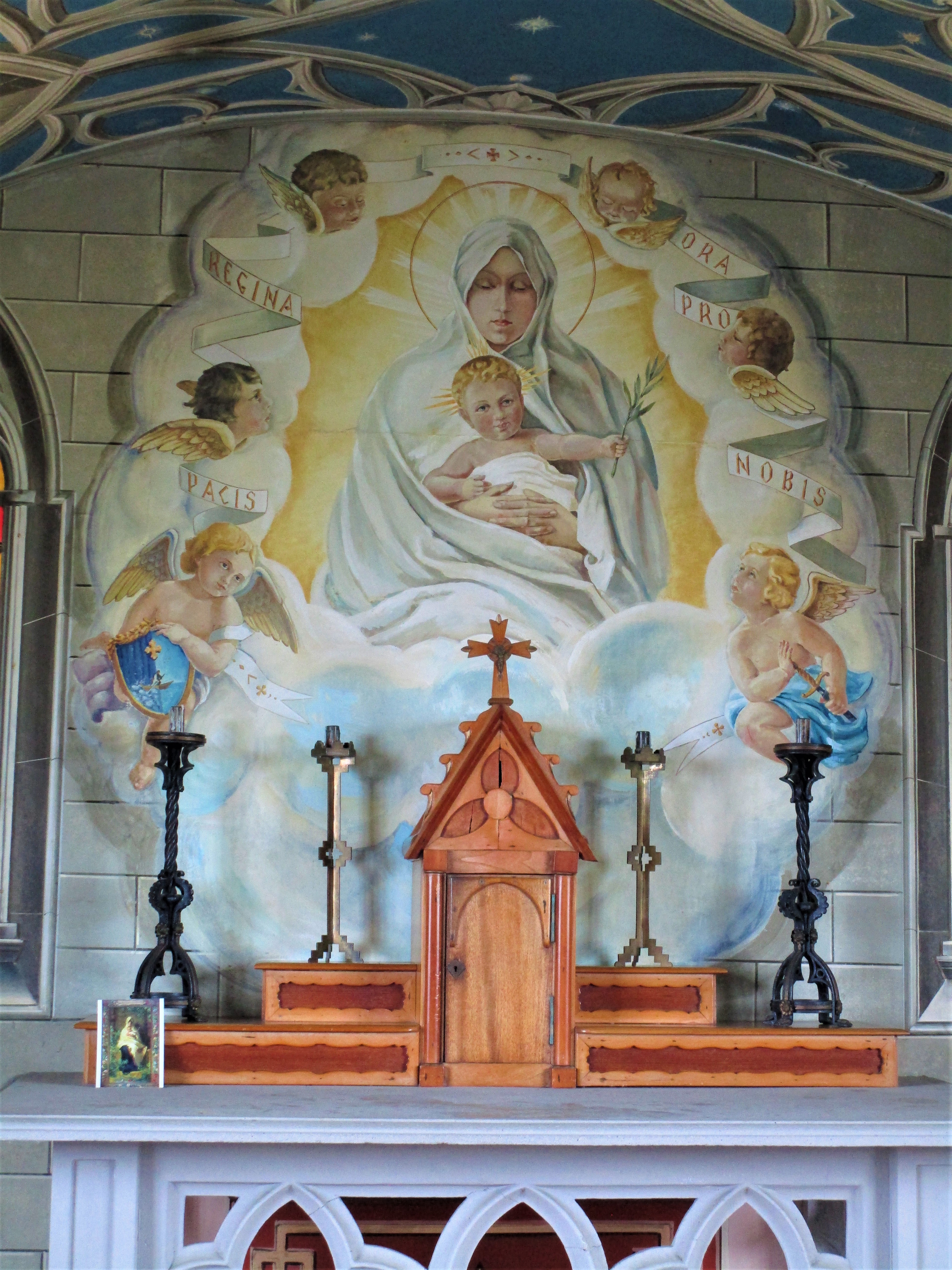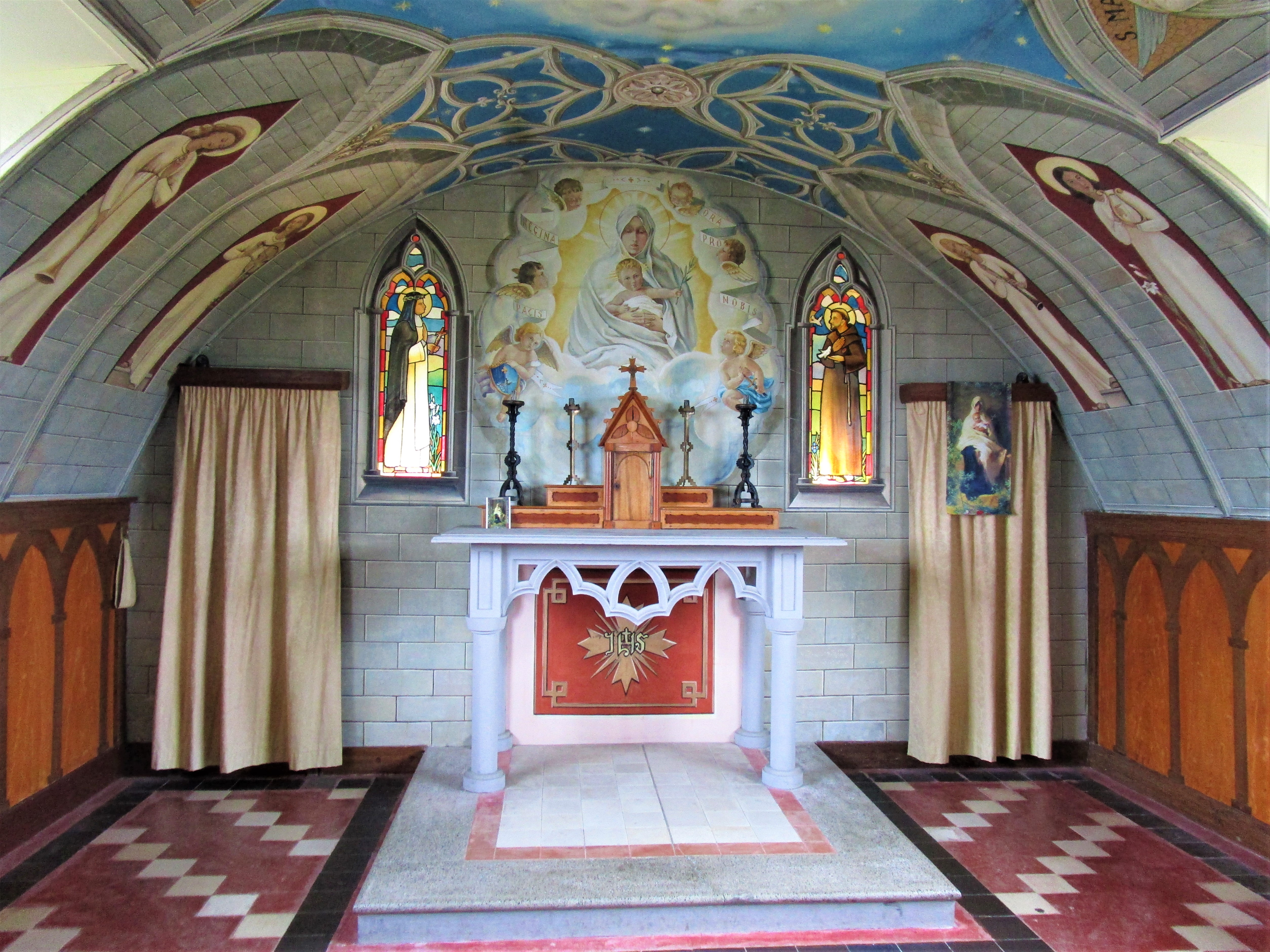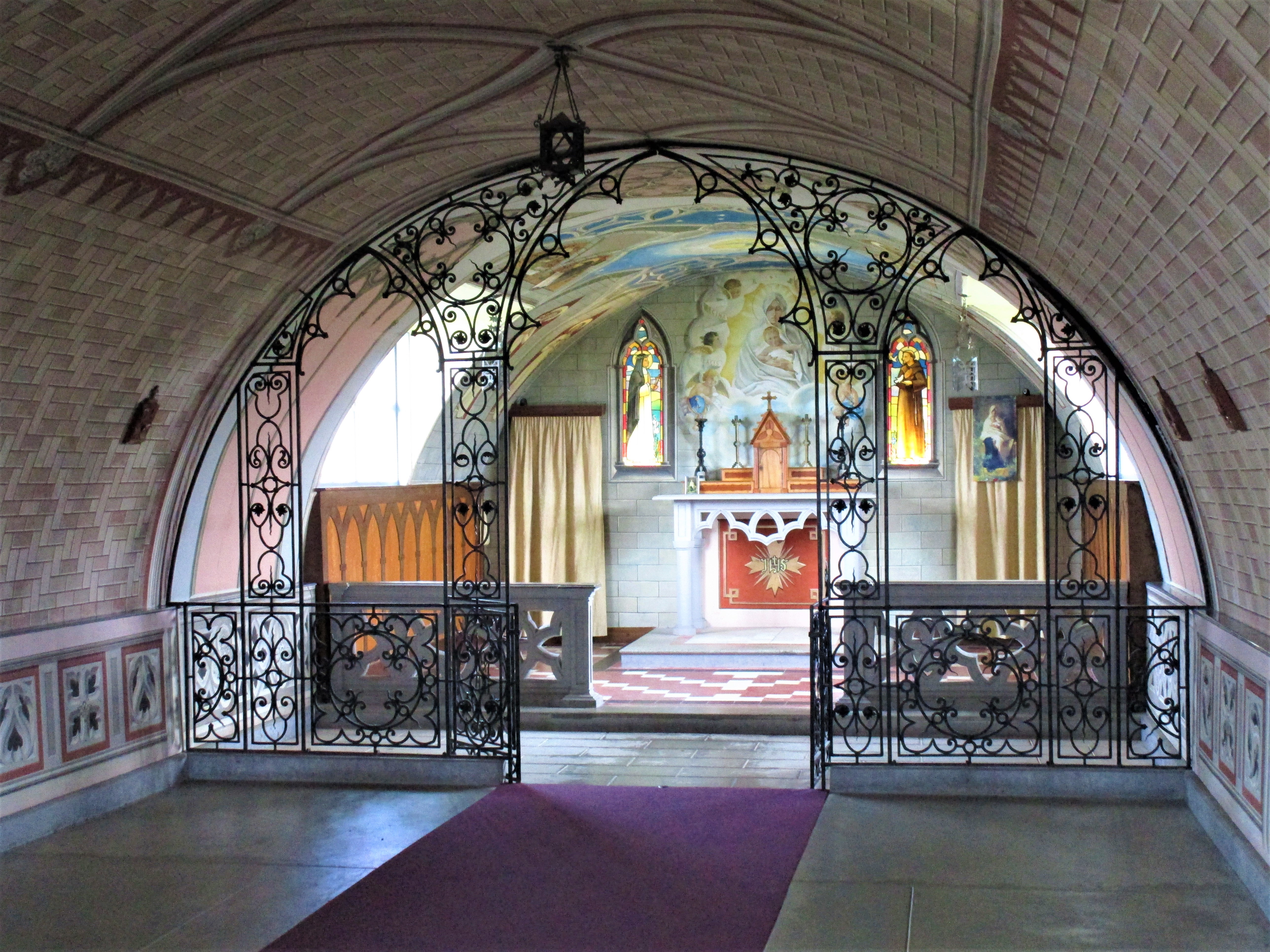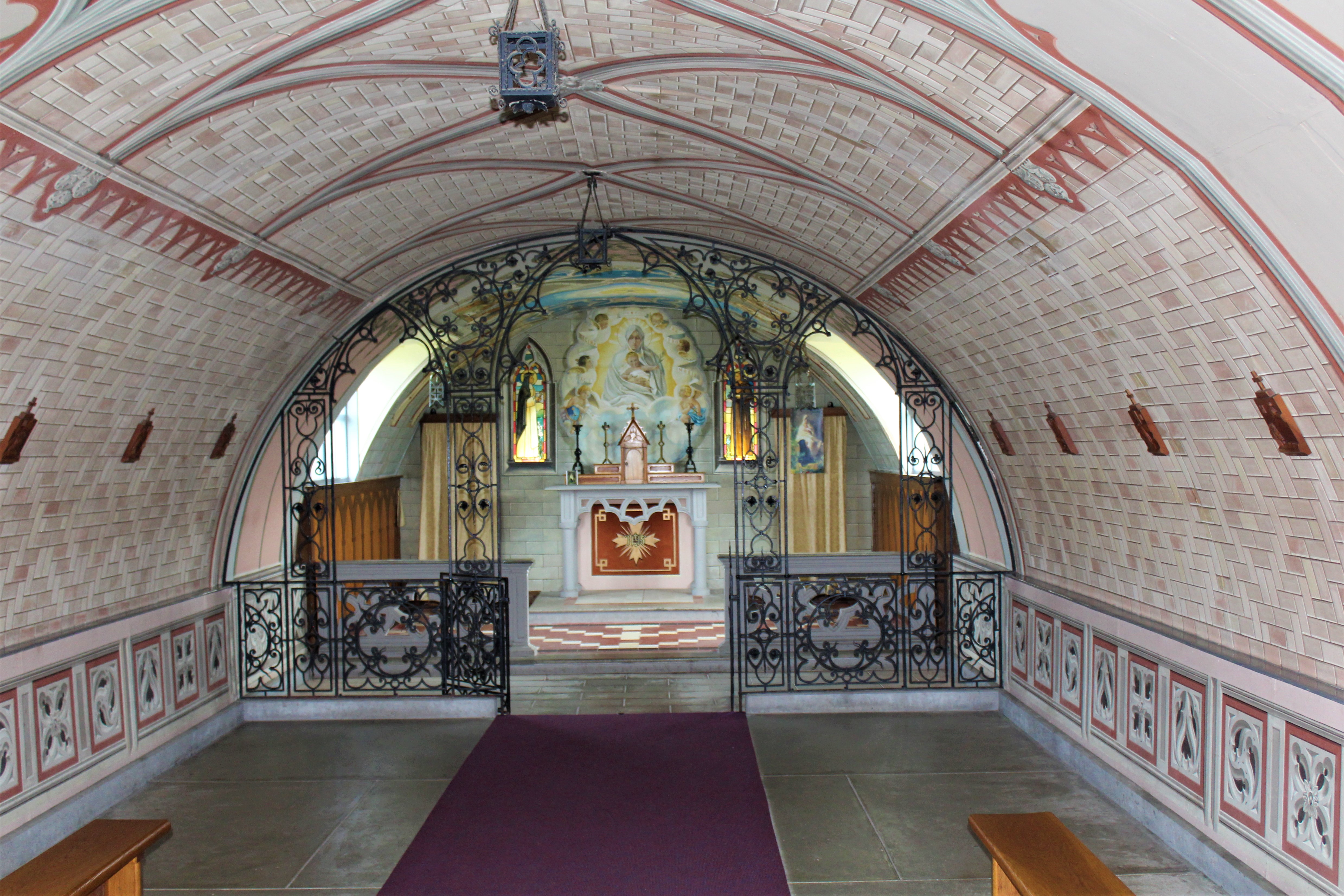 Just a short drive back towards Mainland is the Italian Chapel. This small church was built by the Italian prisoners at the site of their concentration camp in the 1940’s. The chapel was built using two Nissen huts with a more conventional church-style façade. Artist Domenico Chiocchetti, blacksmith Guiseppe Palumbi and Domenico Buttapasta, a cement worker, along with many others began the work of completing the interior of the chapel. Chiocchetti used a prayer card his mother had given him as the template for the altar. The railings, font and holy water stoup were all made from scrap blockade materials. The walls were lined with plasterboard and painted in a trompe l’oeil (3-D technique) to give the appearance of brick work, stone and ribbed ceilings. The light fixtures were made from scrap meat tins. Once you see it, it’s pretty amazing!