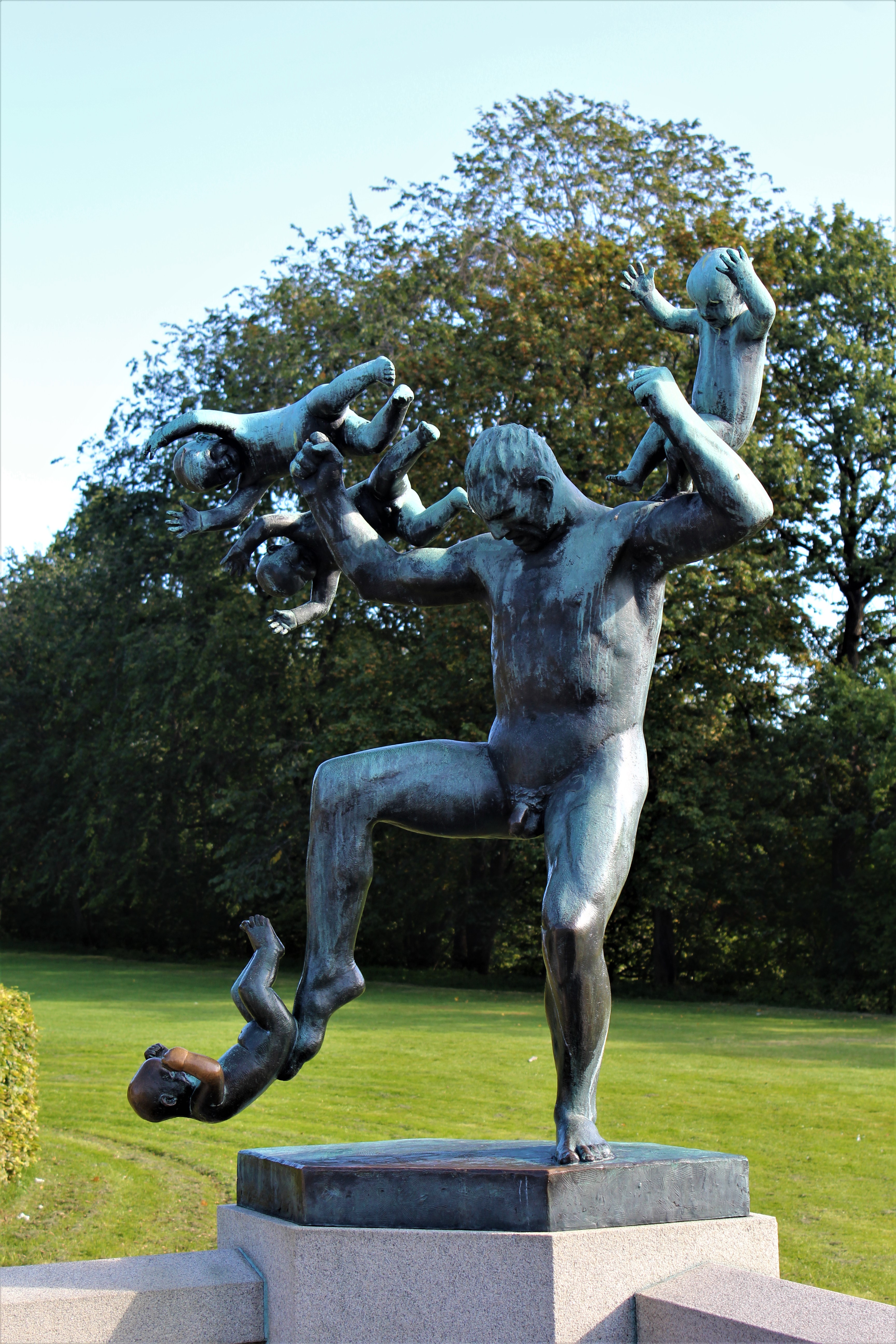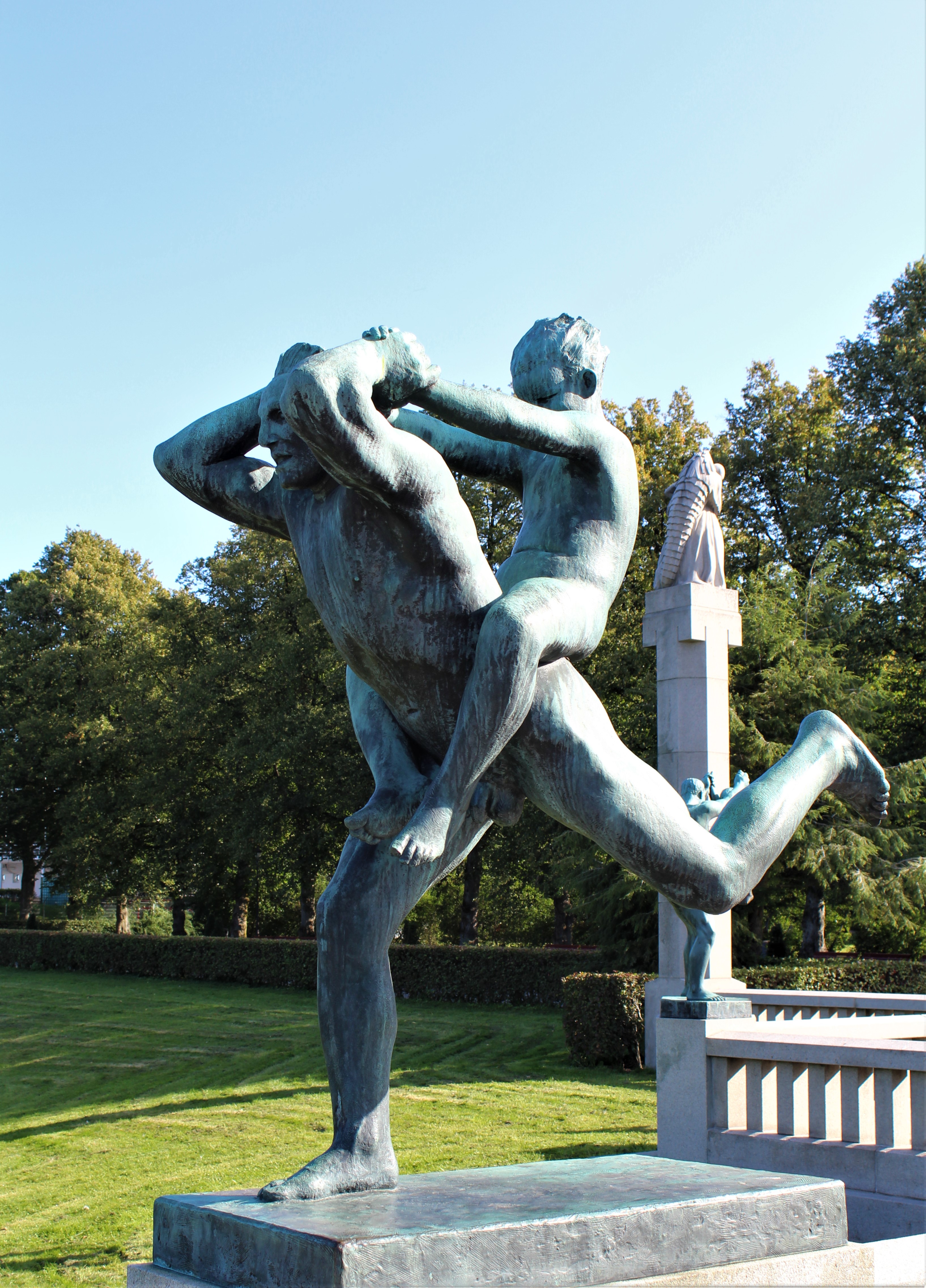 Our first day of exploring Oslo. We have a list of want-to-see’s so we’ll try to hit them all over the next 4 days. Since our apartment is close to Frogner Park which contains the Vigeland statue installation, that’s first on the list. This park is the largest park in Oslo covering some 45 hectares, ~111 acres, and has been home to Gustav Vigeland’s sculptures since the installation started in 1920. In all, there are 212 sculptures made from granite and bronze, depicting a surreal look at human life. In the center of this installation is Gustav’s masterpiece, the Monolith. As the name implies, this carving of 121 figures is made from a single piece of granite 46 feet tall!