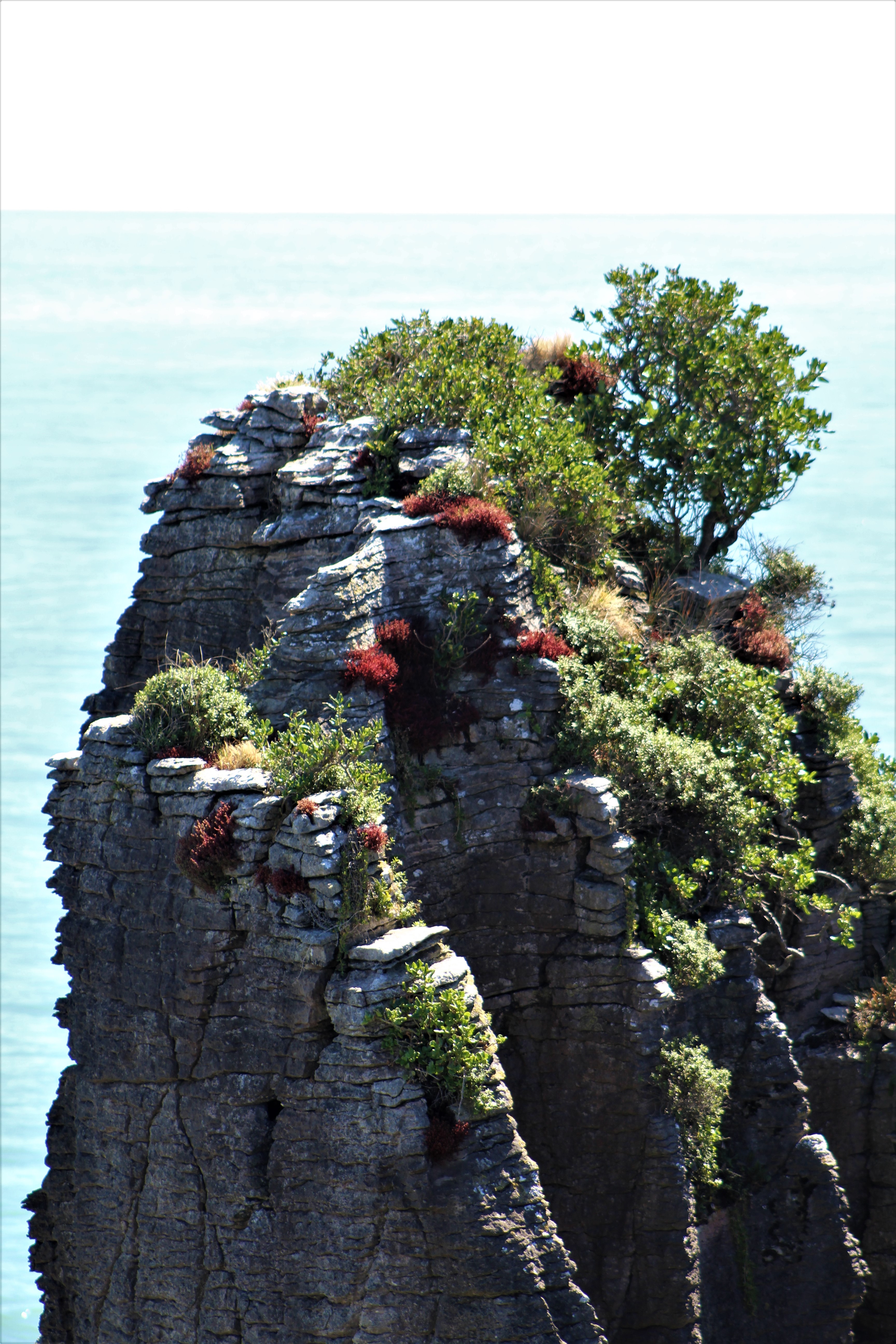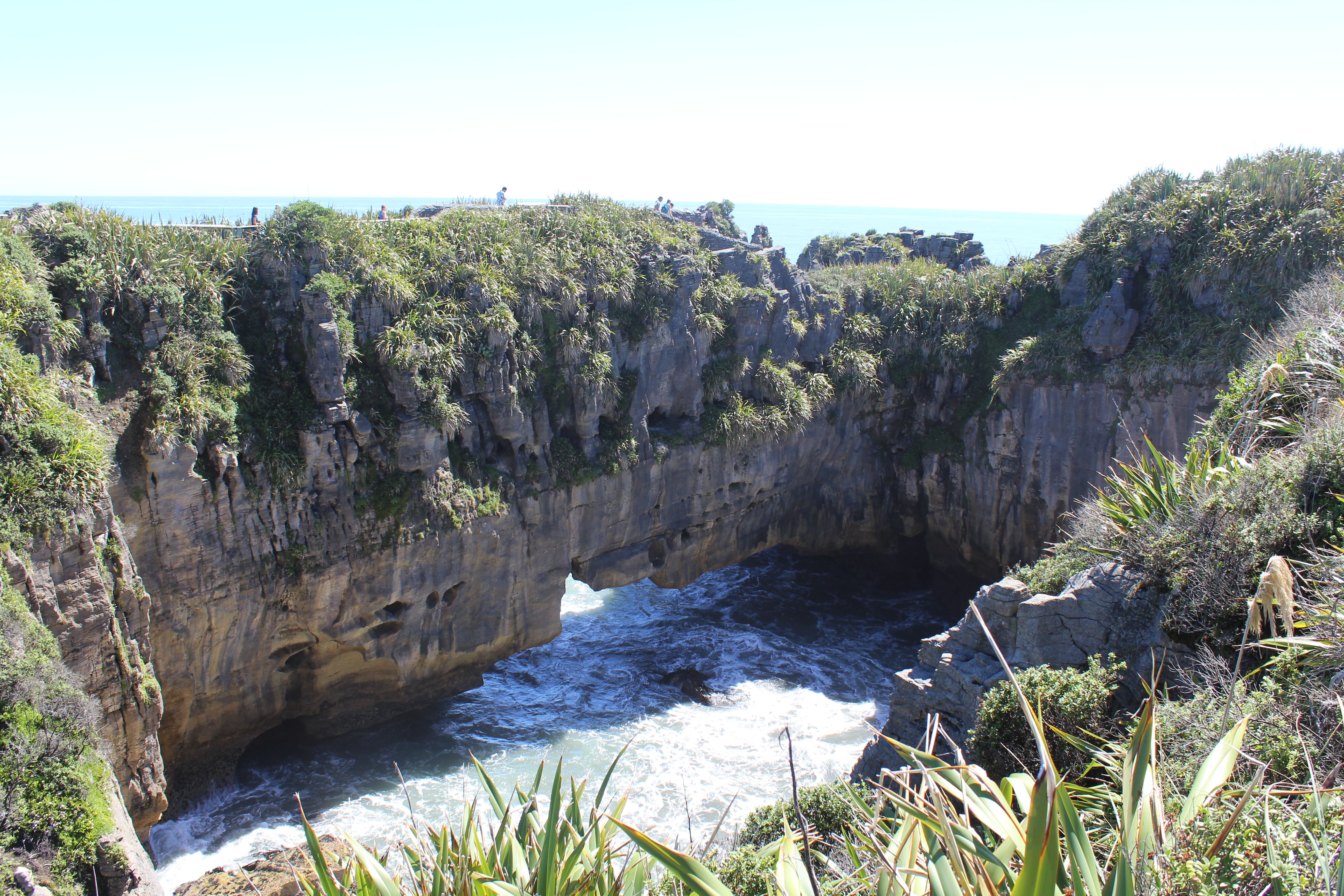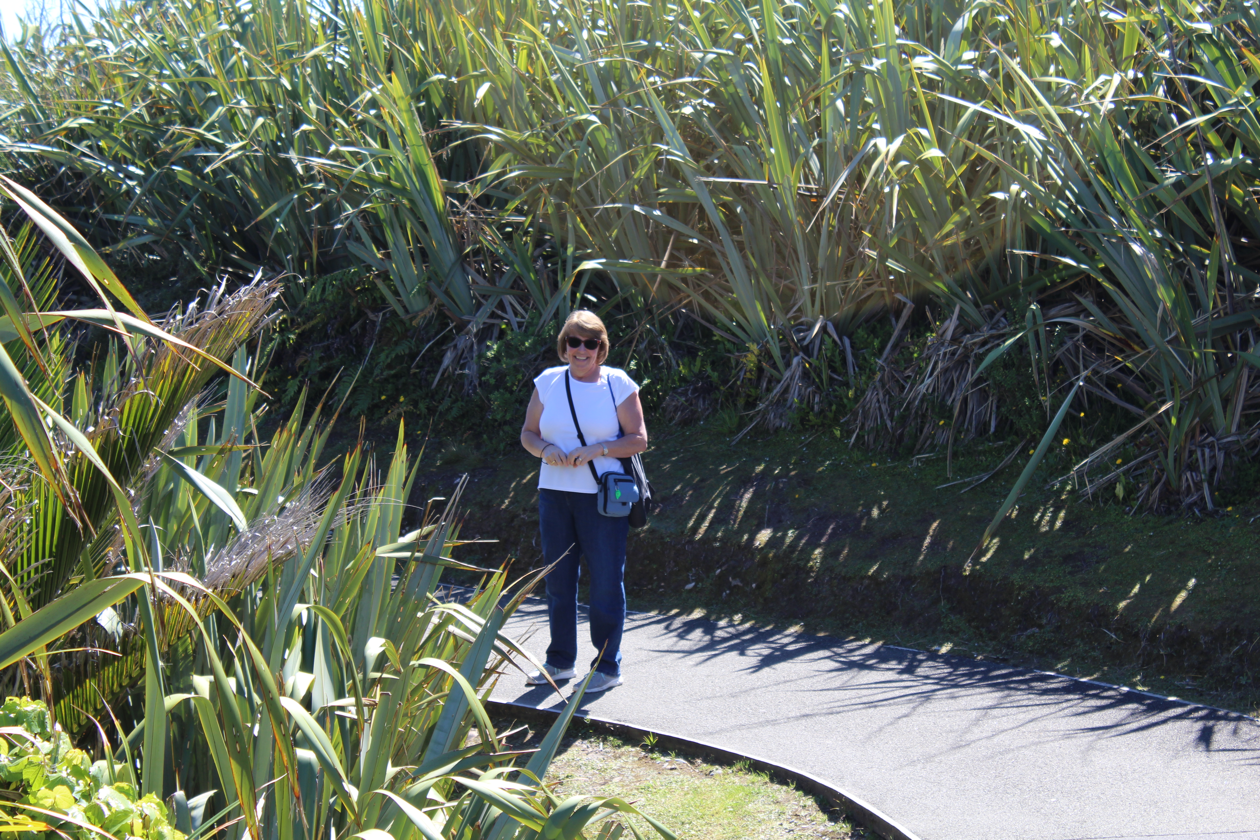 A quick detour to the little town of Punakaiki (pronounced,…ah hell, I don’t know) and Dolomite Point.  We tramped (like that?) out to see the blowholes and the Pancake rocks.  Seems the blowholes had the day off but the rocks were still there. I understand that these formations are caused by extreme pressure on the alternating hard and soft layers of decomposing sea creatures. Well, maybe.