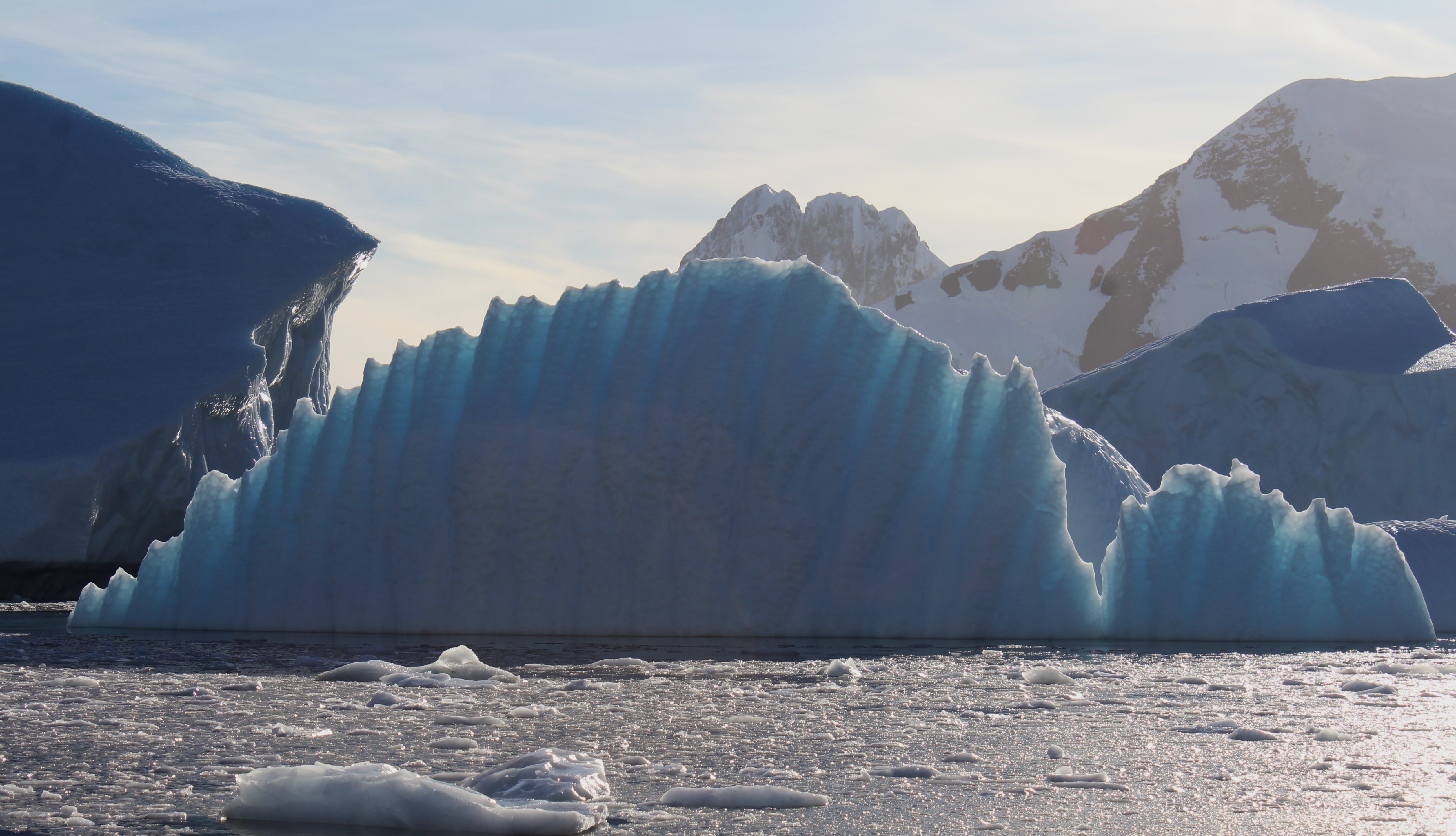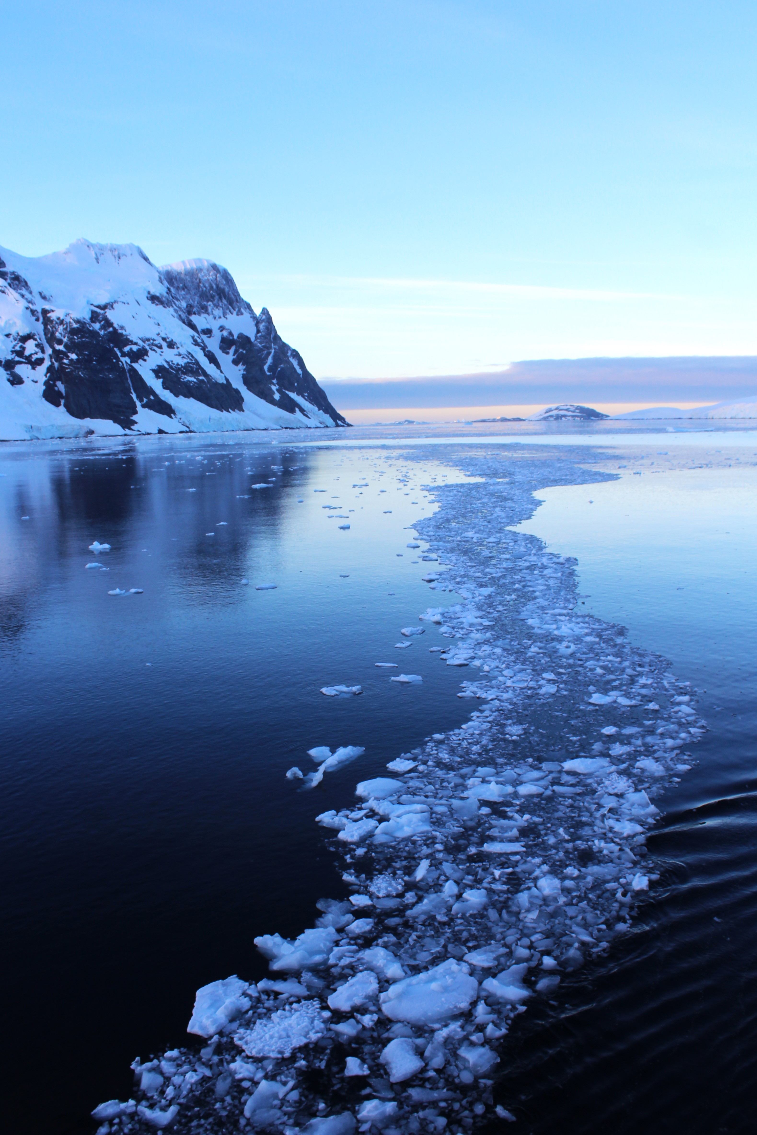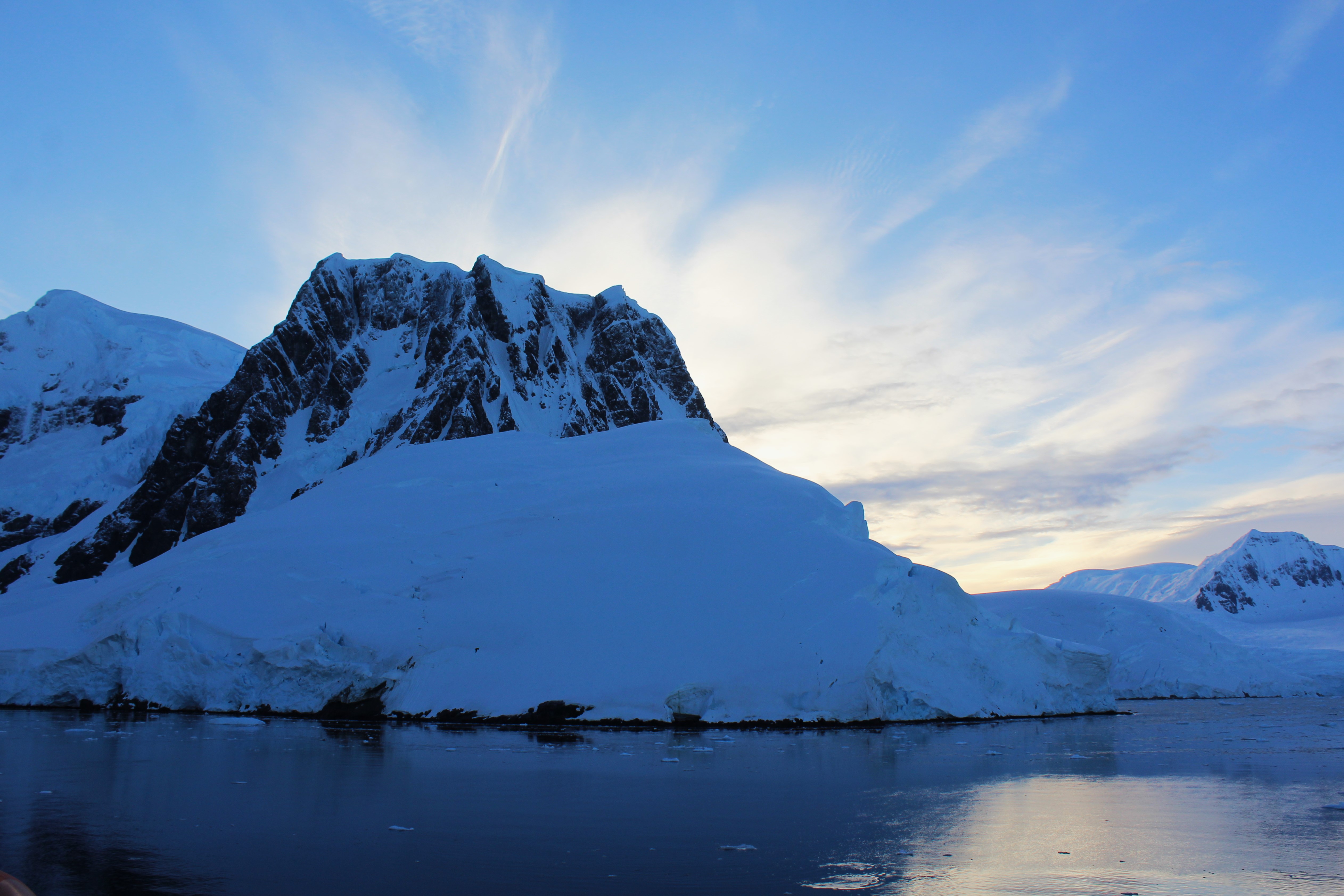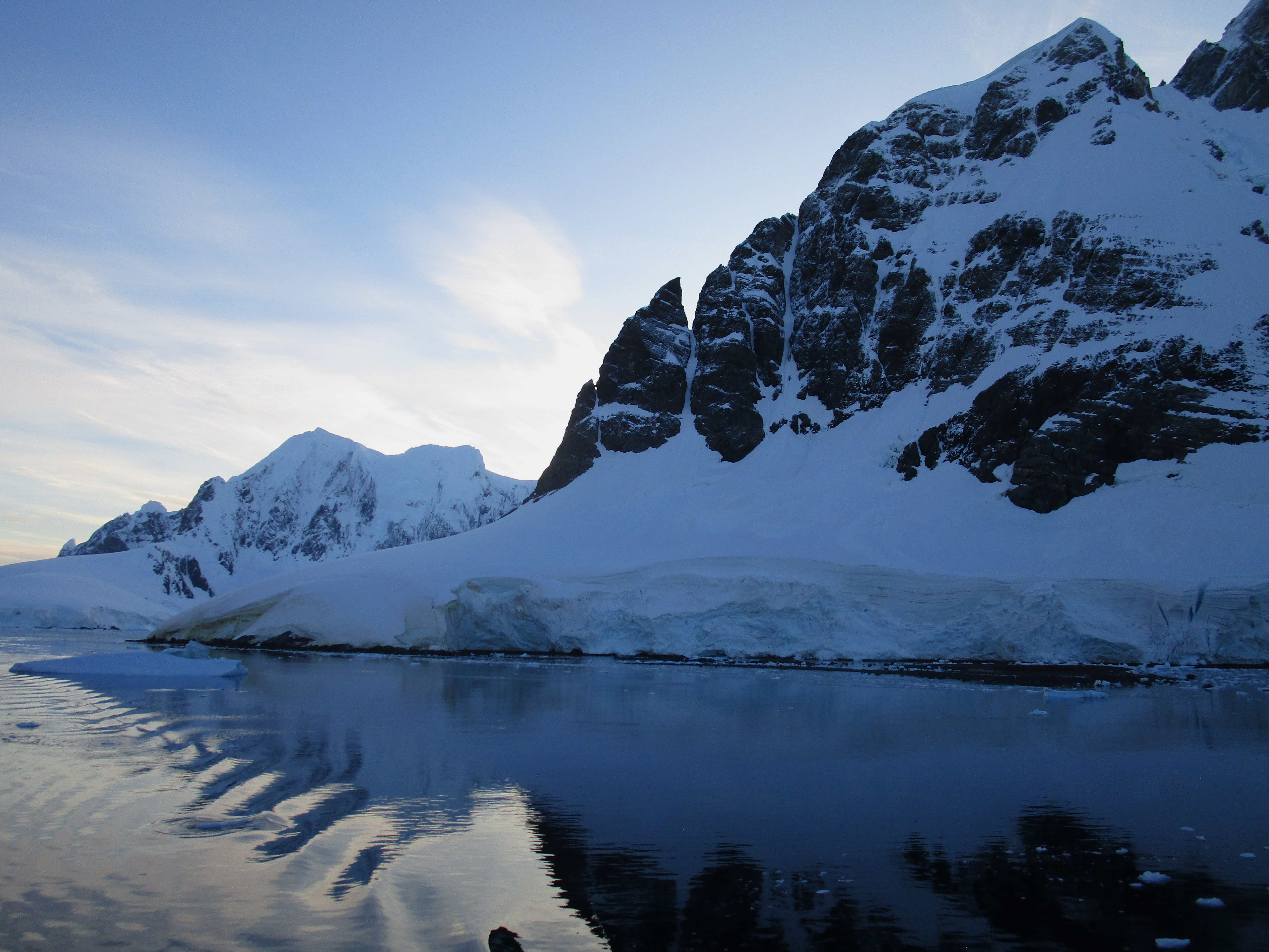Awoke this morning to an announcement that we had entered the Lemaire Channel. At first I was a little upset that the captain would wake up everyone before 7am just because we entered a channel. Then we looked out the balcony and understood why he woke everyone. The mountains surrounding this channel are amazing! Calm, clear blue water with incredibly dramatic mountains and glaciers is well worth losing a bit of sleep. Nothing like sitting on the balcony with a morning coffee watching this show! Even managed to catch a couple of seals hooking a ride on icebergs!