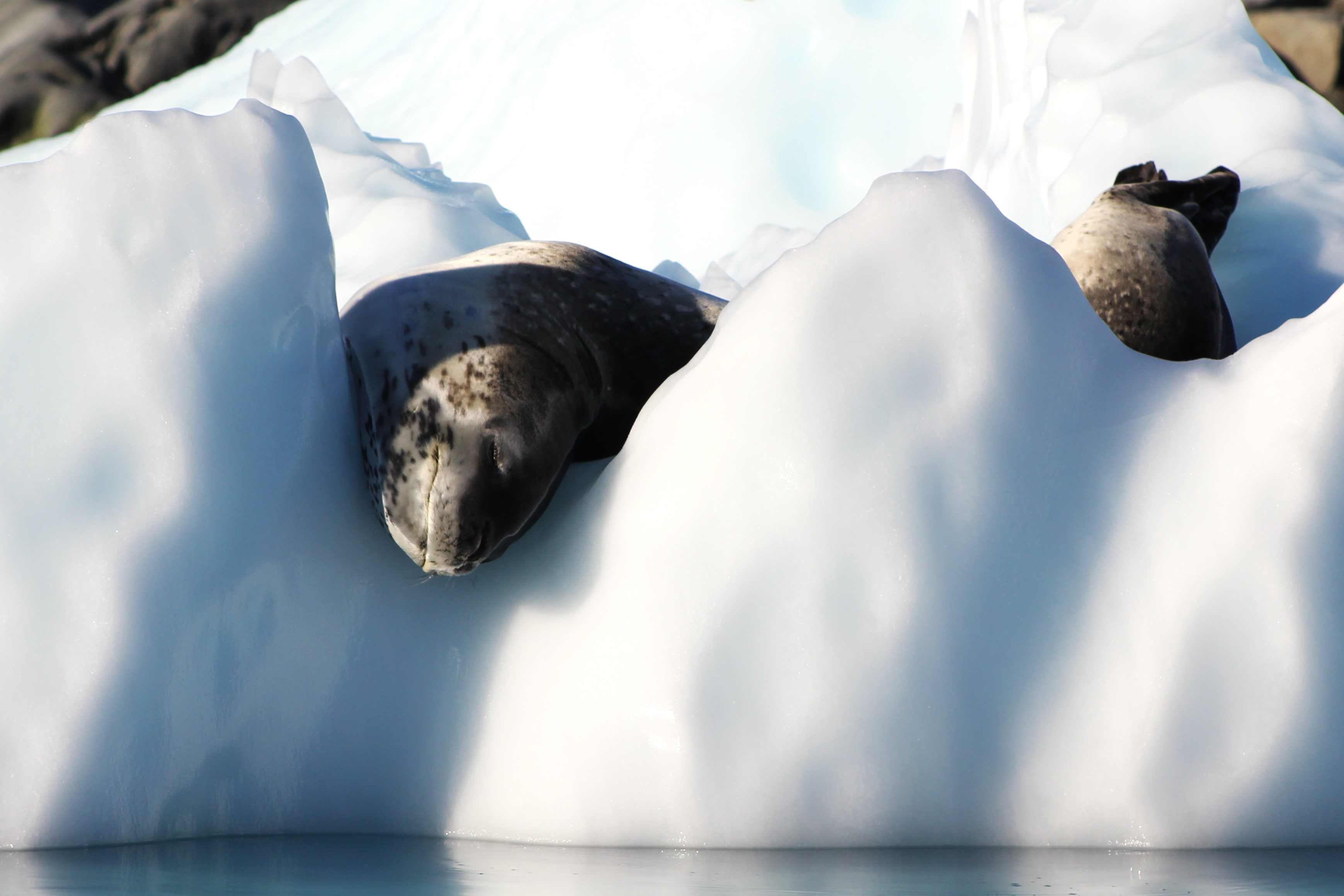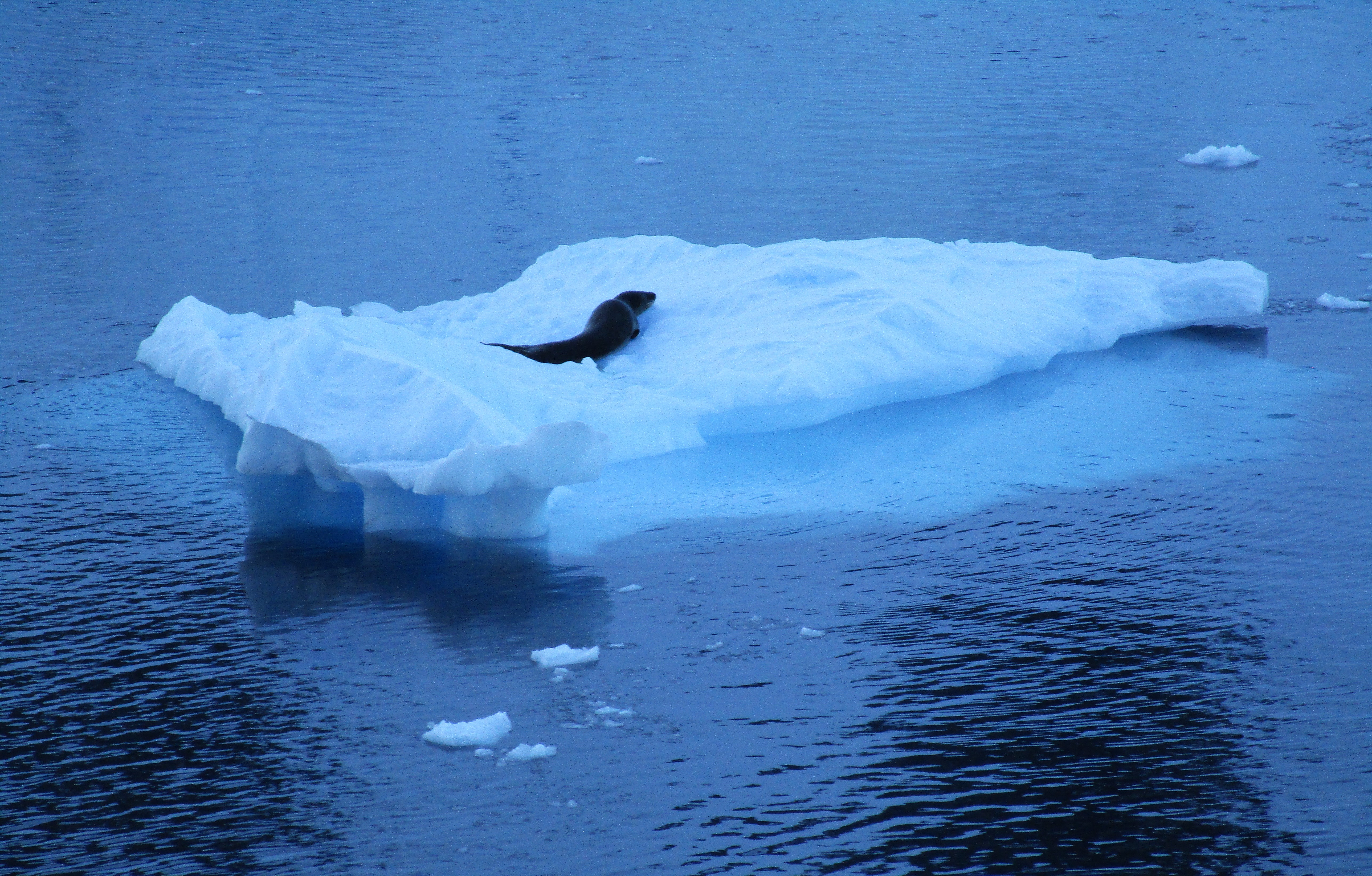 IMG_4471 IMG_4498 IMG_4507 IMG_4518v1 IMG_4521 Caught a leopard seal relaxing on an iceberg. You can’t see it in the picture but just behind the seal was a large red area where it apparently had just finished a meal.